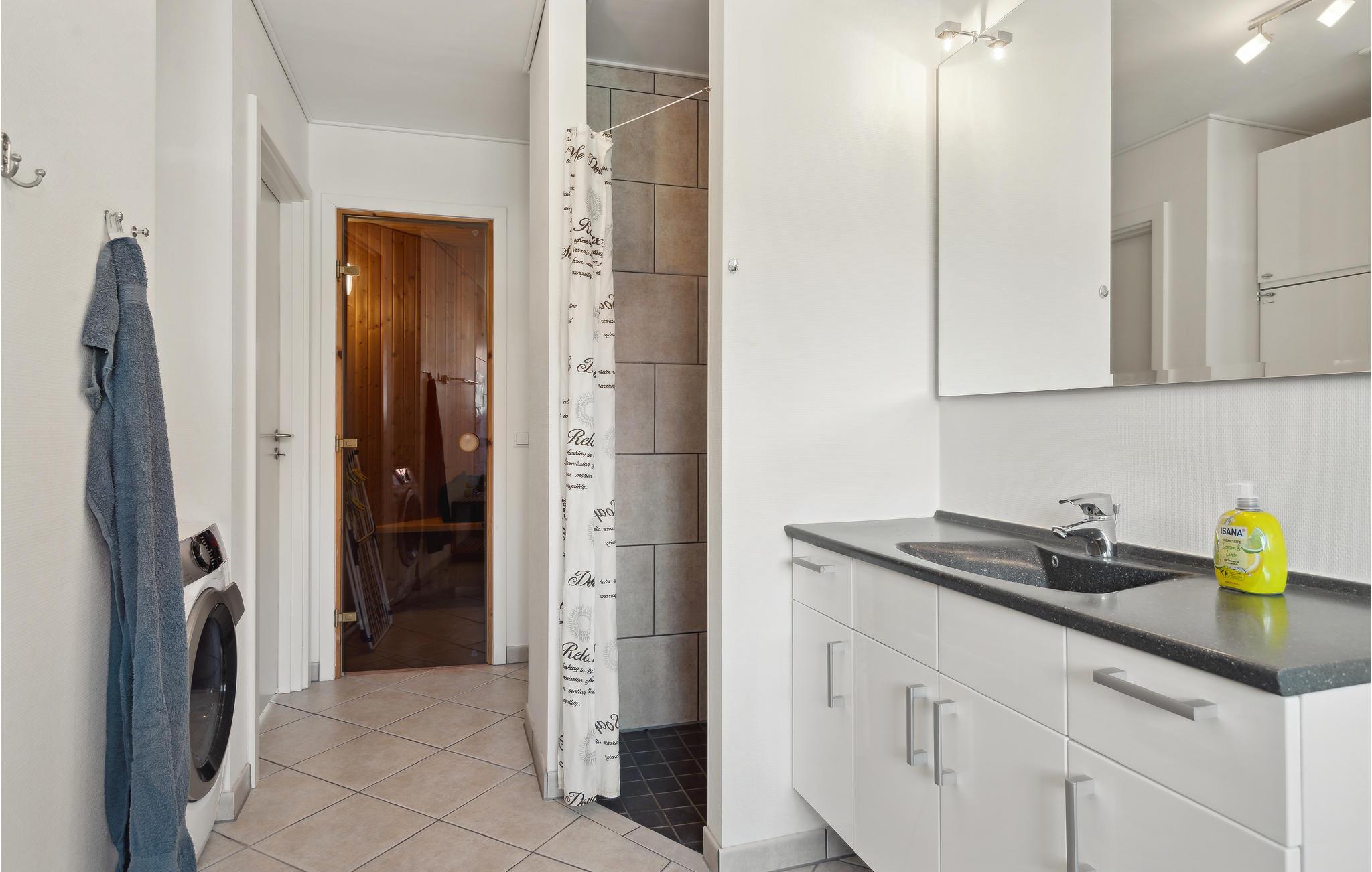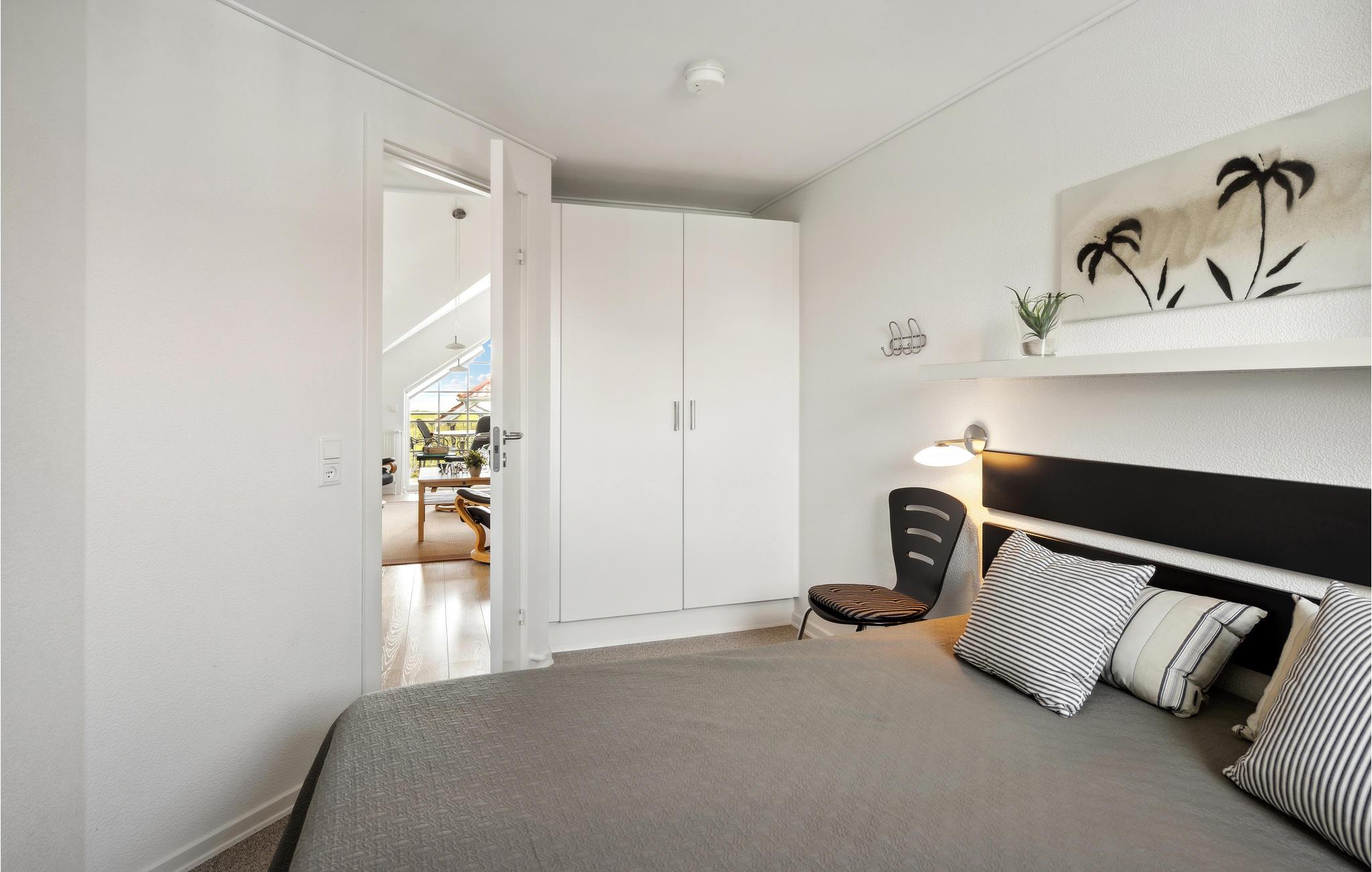 Bijzonder uitnodigende luxe vakantiewoning op de eerste verdieping, verdeeld over twee verdiepingen, aan het Bogense strand. De flat is smaakvol en charmant ingericht, met drie slaapkamers en twee badkamers, waarvan één met whirlpool en sauna. Vanaf de terrassen geniet u van een prachtig uitzicht op de zee, de omgeving, de jachthaven en het badstrand. De flat is gelegen in een spannende, nieuw ontwikkelde wijk met een maritieme sfeer. Het is niet ver naar vele activiteiten en attracties zoals een golfbaan, jachthaven, vismeer, klein aangelegd natuurlijk meer in de omgeving, minigolf, avonturenbad, speeltuin en vooral de stad Bogense.