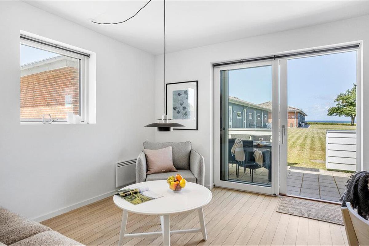 Ontspan in dit lichte vakantiehuis direct aan het strand van Bogense met moderne voorzieningen en zeezicht.