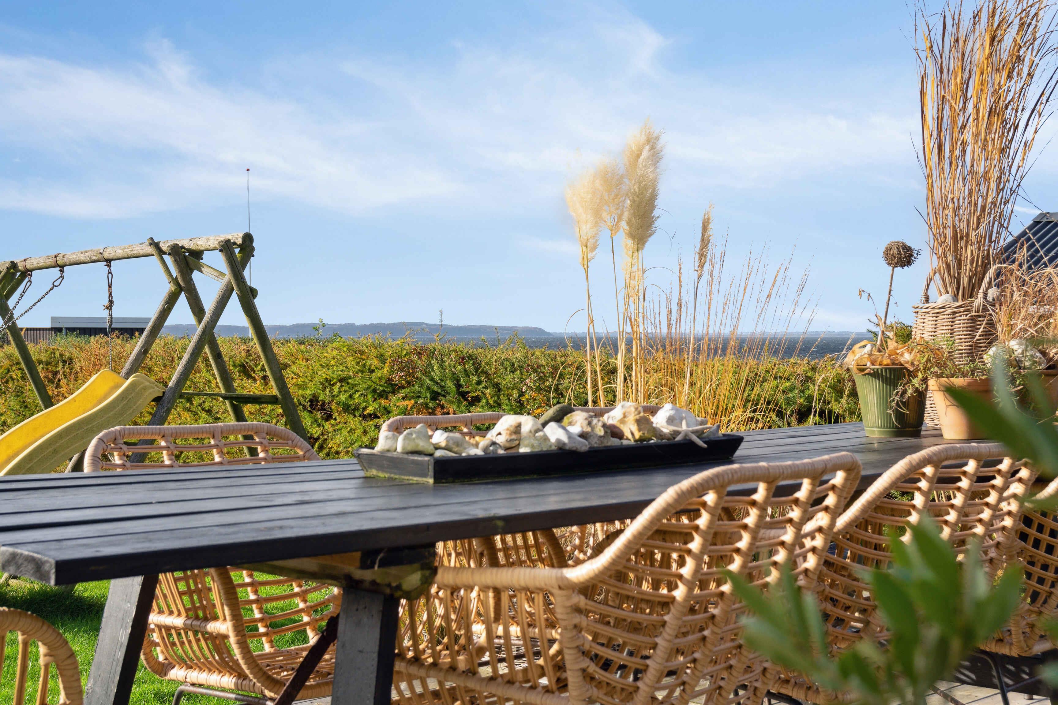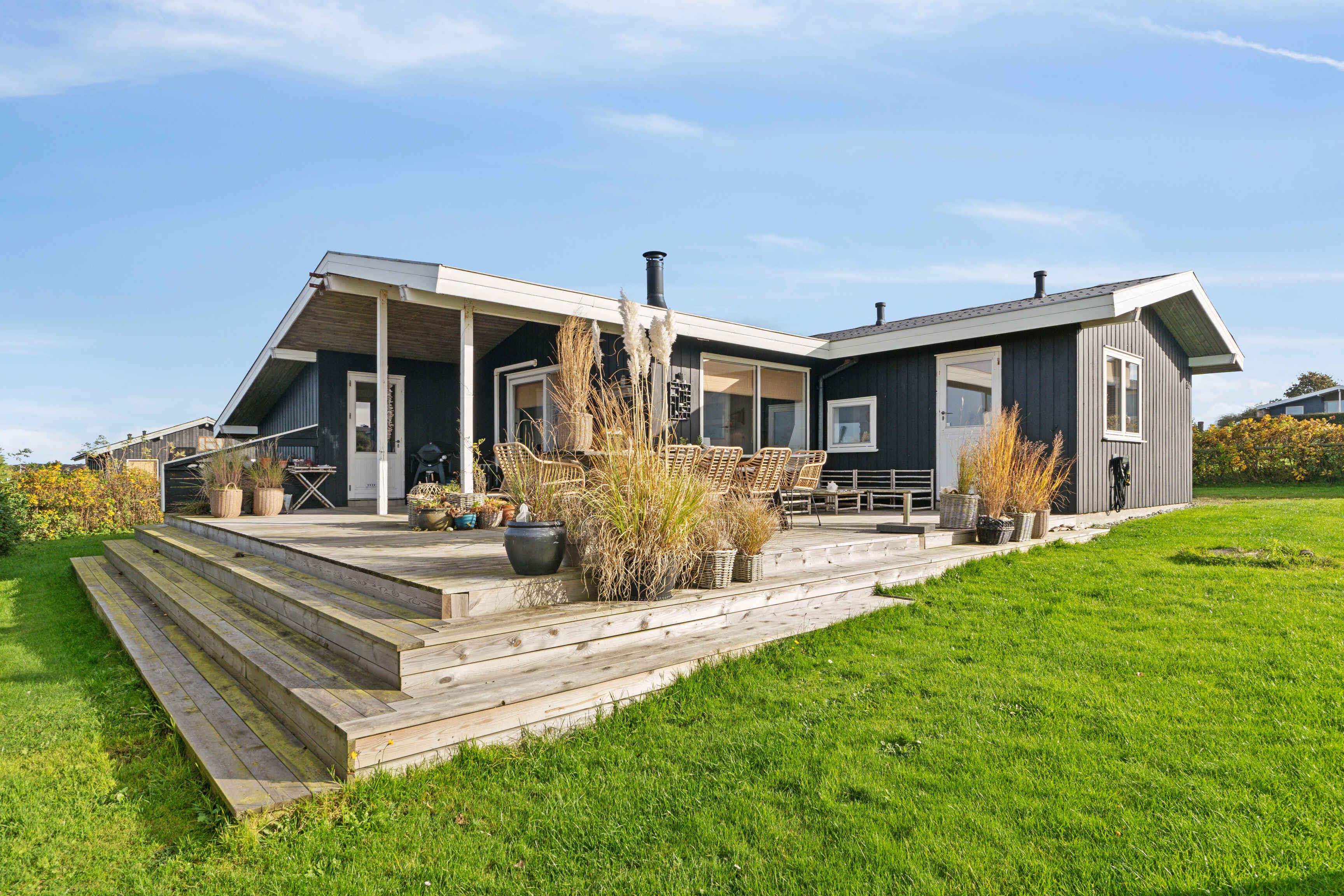Idyllisch zomerhuis in Noord-Funen met zeezicht, sauna, en moderne voorzieningen op slechts 200 meter van het strand.