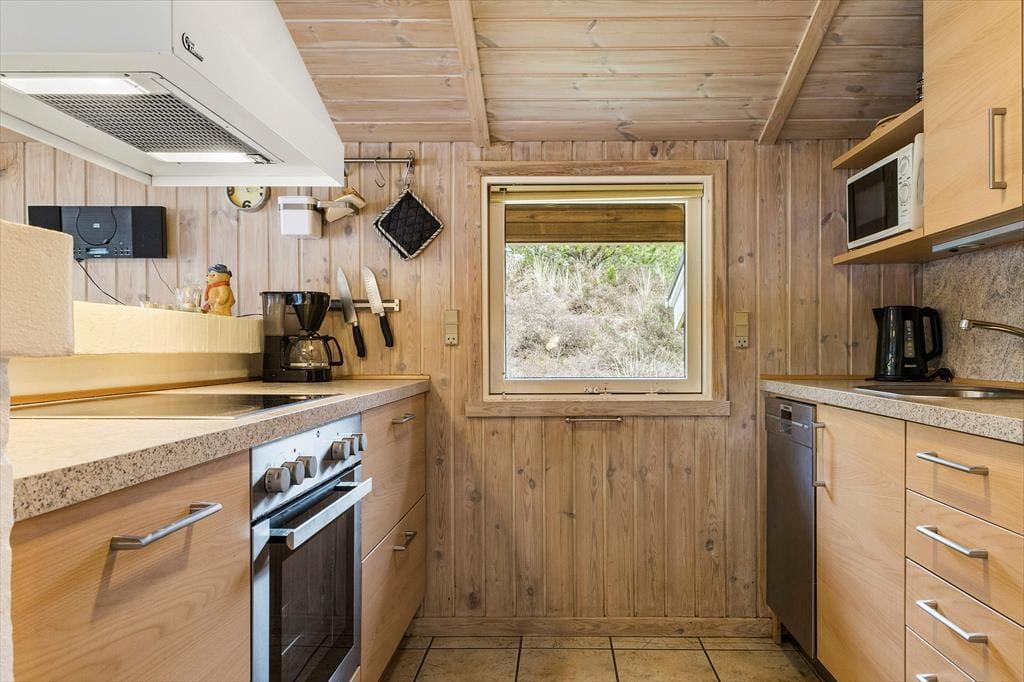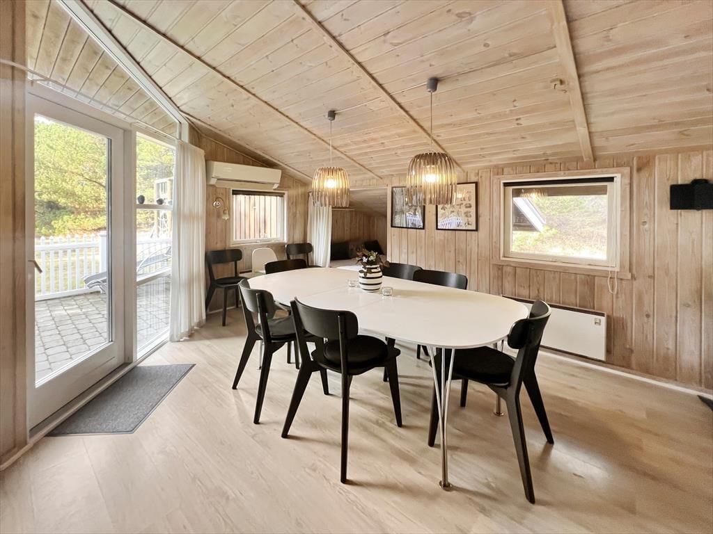 Dieses Ferienhaus liegt in einer ruhigen und ungestörten Umgebung an der Sackgasse Trinnesvej. Möchten aktiv sein, können Sie in der Heidelandschaft von Bolilmark spazieren gehen, und den Aussichtspunkt Høstbjerg besuchen oder den Weg in die Tvismark Baumplantage fortsetzen. In dem schönen Naturgebiet gibt es immer etwas Neues zu entdecken – und auch der naheliegende Strand von Lakolk zeigt sich, abhängig von der Jahreszeit, der Wetterlage und den Gezeiten ständig von einer neuen Seite. Der Strand ist sehr beliebt, denn es ist wunderbar in der Nordsee zu baden oder in dem weißen Sand Drachen steigen zu lassen. Von Bolilmark aus können Sie problemlos zu allen Sehenswürdigkeiten und Naturjuwelen Rømøs gelangen, und möchten Sie das Festland besuchen, so wohnen Sie in der Nähe des Autodammes, der durch die fantastische Wattenmeerlandschaft führt.