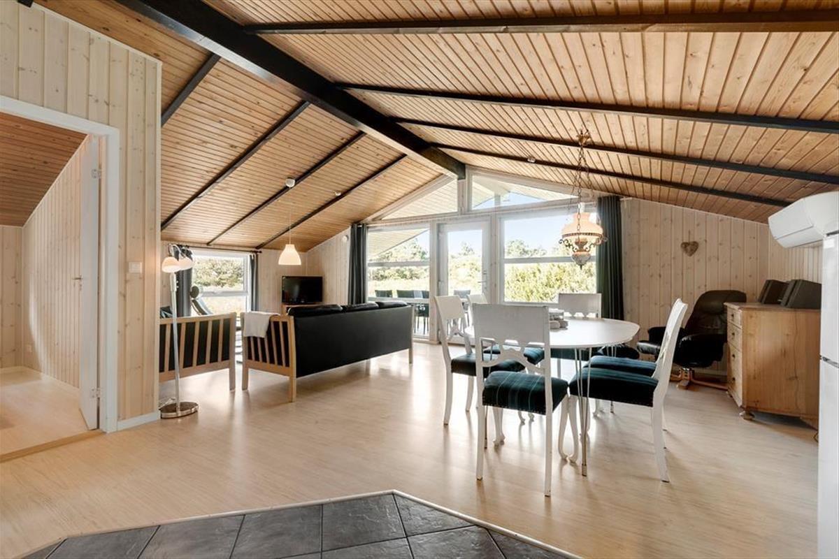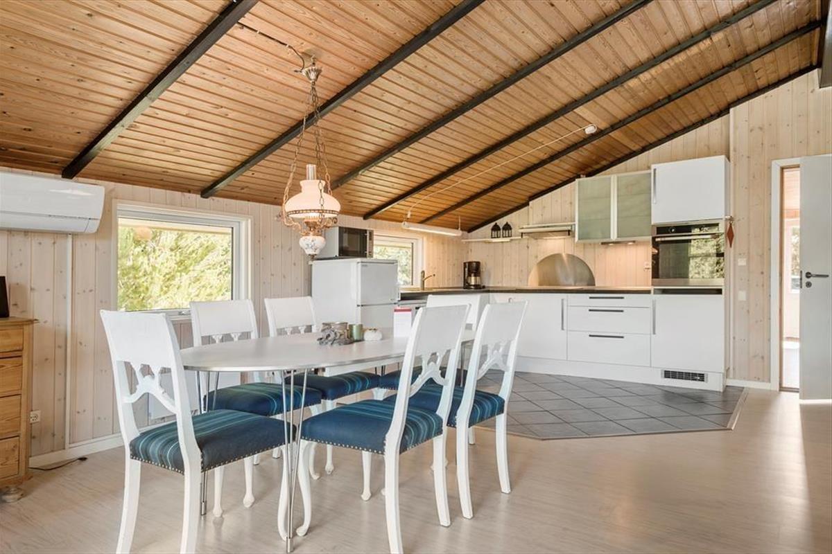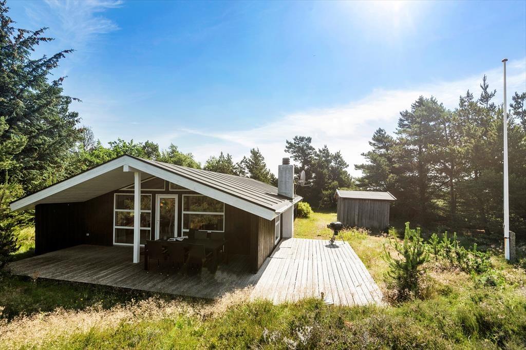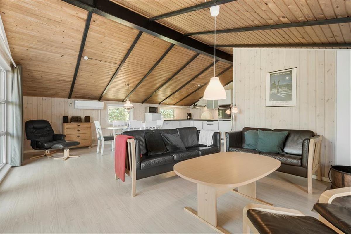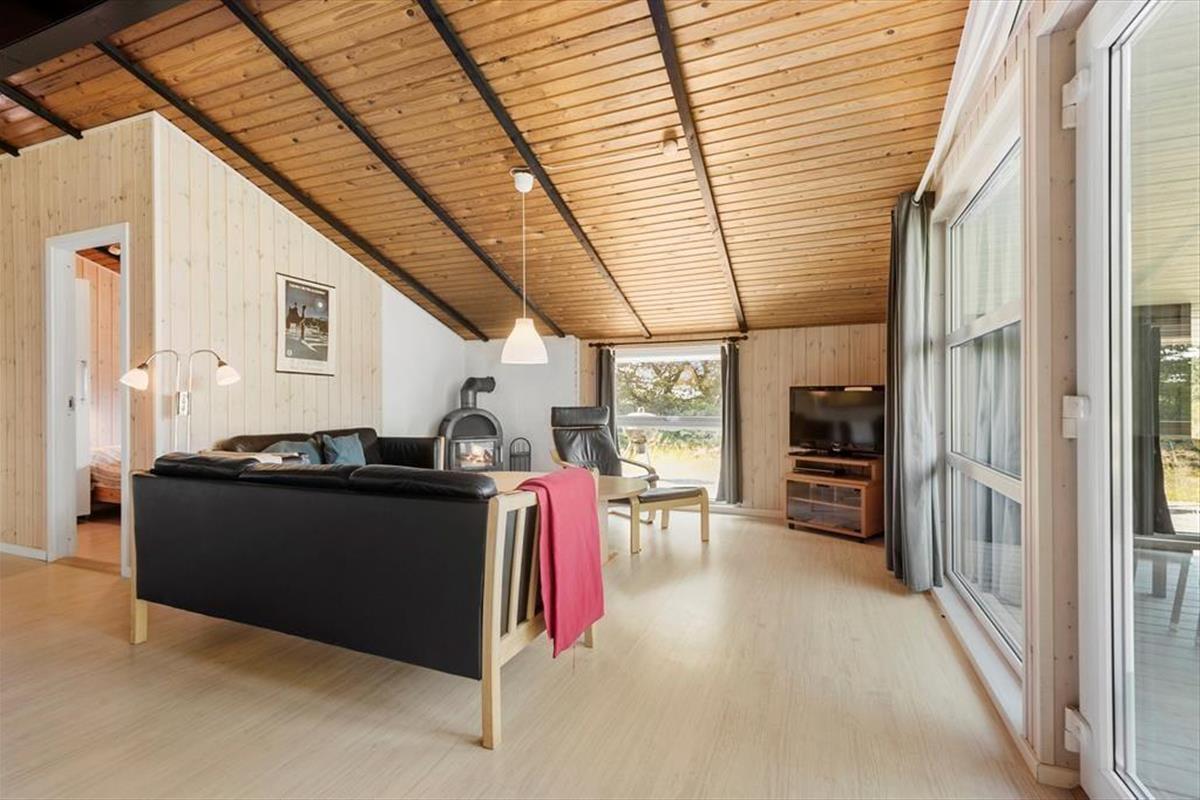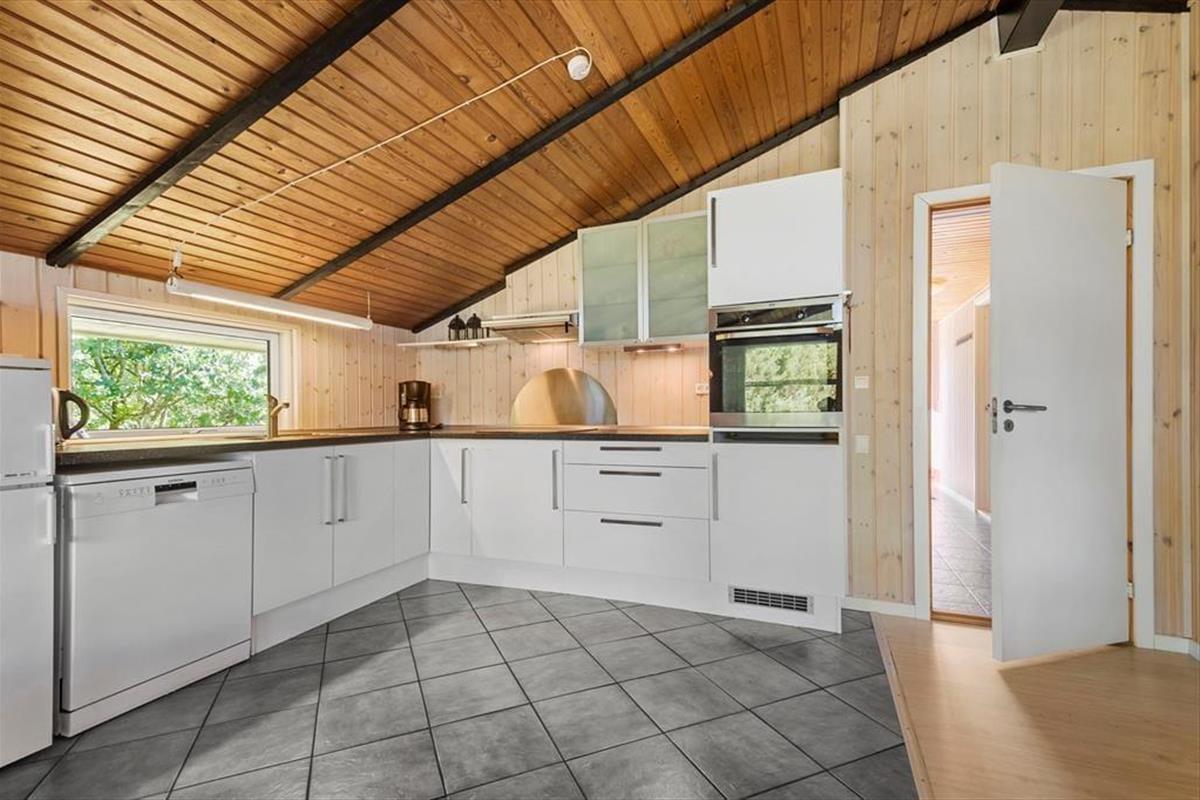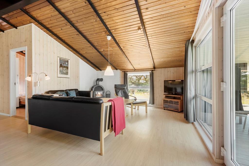 Dieses typische Ferienhaus wurde 1978 gebaut, und nach einer sorgfältigen Renovierung im Jahr 2015 präsentiert es sich nun schön und gepflegt. Unter anderem wurde die Küche modernisiert, sodass du dich auf einen guten Arbeitsplatz mit Ofen in Stehhöhe, Spülmaschine und anderen angenehmen Details freuen kannst. Die Küche ist in den Wohnraum integriert, der außerdem mit Brennofen, Wärmepumpe, Esstisch und einer weichen Sofagruppe ausgestattet ist, und von dem aus du eine schöne Aussicht über die umliegende Natur hast. Des Weiteren erwarten dich im Haus drei Schlafzimmer, ein Eingangsbereich mit Waschmaschine und Trockner sowie ein Badezimmer mit Sauna, in der du dich ganz nach Belieben entspannen kannst.