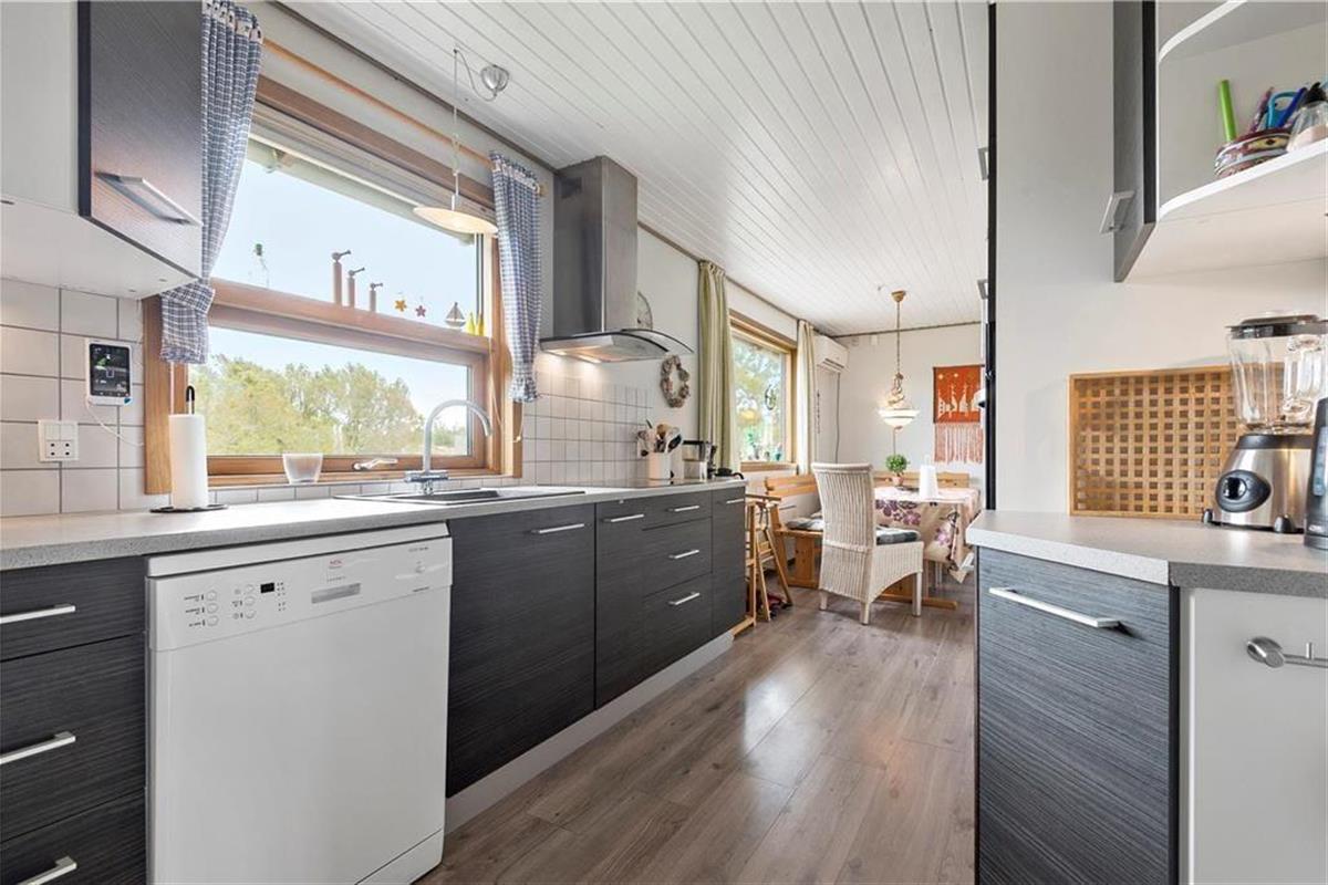 Sowohl das Ferienhaus selbst als auch der angegliederte Anbau sind mit Holzfassade und grünem Dach gebaut und passen somit gut in die umliegende naturschöne Umgebung. Den ganzen Tag hindurch kannst du die Aussicht auf dein eigenes grünes Naturgrundstück genießen, ganz gleich, ob du in der Küche den Kaffee für das Frühstück aufsetzt oder den Abend im Sofabereich verbringst. Der Wohnbereich besteht aus Stube und integrierter Küche, und gerade die Küche spiegelt eine der Modernisierungen wider, die das Ferienhaus durchlaufen hat. Auch das Badezimmer erscheint einladend und ist praktisch eingerichtet mit Dusche, Toilette, Fußbodenheizung, Waschmaschine und Trockner. In den insgesamt drei Schlafzimmern gibt es Schlafplätze für 5 Personen, wenn du dich nach einem ereignisreichen Tag zur Ruhe begeben möchtest.