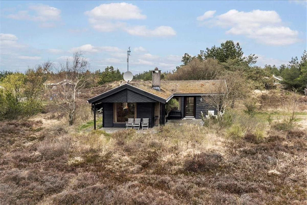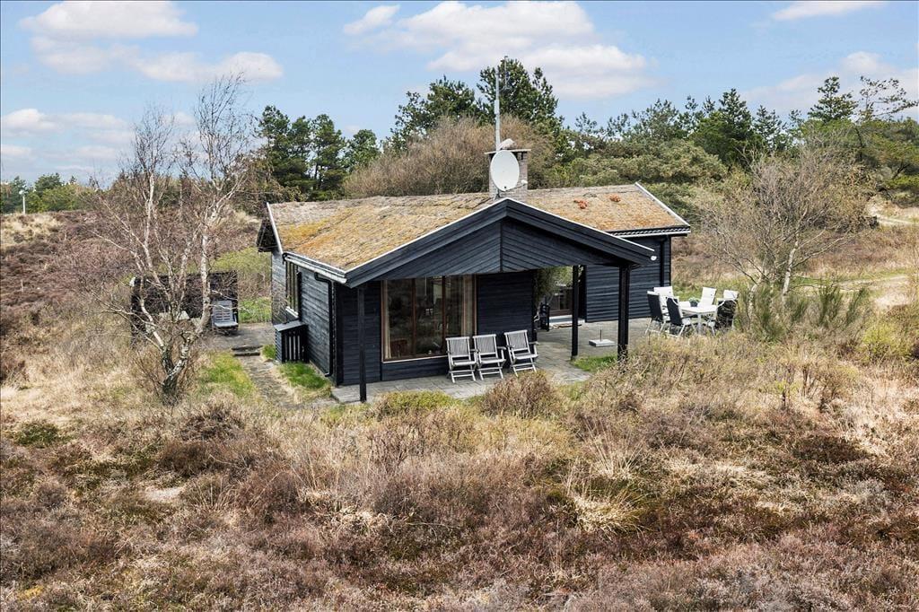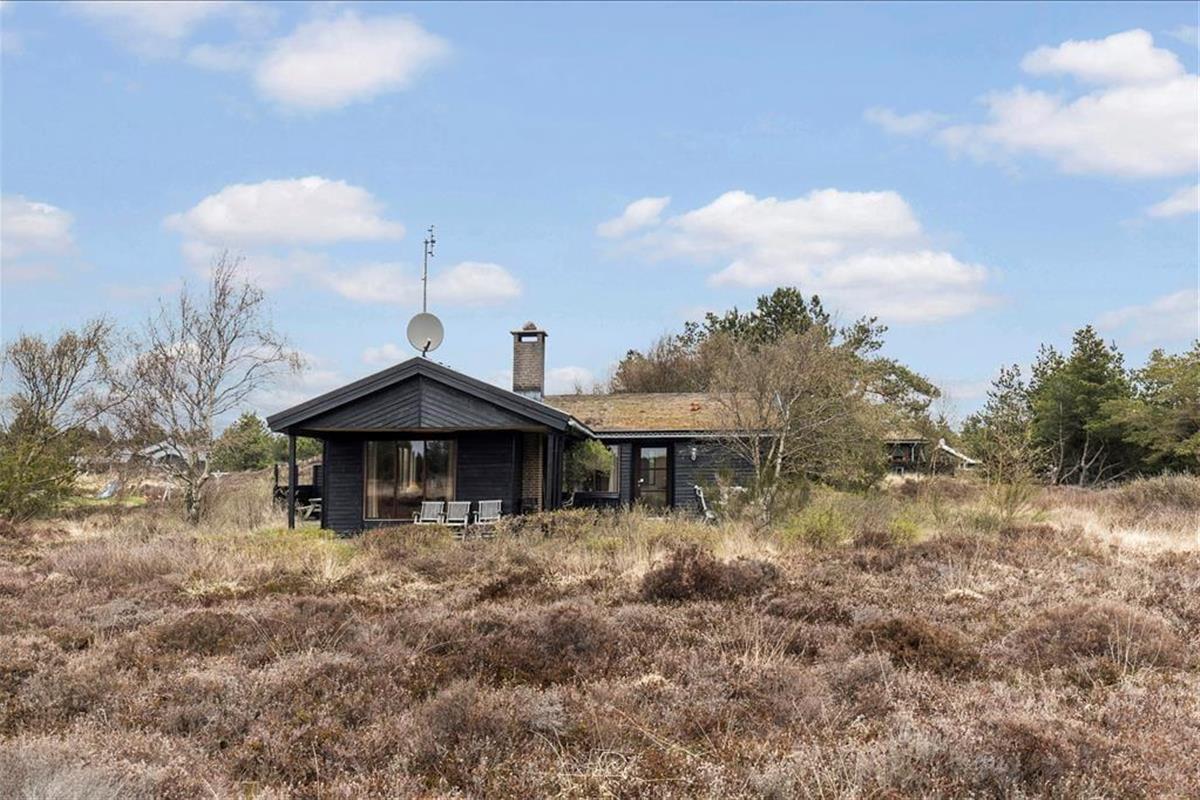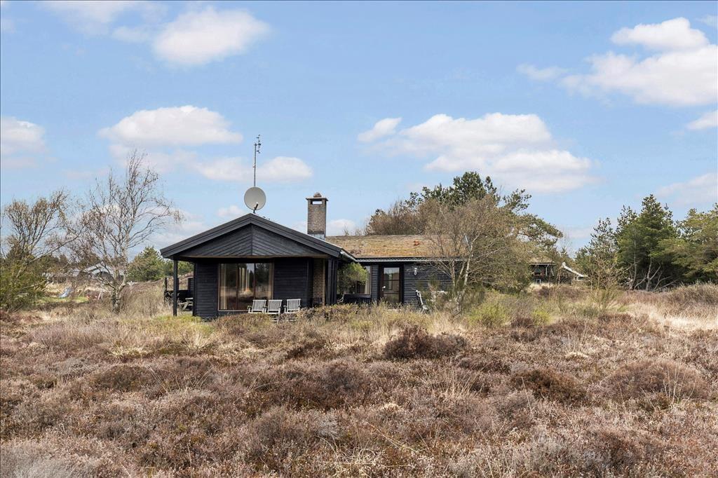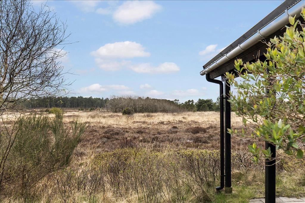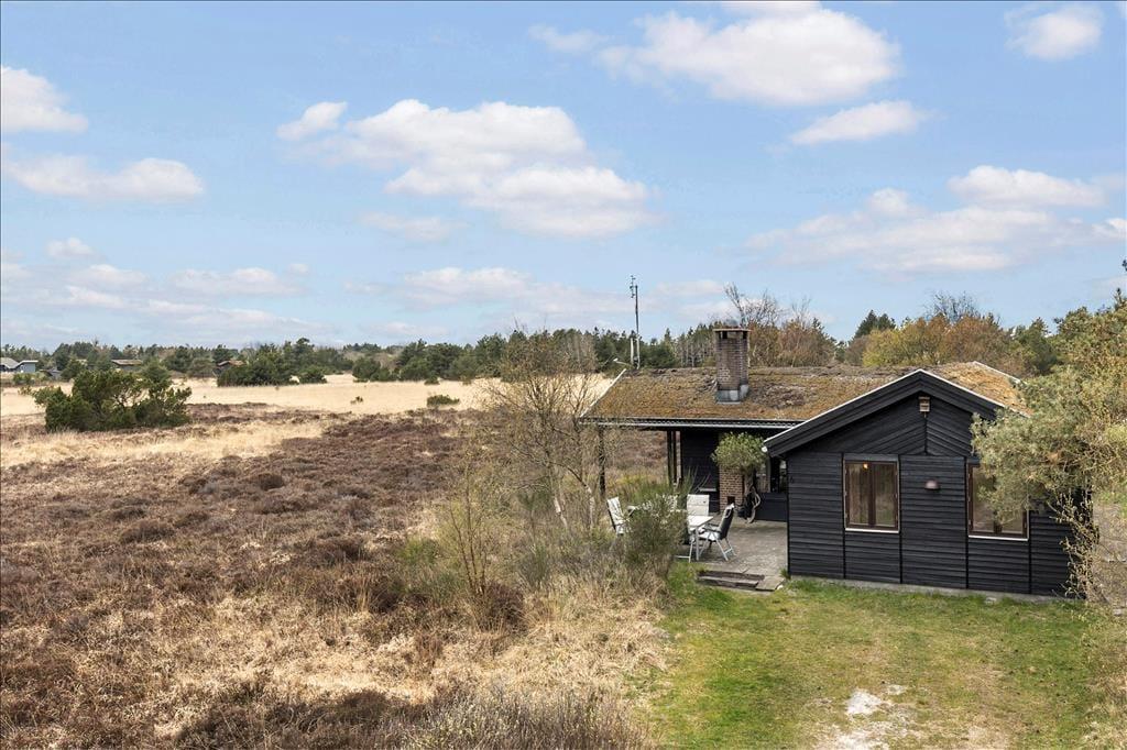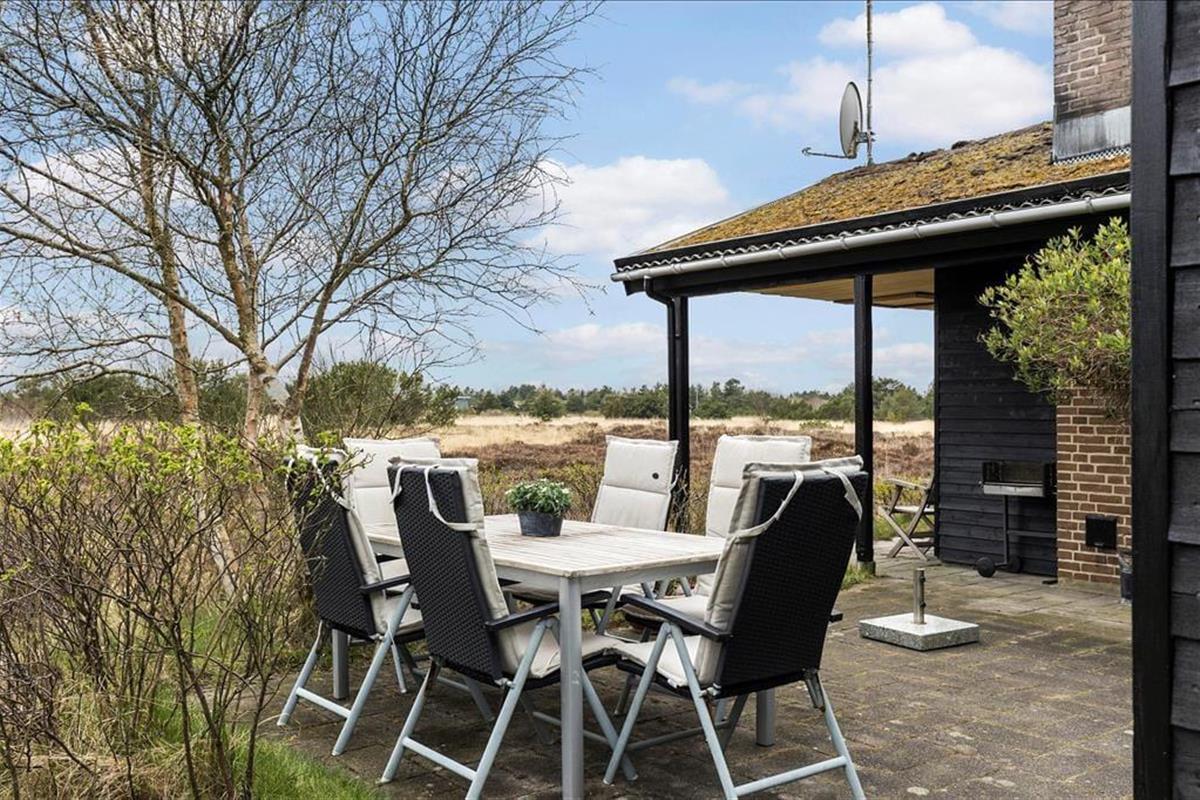 Wenn die Sonne scheint, empfiehlt es sich, den größten Teil des Urlaubstages im Freien zu verbringen, wo du mehrere Terrassen zur Auswahl hast. Ein Terrassenbereich ist überdeckt, und es stehen dir sowohl Gartenmöbel als auch Liegestühle, Grill und ein Sonnenschirm zur Verfügung. Das Beste ist jedoch, dass die Stunden der Erholung in einer unheimlich idyllischen Landschaft stattfinden: Ein Teppich aus Heidekraut und anderen wilden Pflanzen breitet sich über der flachen Landschaft aus, und in der Ferne kannst du die Kiefern der Tvismark Baumplantage erahnen.