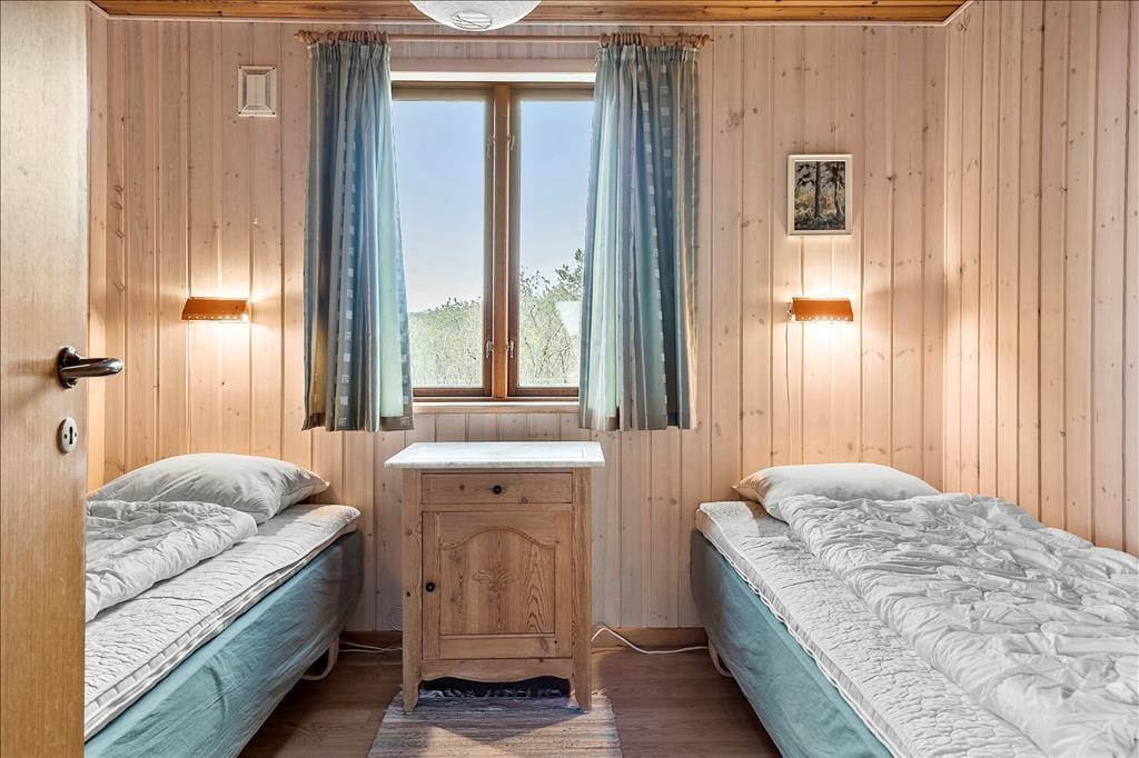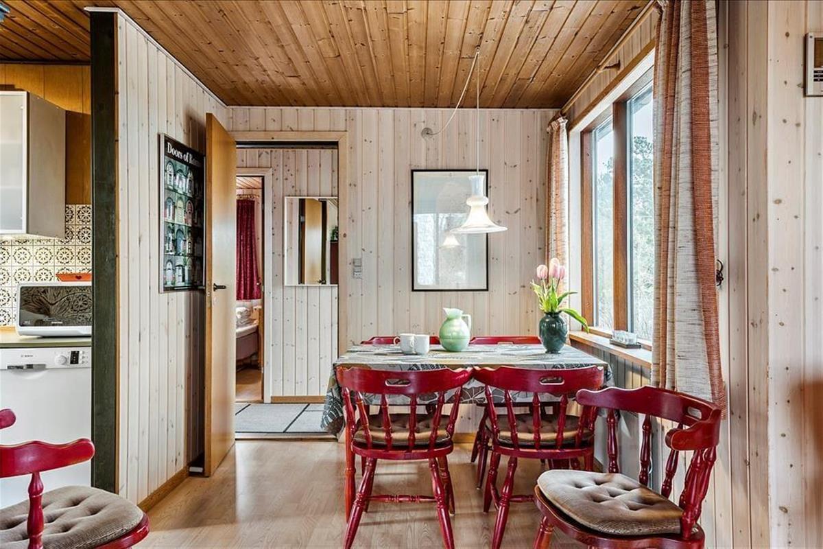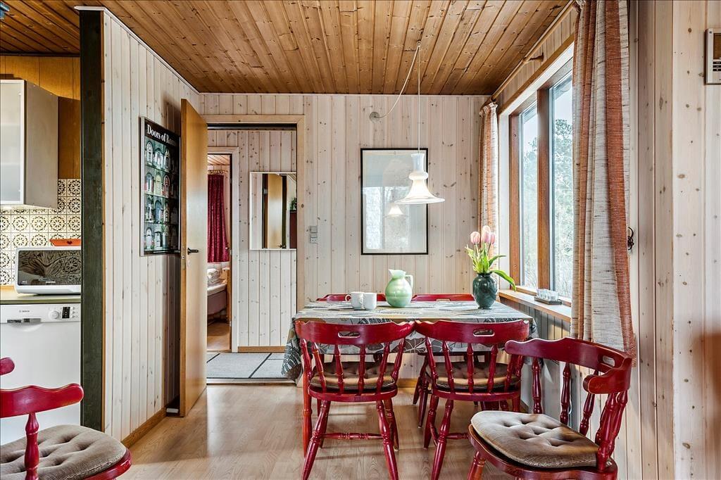 Hier draußen in der wunderschönen Natur kannst du gleich von Tagesbeginn an die Aussicht genießen, sobald du die Gardinen aufziehst. Vielleicht hast du Glück und siehst ein Reh oder Hasen, die draußen vorbei hüpfen, während du gemütlich beim Frühstück sitzt und über das Programm des Tages redest. Möchtest du am liebsten drinnen bleiben, kannst du dich mit einem guten Buch vor den Brennofen setzen oder Monopoly oder andere Gesellschaftsspiele am Esstisch spielen. Das Mittagessen kann in der angrenzenden Küche zubereitet werden, und wenn du nach der Mahlzeit müde wirst, kannst du in einem der drei Schlafzimmer einen Mittagsschlaf machen. Das Badezimmer ist 2020 renoviert worden.