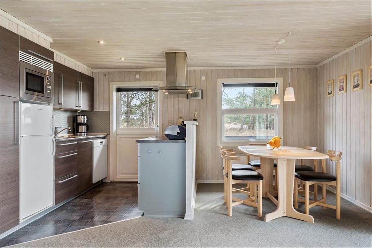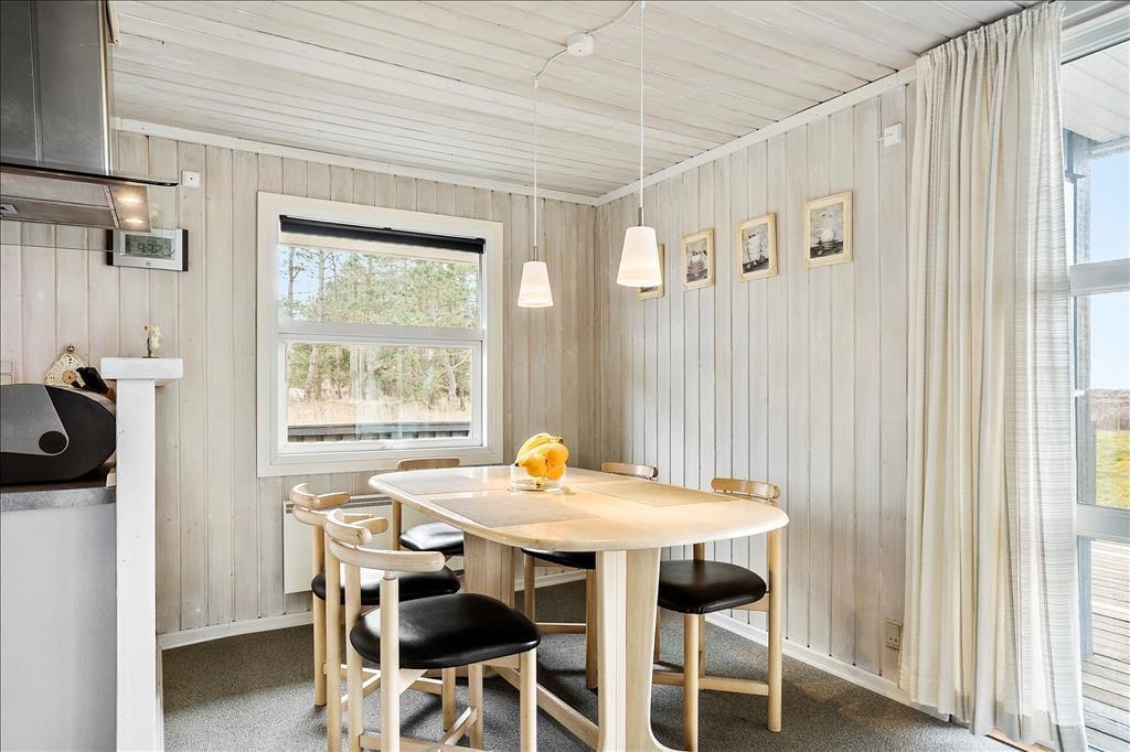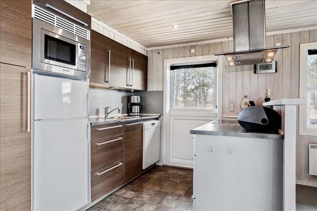Es ist verständlich, warum dieses Ferienhaus so beliebt ist, denn du musst dich nicht lange im Inneren aufhalten, bevor du in richtige Urlaubsstimmung kommst. Alle Räume sind hell und freundlich, und besonders im Wohnbereich sorgen die großen Fensterfronten dafür, dass du die Natur genießen kannst, während du es dir vor dem Brennofen gemütlich machst. Falls du dich von dem Ausblick losreißen kannst, steht ein Flachbildschirmfernsehgerät mit Chromecast zur Verfügung, nur ein Beispiel für die modernen Details, die du im Haus erwarten kannst. Im Haus findest du als etwas Außergewöhnliches auch einen Wertschrank. Die offene Küche ist ebenfalls bemerkenswert, denn sie stellt einen optimalen Arbeitsplatz dar, wenn die Mahlzeiten zubereitet werden sollen. Auch die drei Schlafräume mit insgesamt fünf Schlafplätzen erscheinen hell und gepflegt. Das Badezimmer ist einfach und funktionell eingerichtet, unter anderem mit Fußbodenheizung, Waschmaschine und Trockner.
