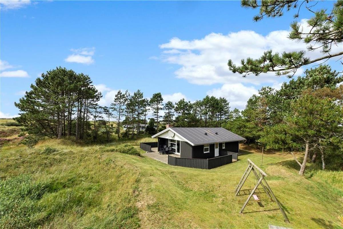 Dieses reizende Holzhaus liegt wunderschön, direkt angrenzend an die unter Naturschutz stehende Heidelandschaft, die das Ferienhausgebiet in Bolilmark umgibt. Vom Haus und von der Terrasse – ja, sogar vom Schaukelgerüst der Kinder aus – kannst du die Aussicht über die offene Weite genießen, sodass sowohl Spiel als auch Entspannung vor den schönsten Kulissen stattfinden.