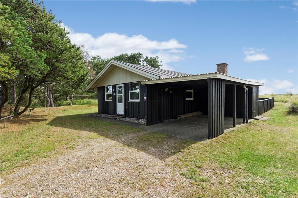 Das große Grundstück des Ferienhauses grenzt direkt an die weitläufige Heidelandschaft, und genau deswegen ist die Aussicht so einzigartig. Zu den anderen Seiten hin schirmen hohe Kiefern und die übrige Randbepflanzung das Grundstück ab, sodass du ungestört in der Sonne liegen, grillen und Ball spielen kannst. Die Terrasse, die sich um das Haus herum schmiegt, liegt ideal im Verhältnis zur Sonne und zur Aussicht, und darüber hinaus gibt es eine Schaukel und einen Sandkasten für die Kinder sowie ein Carport für dein Auto.