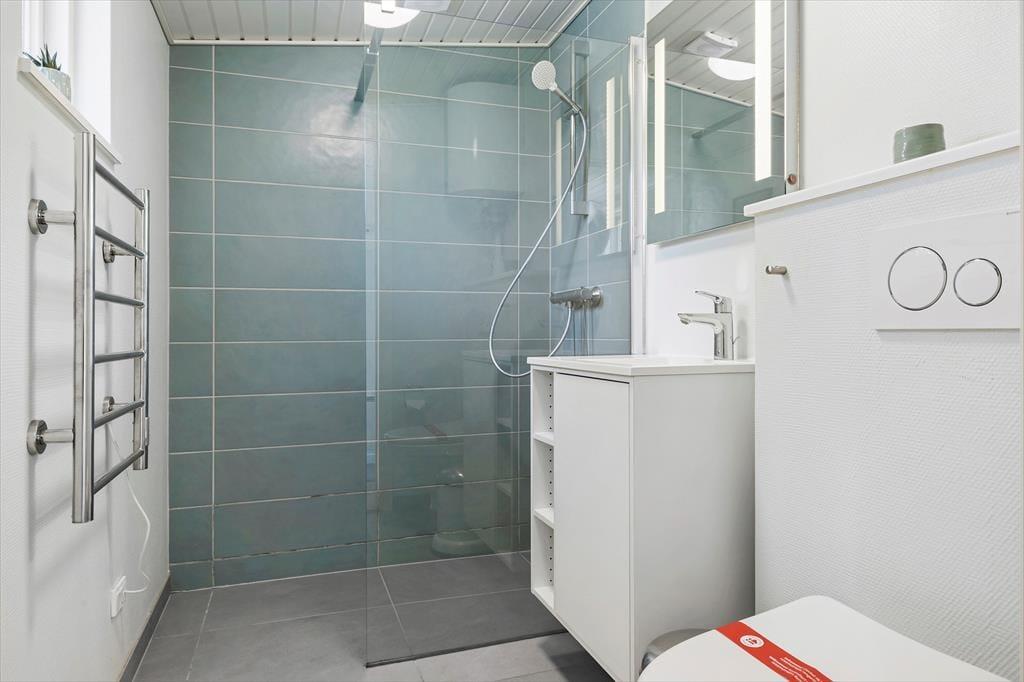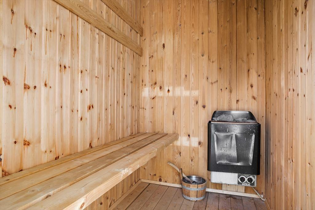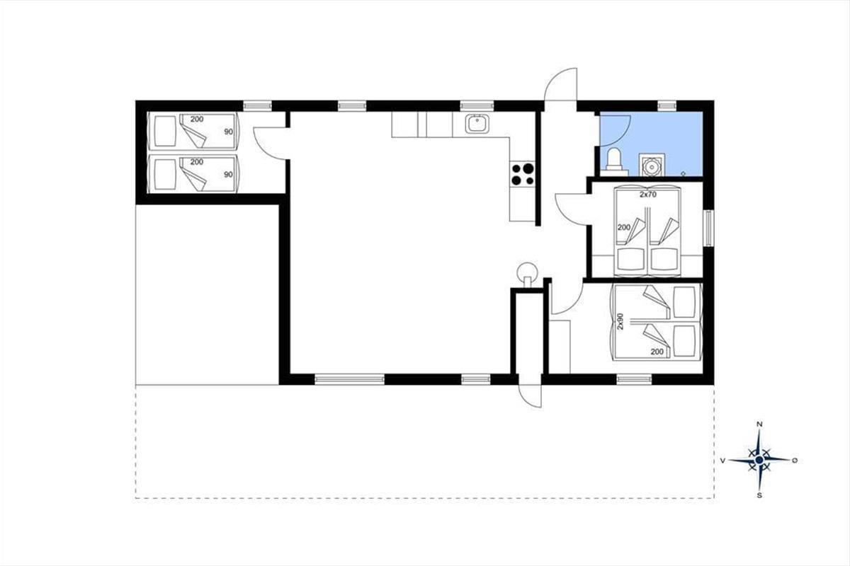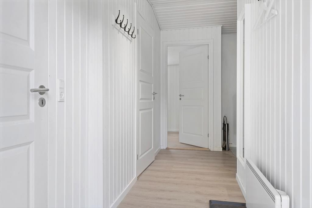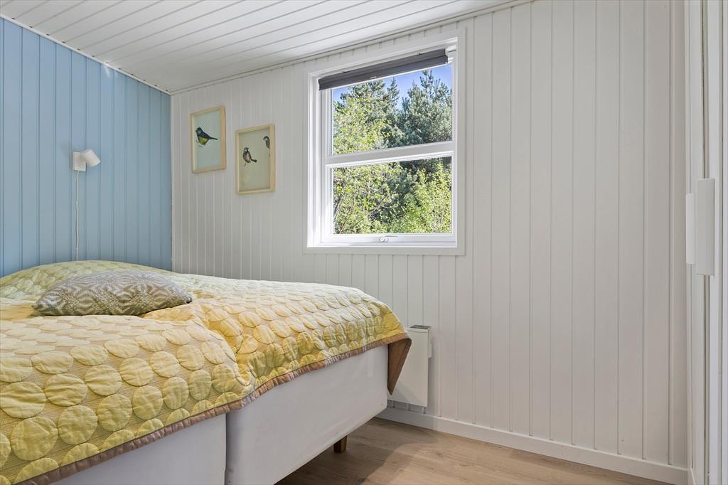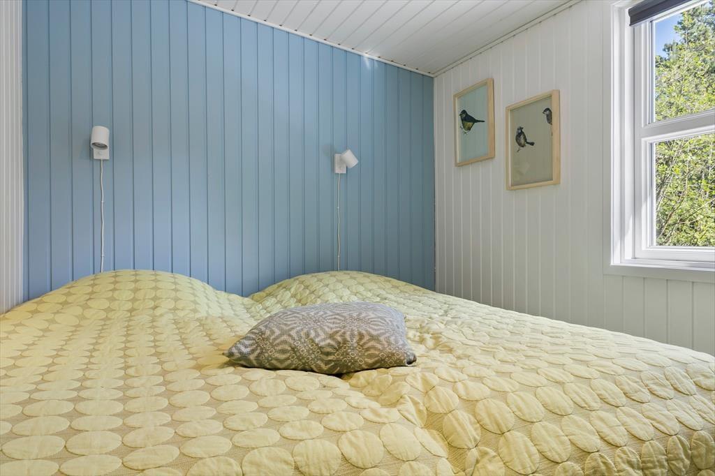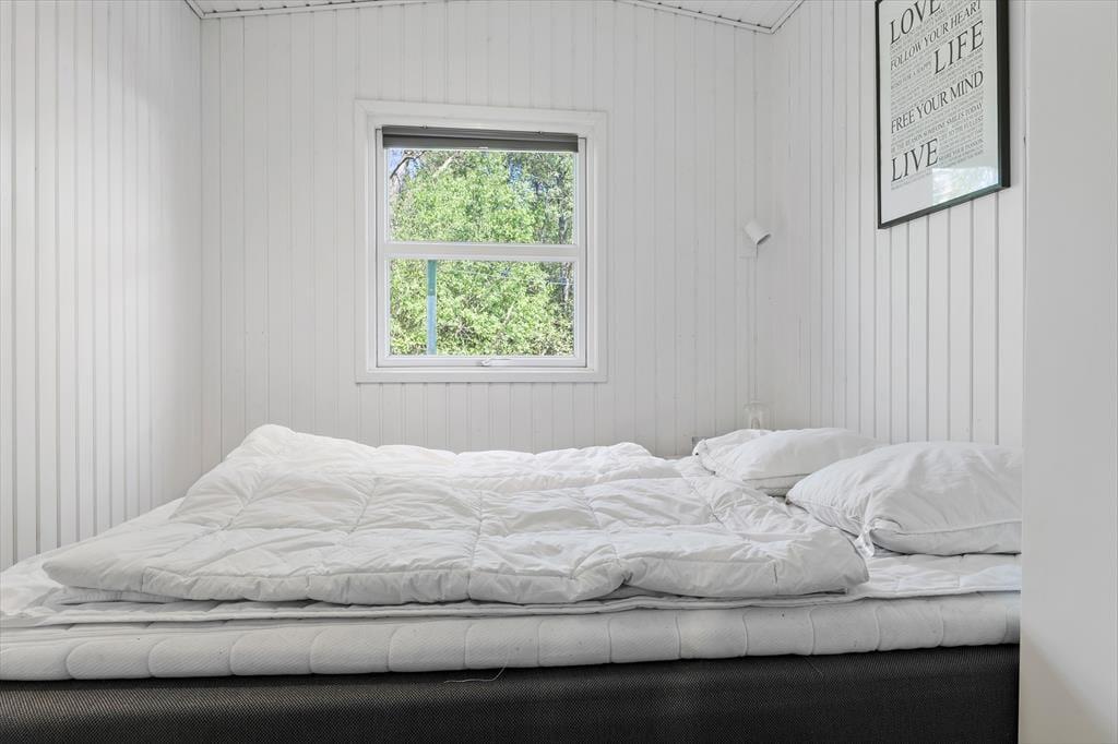 Dieses Ferienhaus präsentiert sich auf schöne und klassische Art und Weise mit grünem Dach, dunkler Holzfassade und weißen Fensterrahmen. Im Inneren des Hauses herrscht eine perfekte Ferienhausatmosphäre mit weißen Holzwänden und hoher Decke, und auch der Brennofen trägt mit seiner Wärme zur gemütlichen Stimmung bei. Im Aufenthaltsraum sind Wohnzimmer und Küche vereint, sodass du auch beim Kochen vom gemütlichen Beisammensein mit der Familie nicht ausgeschlossen bist. Über ein Badezimmer hinaus enthält der Grundriss auch eine Sauna, sodass du dich darauf freuen kannst, dich nach den Ausflügen des Tages zurücklehnen zu können, während du vollständig durchgewärmt wirst. Zur Nachtruhe kannst du dich auf drei Schlafzimmer verteilen, von denen eines mit einem Doppelbett und die anderen beiden jeweils mit zwei Einzelbetten ausgestattet sind.