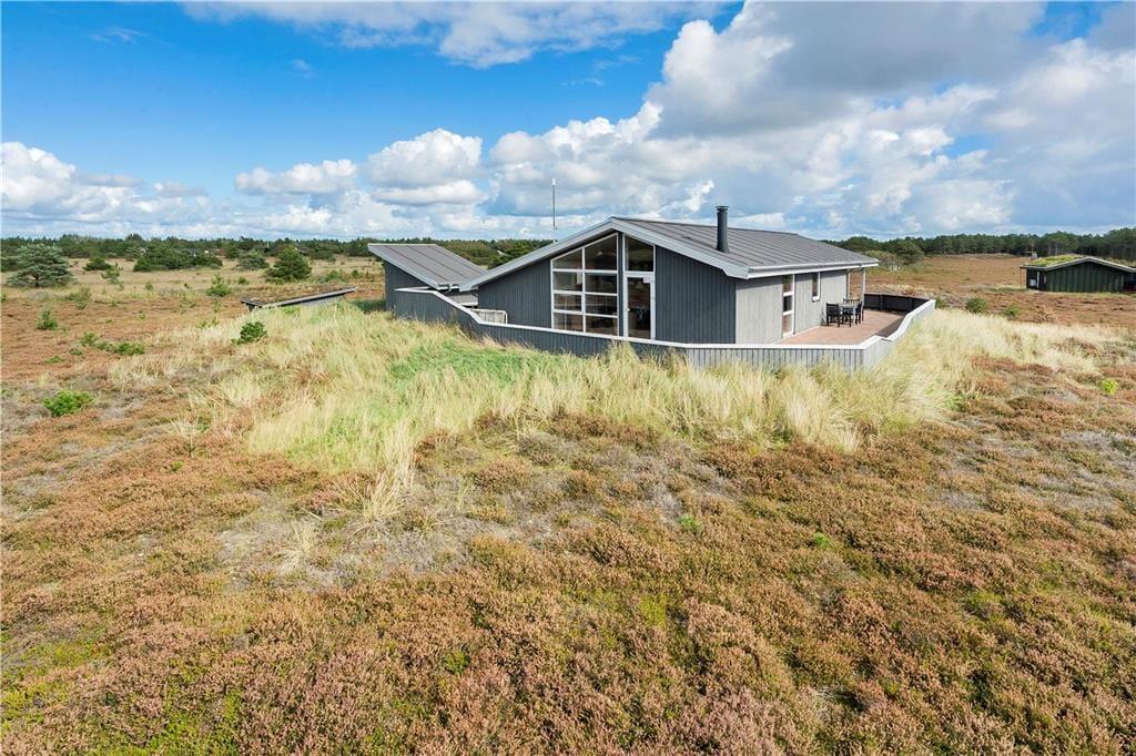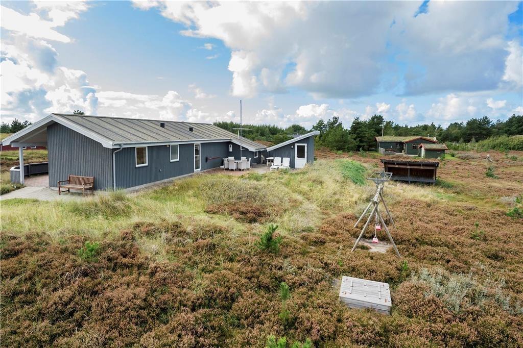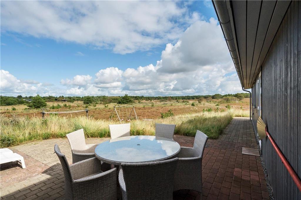 Der Außenbereich des Ferienhauses ist mindestens genauso fantastisch. Das liegt nicht nur an der großzügigen Größe des Grundstücks und der fantastischen Aussicht, sondern auch an dem schönen Terrassenmilieu, welches sich um das gesamte Haus herumschmiegt. Ein Teil der Terrasse ist überdacht, und es erwarten dich ebenfalls ein Shelter, ein Schaukelgerüst und ein Sandkasten, mit denen du dich vergnügen kannst.