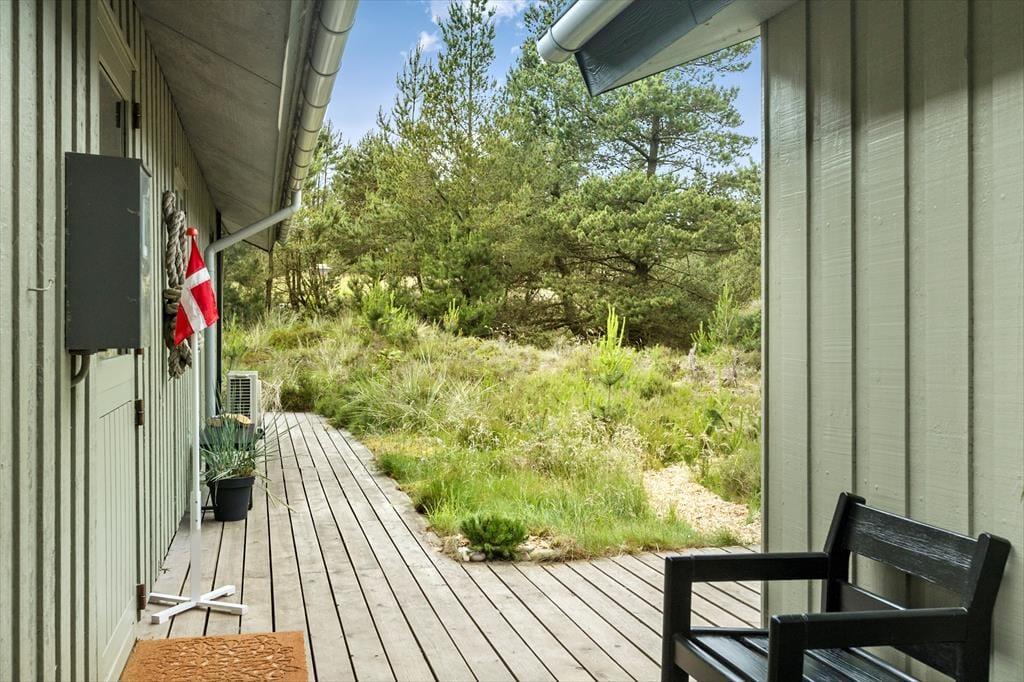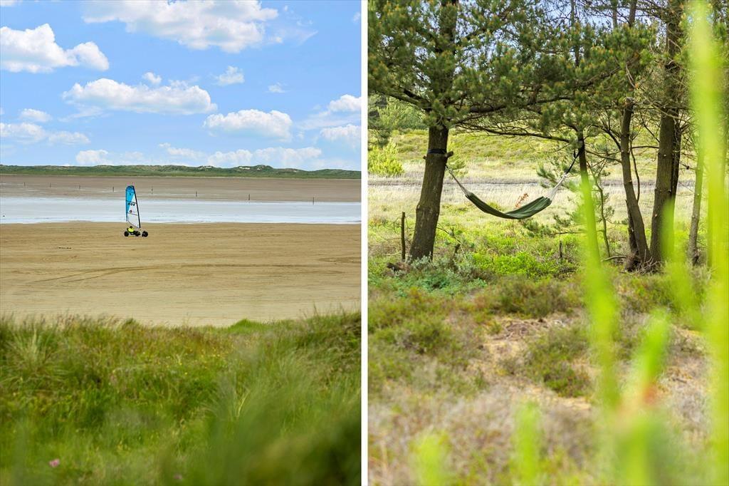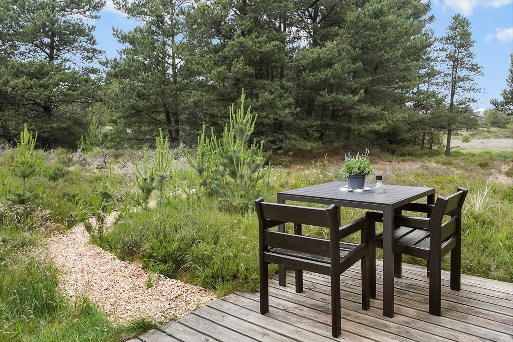 Das Ferienhaus liegt recht ruhig am Ende einer kleinen Seitenstraße des Weges Blåbærvej. Über ein Wegesystem gelangt man bequem zur Tvismark Plantage oder hinaus in die offene, mit Heidekraut bewachsene Landschaft, die für Bolilmark so typisch ist. 19 Meter klingen vielleicht nicht viel, reichen aber aus, um die naheliegende Anhöhe Høstbjerg Rømø zum höchsten Punkt der Insel zu machen, und an einem klaren Tag kann man weit über das Wattenmeer in Richtung Esbjerg und Mandø blicken. Von Bolilmark aus hast du problemlosen Zugang zum Strand von Lakolk, wenn du Lust hast, in der Nordsee zu baden, und wenn du Golf spielen, beim Fischhändler einkaufen oder vielleicht in ein Café gehen möchtest, kannst du Richtung Süden in den gemütlichen Ort Havneby fahren.