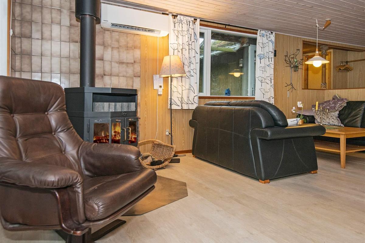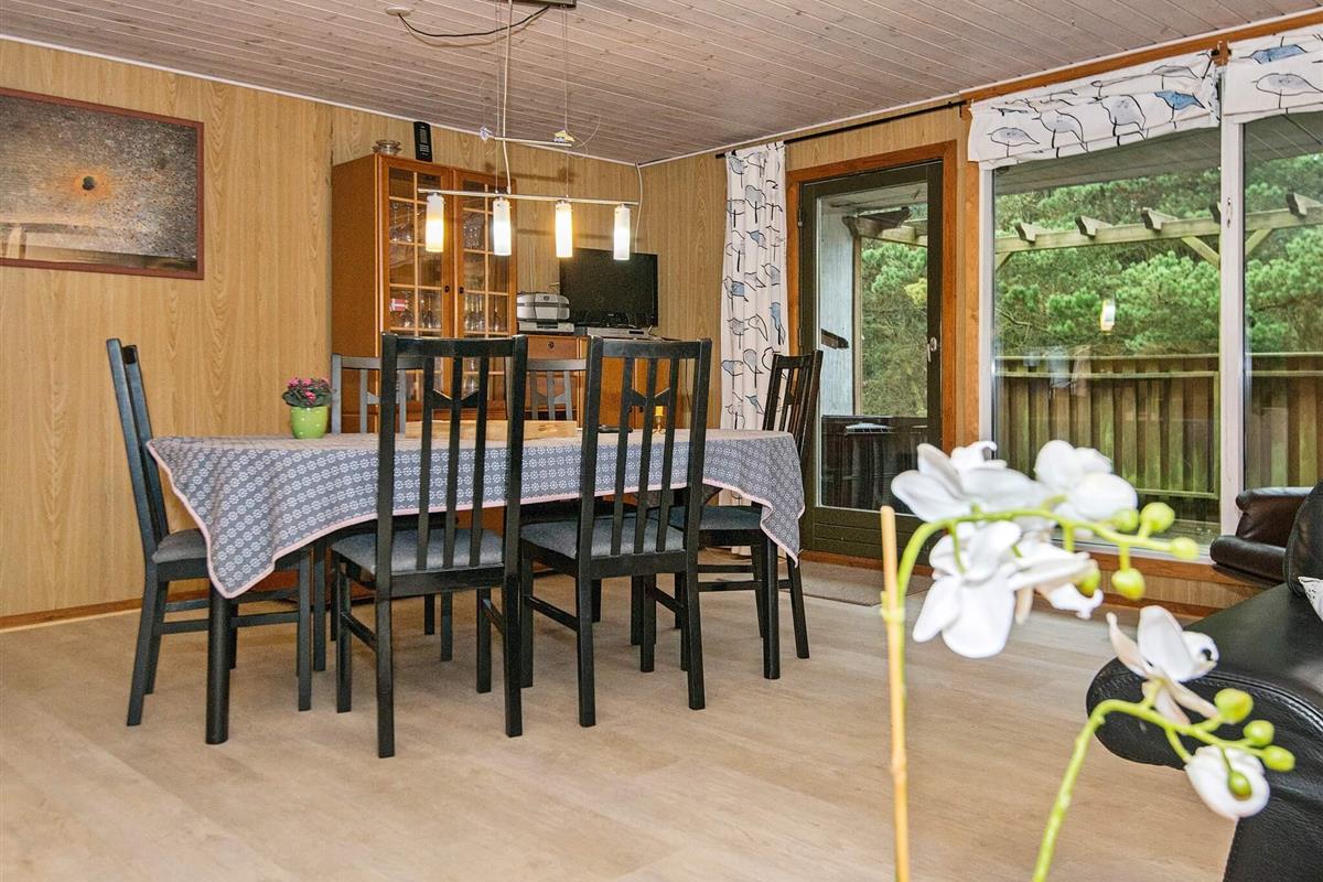 Auf einem hügeligen Naturgrundstück am Ende einer ruhigen Sackgasse findet man, in der schönen Ferienhausgegend von Bolilmark, dieses einfache aber dennoch gut ausgestattete, ältere Ferienhaus mit Sauna. Die drei Schlafzimmer, die vom Wohnzimmer aus zugänglich sind, sind geräumig und bieten Stauraum. Den Mittelpunkt des Hauses bildet der offene Küchen-/Wohnbereich. Von hier hat man Zutritt zur umzäunten Terrassenfläche, auf der man ungestört Platz nehmen und die Sommertage genießen kann. Für kühlere Jahreszeiten verfügt das Haus auch über eine Sauna, die nach einem langen Strandspaziergang durch die reizvolle Umgebung angenehme Wärme spenden kann.