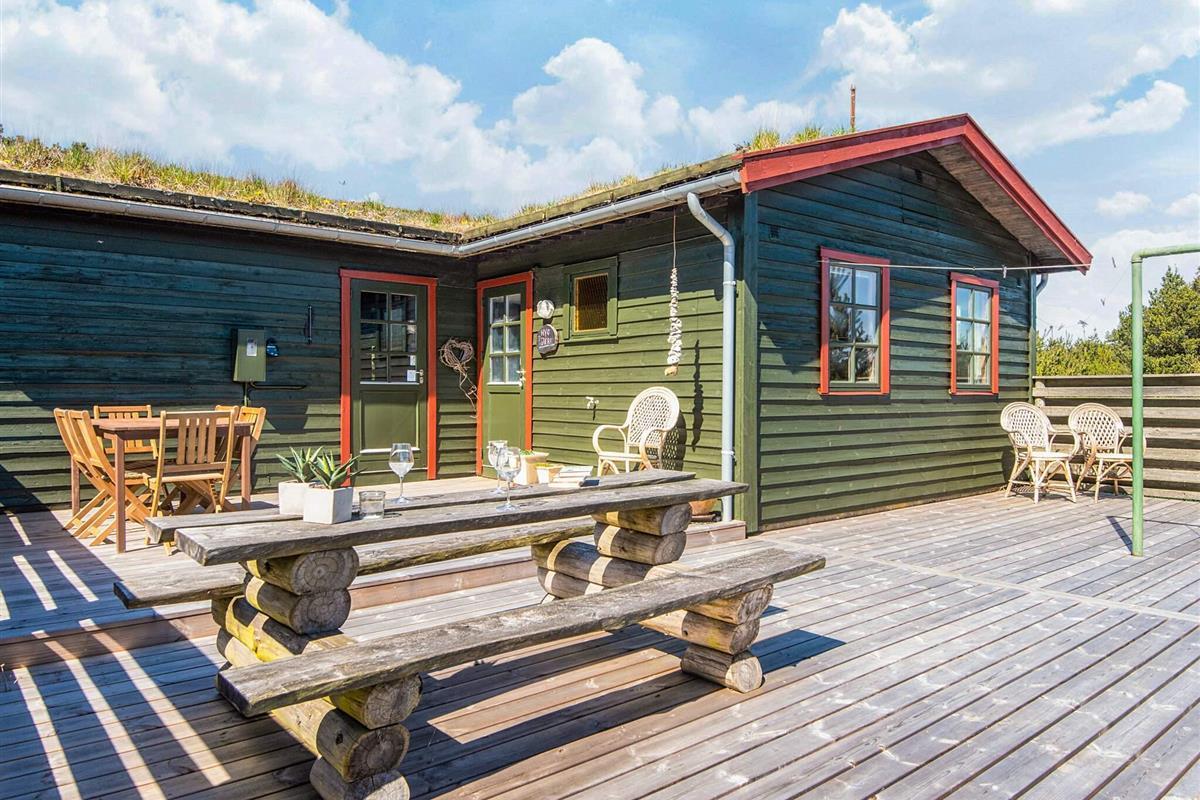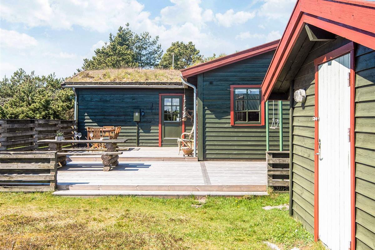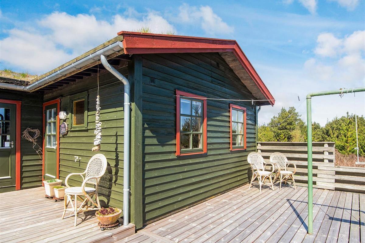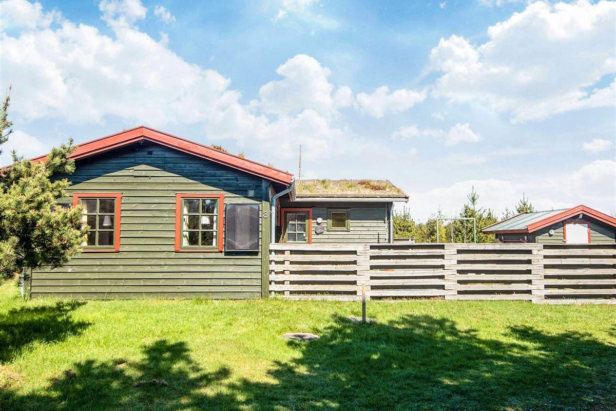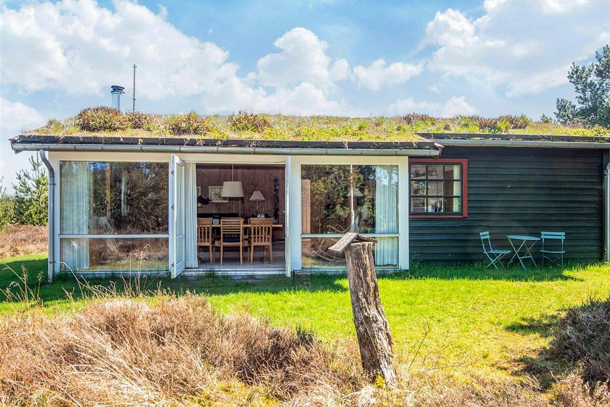 Ferienhaus auf einem weitläufigen, u.a. mit Heidekraut bewachsenen Naturgrundstück, gelegen in einem ruhigen Ferienhausgebeit von Bolilmark. Im Haus gibt es einen offenen Küchen-/Wohnbereich mit Essecke und Holzofen für kühlere Abende. Außerdem Bad mit Dusche sowie drei Schlafzimmer im Haus. Es liegt durch die Bäume ringsum schön geschützt, ein lauschiges Plätzchen auf der Terrasse ist somit bei fast jeder Windrichtung zu finden. Keine Vermietung an Jugendgruppen erwünscht!