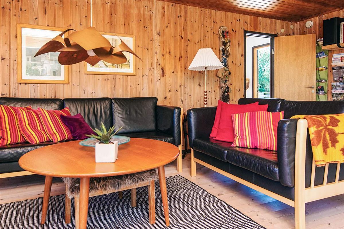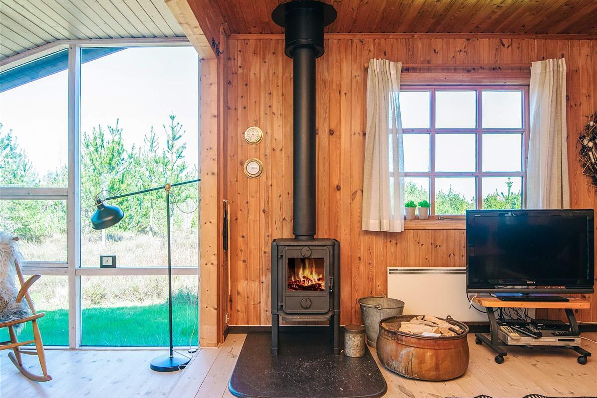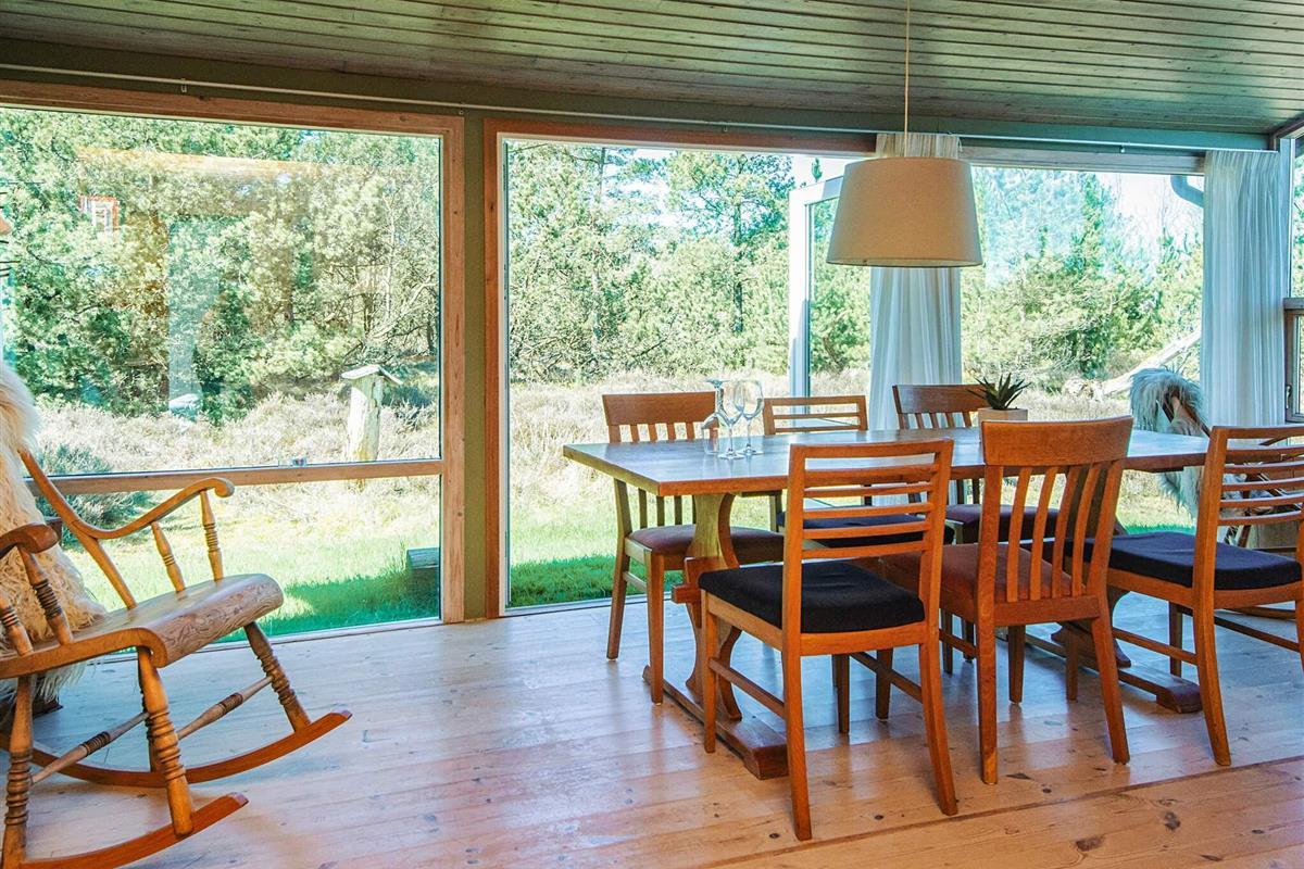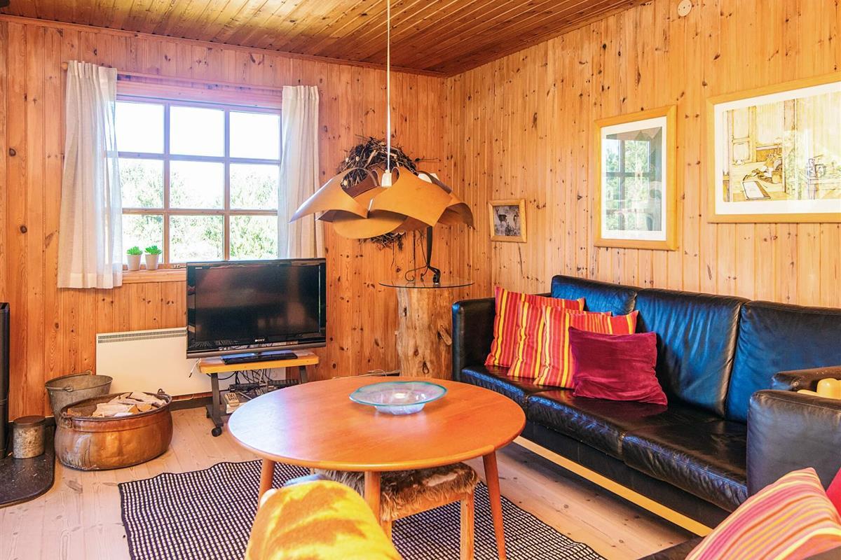 Ferienhaus auf einem weitläufigen, u.a. mit Heidekraut bewachsenen Naturgrundstück, gelegen in einem ruhigen Ferienhausgebeit von Bolilmark. Im Haus gibt es einen offenen Küchen-/Wohnbereich mit Essecke und Holzofen für kühlere Abende. Außerdem Bad mit Dusche sowie drei Schlafzimmer im Haus. Es liegt durch die Bäume ringsum schön geschützt, ein lauschiges Plätzchen auf der Terrasse ist somit bei fast jeder Windrichtung zu finden. Keine Vermietung an Jugendgruppen erwünscht!