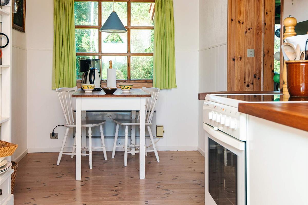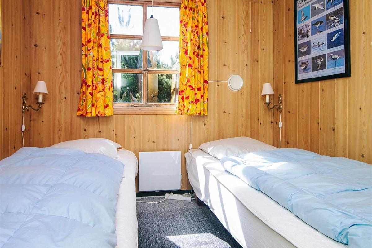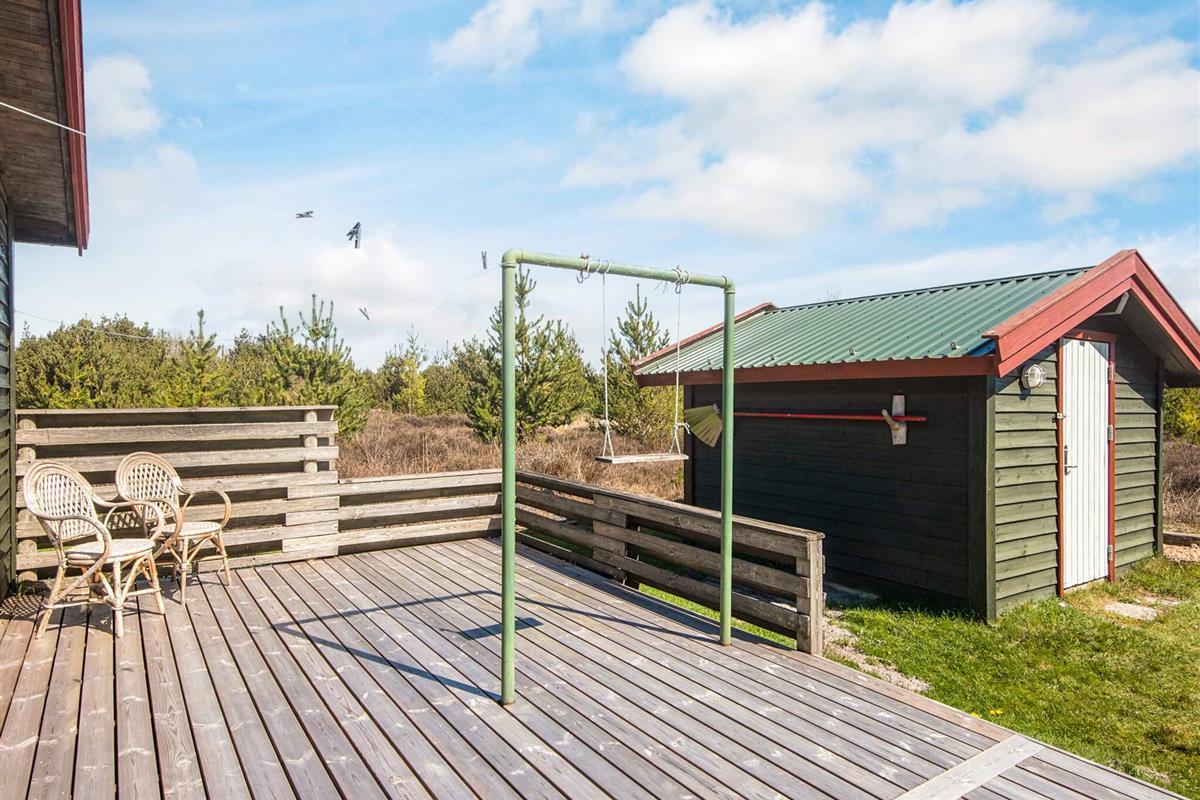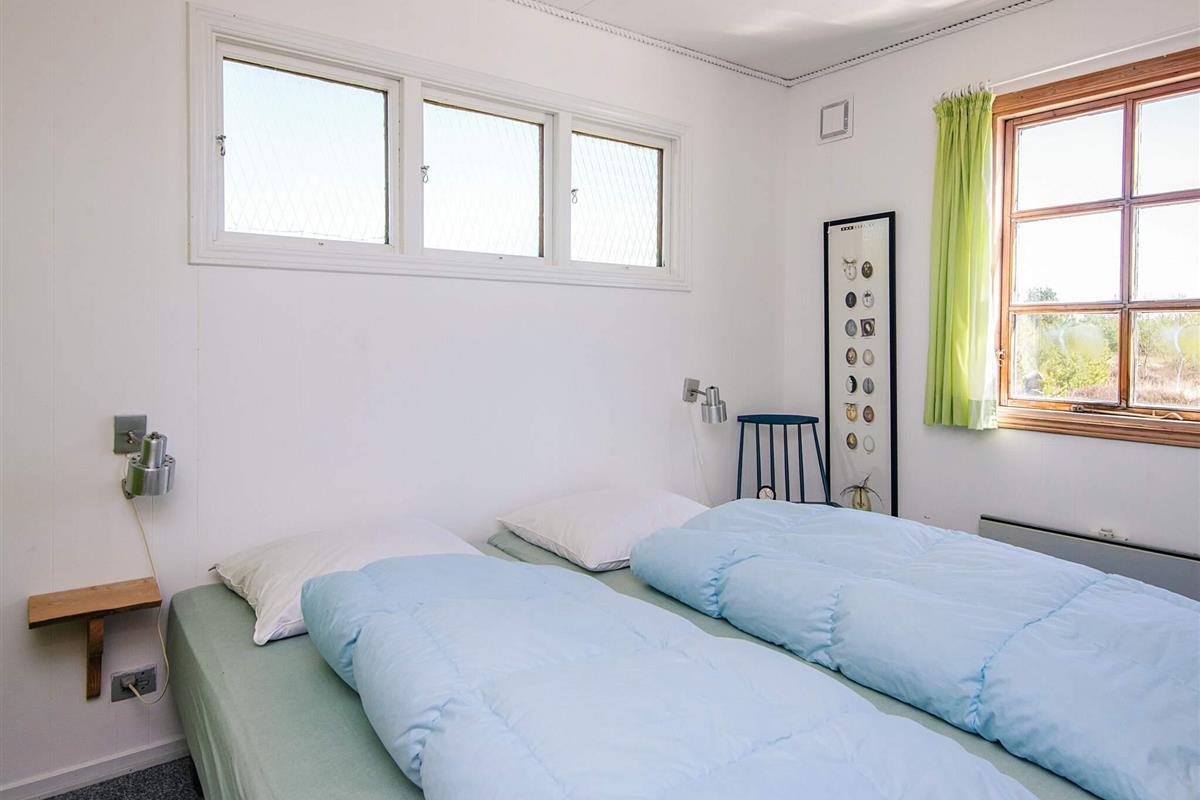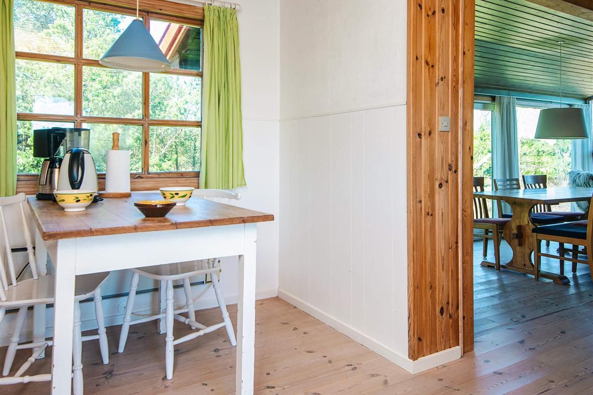Ferienhaus auf einem weitläufigen, u.a. mit Heidekraut bewachsenen Naturgrundstück, gelegen in einem ruhigen Ferienhausgebeit von Bolilmark. Im Haus gibt es einen offenen Küchen-/Wohnbereich mit Essecke und Holzofen für kühlere Abende. Außerdem Bad mit Dusche sowie drei Schlafzimmer im Haus. Es liegt durch die Bäume ringsum schön geschützt, ein lauschiges Plätzchen auf der Terrasse ist somit bei fast jeder Windrichtung zu finden. Keine Vermietung an Jugendgruppen erwünscht!
