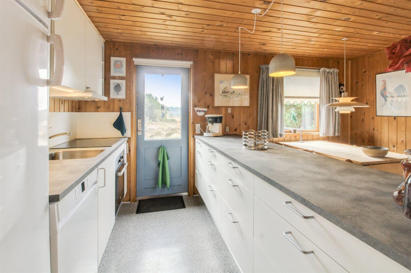 De keuken is uitgerust met koelkast Er is 4 inductiekookplaten, heteluchtoven, magnetron en vaatwasser.
