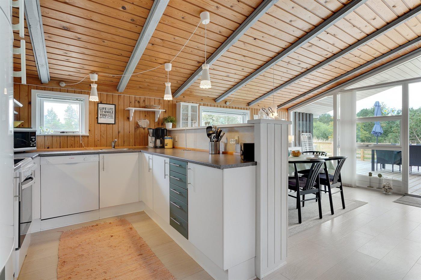 De keuken is uitgerust met koelkast Er zijn 4 keramische kookplaten, heteluchtoven, magnetron en vaatwasser.
