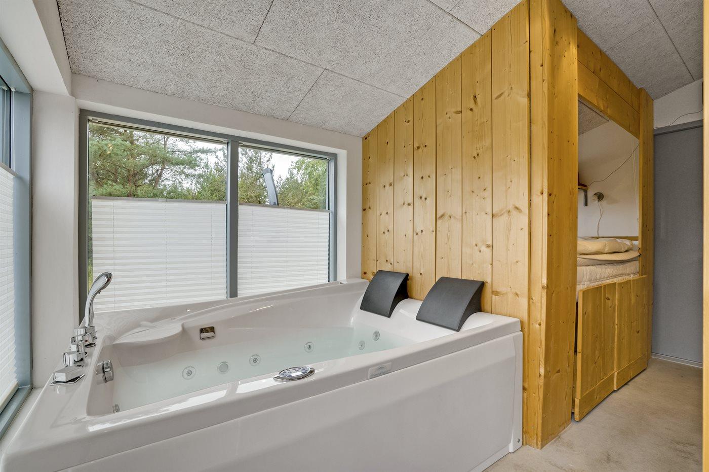 Het binnenbubbelbad (vulwater) biedt ontspanning aan 2 personen.