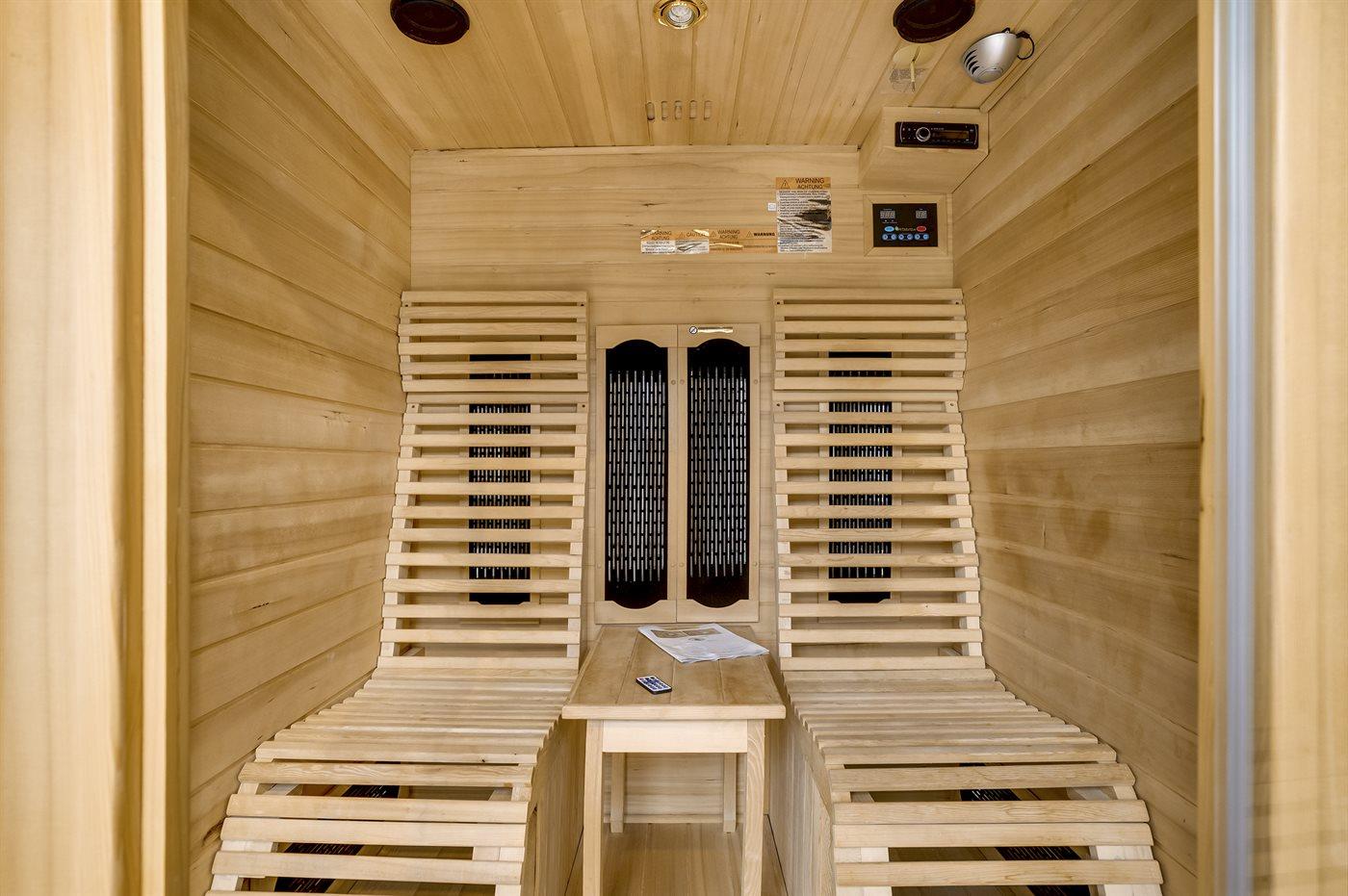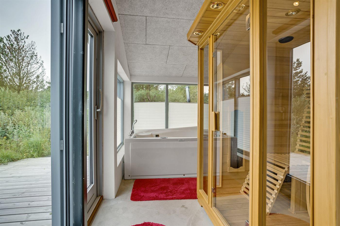 Er is 1 badkamer met douchehok en 2 toiletten, waarvan 1 gastentoilet. Er is vloerverwarming in 1 badkamer. De sauna biedt de gelegenheid tot ontspanning. De infraroodsauna biedt de gelegenheid tot ontspanning.