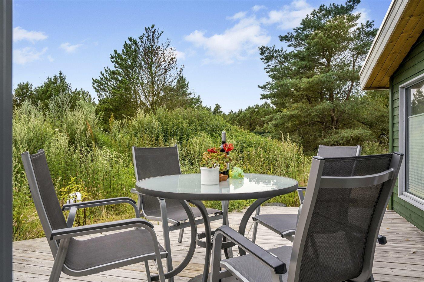 De vakantiewoning is gelegen op een 2800 m² groot natuural grond. Afstand tot de zee 2800 m. Dichtstbijzijnde winkel 3600 m. Bij de vakantiewoning hoort 50 m² terras. Gereedschapsruimte. Parkeerplaats bij het huis.