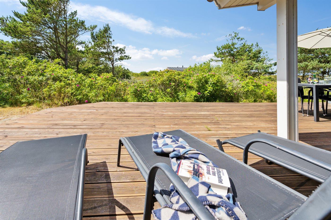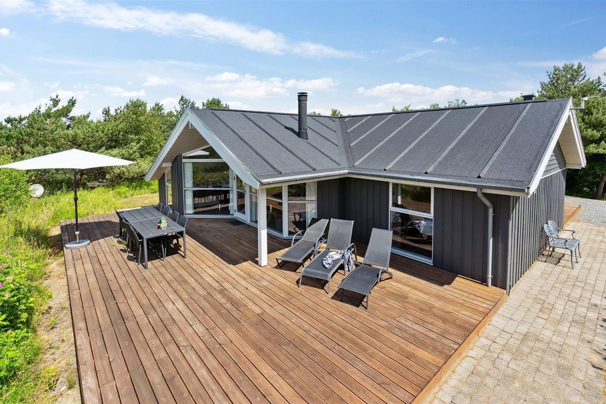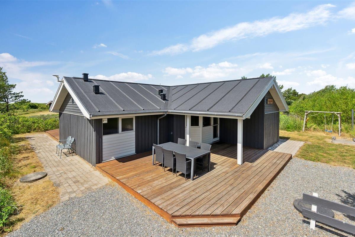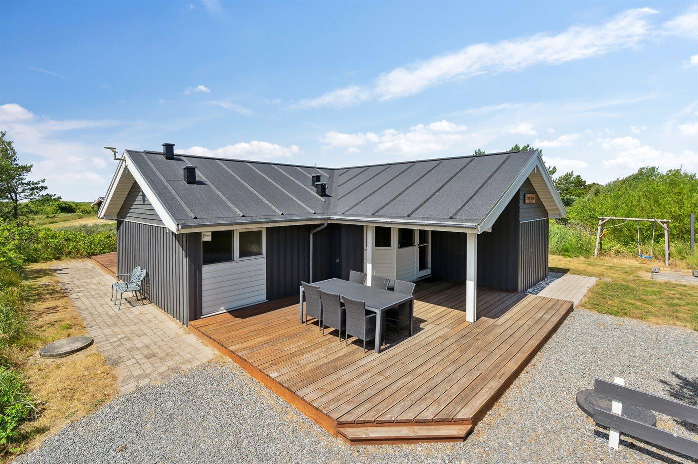 De vakantiewoning is gelegen op een 2900 m² groot natuural grond. Afstand tot de zee 2400 m. Dichtstbijzijnde winkel 4400 m. Bij de vakantiewoning hoort 68 m² terras. Daarnaast is er een 24 m² groot overdekt terras. Gereedschapsruimte. Schommel. Zandbak. Parkeerplaats bij het huis.