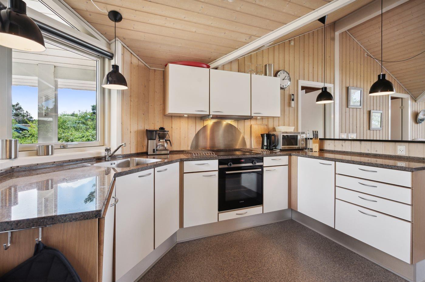 De keuken is uitgerust met koelkast Er zijn 4 keramische kookplaten, heteluchtoven, magnetron en vaatwasser.