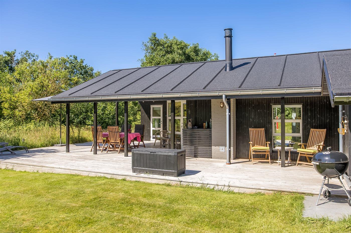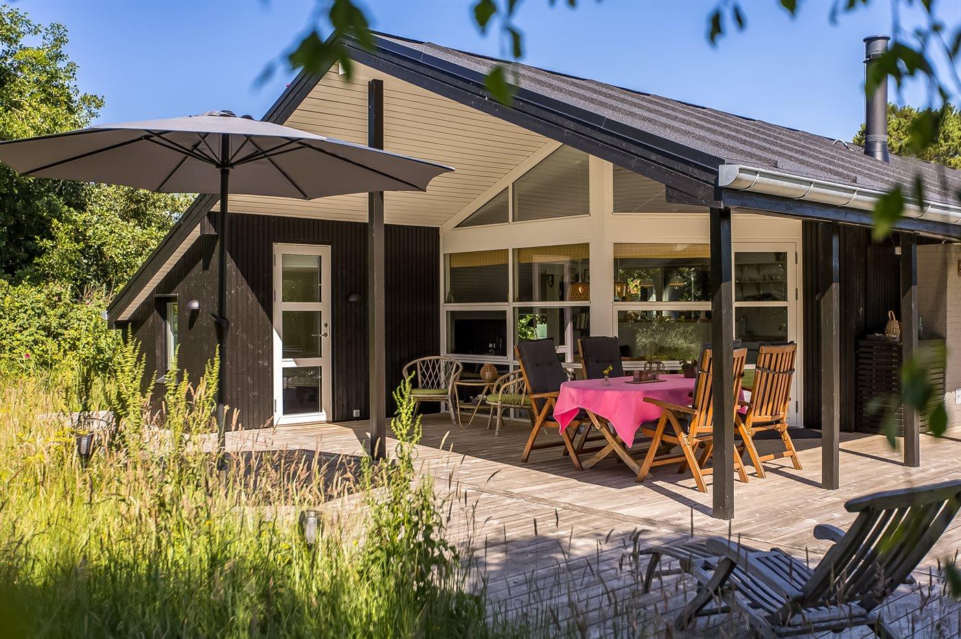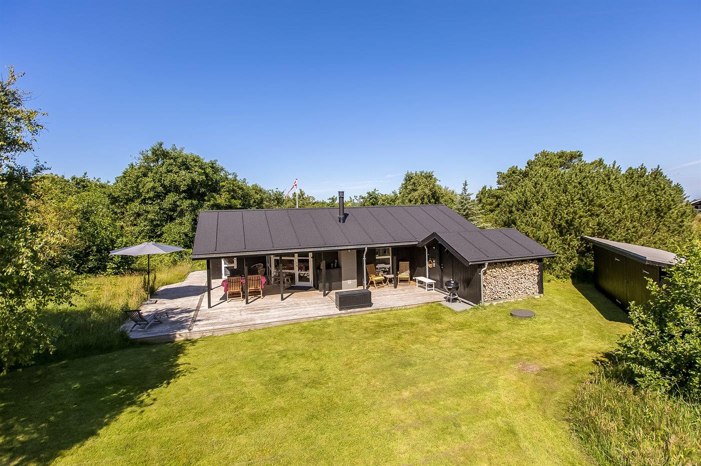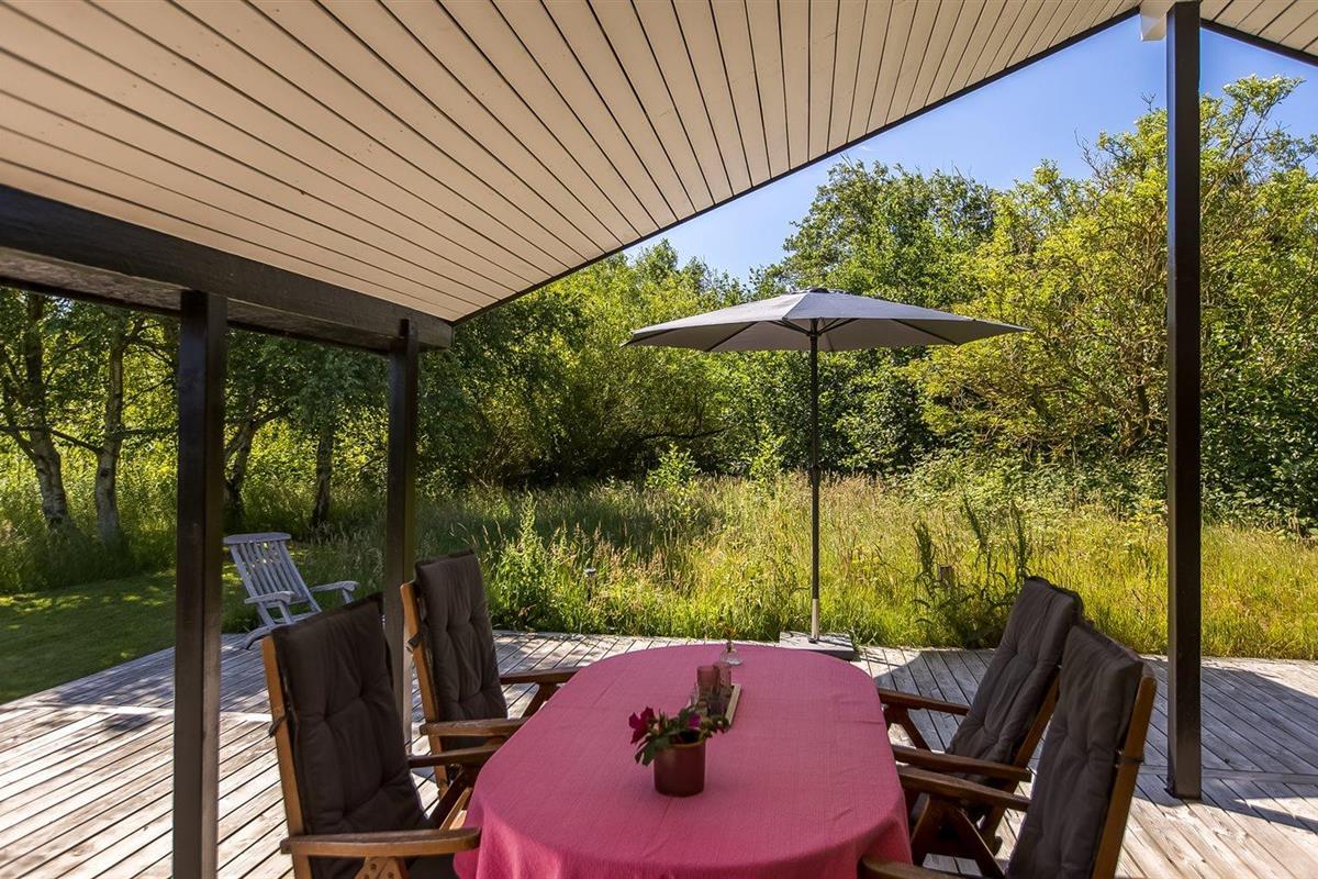 Gezellig vakantiehuis op Rømø met terras, houtkachel, moderne keuken en ruim perceel in natuurlijke omgeving.