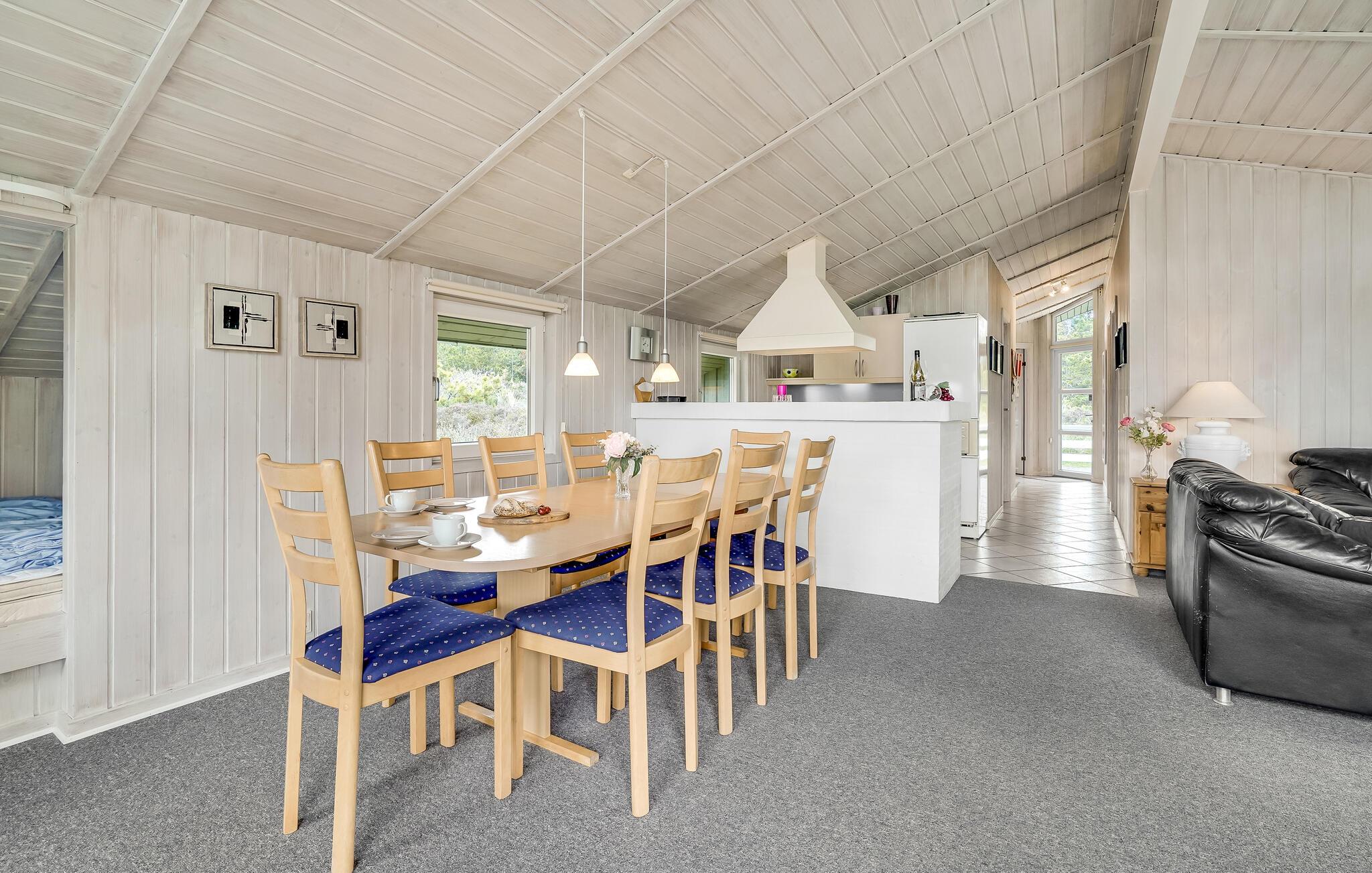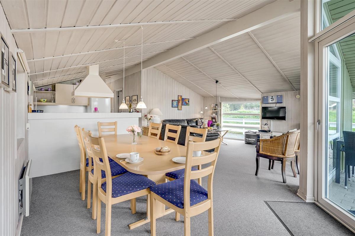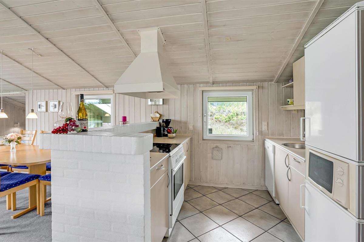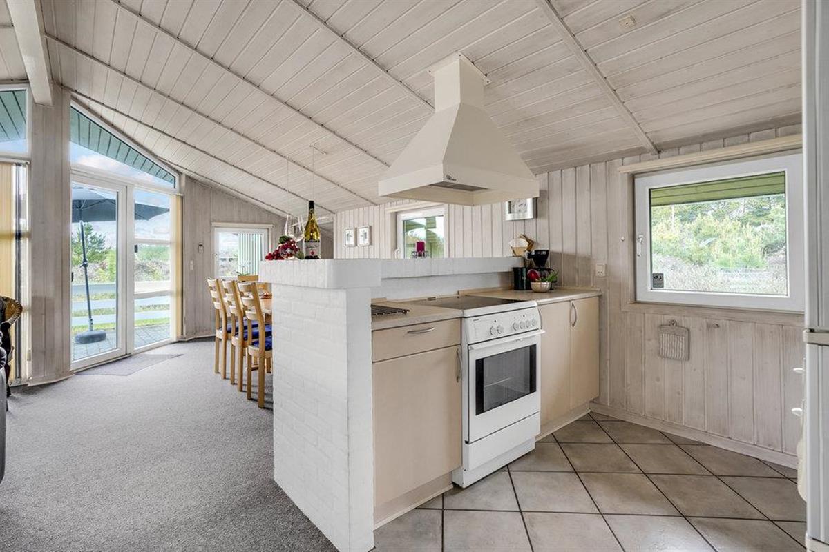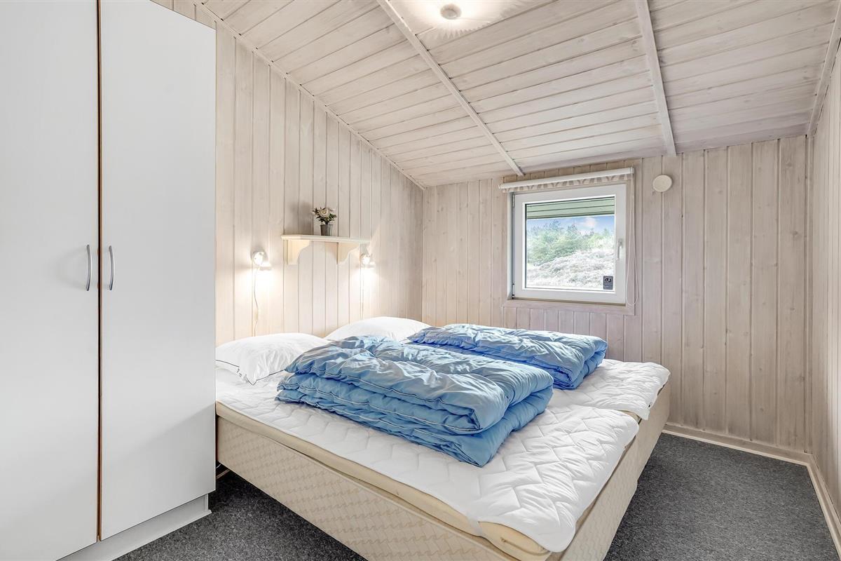 Dit heerlijke luxe huis ligt op een heuvelachtig en met heide begroeid duinperceel in de mooie en rustige omgeving van Bolilmark. Vanaf het westelijke terras heeft u een fantastisch uitzicht dat zich ver over het 2500 m² grote perceel uitstrekt. Een voet- en fietspad leidt van Bolilmark naar het strand van Lakolk. U kunt er echter ook gratis met de auto naartoe. Het huis is voorzien van vele details, waaronder twee alternatieve nissen in de woonkamer, die bij gebruik ruimte creëren voor acht personen voor dezelfde prijs. Het is geschikt voor vakantieverblijven het hele jaar door. De open haard zorgt voor gunstige warmte en veel gezelligheid.