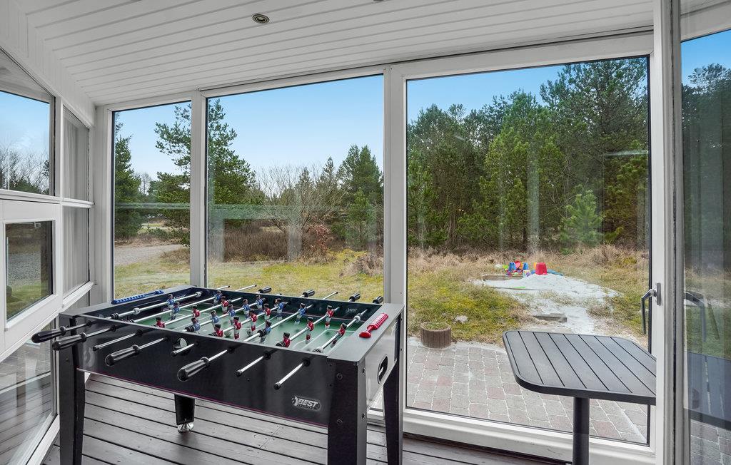 In de populaire wijk Bolilmark op Rømø vindt u dit ruime zwembadhuis op een mooi met erica begroeid perceel. Vanuit het zwembad komt u uit op het terras. U kiest zelf of u het hek opent, zodat u vanaf het terras vrij uitzicht heeft op een groot erica gebied ten noordwesten van het huis. Het huis is goed geschikt voor twee gezinnen, want het heeft twee slaapcompartimenten met elk drie slaapkamers en een badkamer. Vanuit de ene badkamer komt u direct in de zwembadruimte, waar ook een sauna is. Vanuit de woonkamer kunt u de activiteiten in het zwembad bekijken door de grote raampartij. De deur naar de zwembadkamer heeft kinderbeveiliging. Er is een fietspad van Bolilmark naar de winkels van Lakolk en het strand.