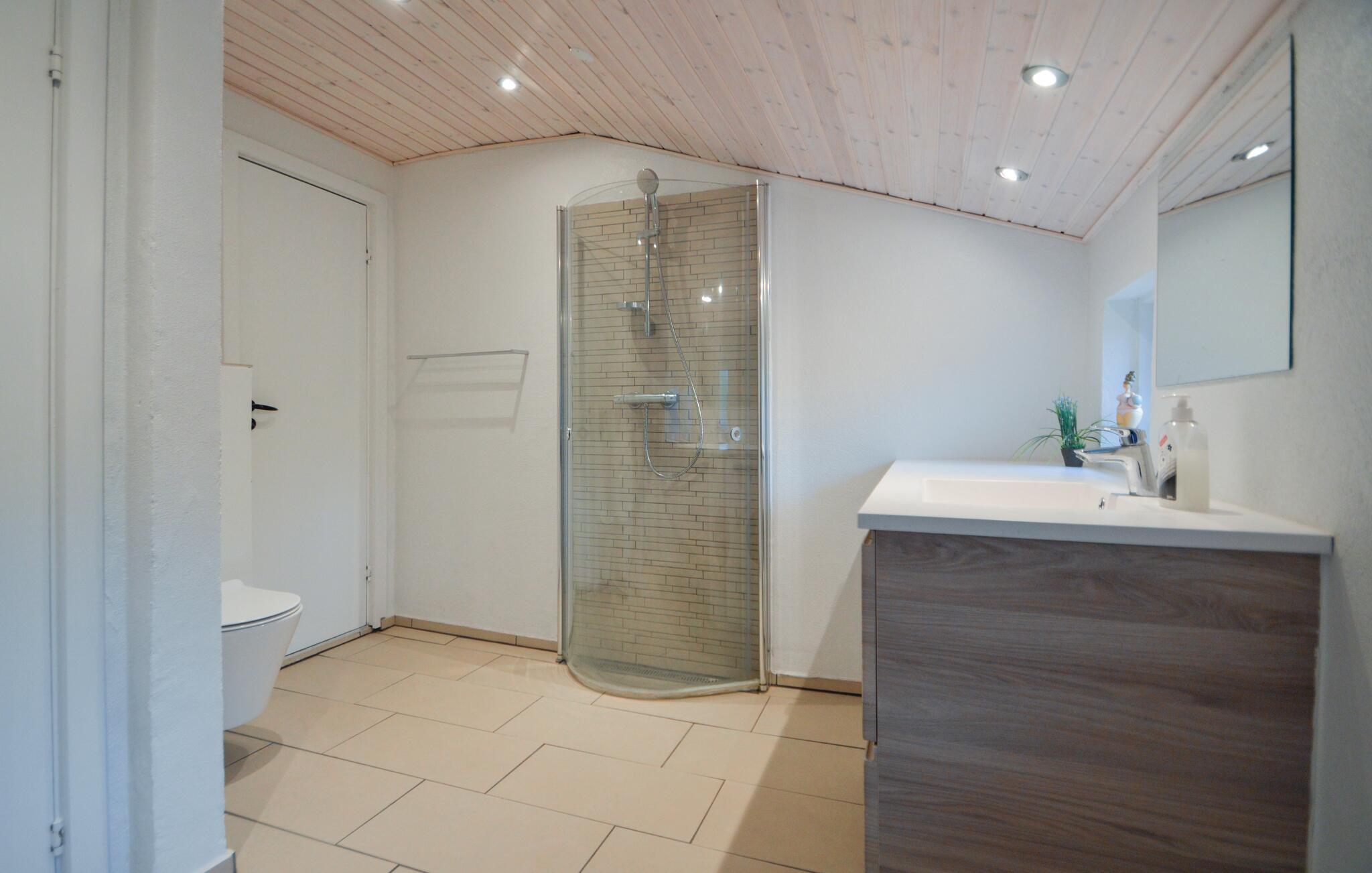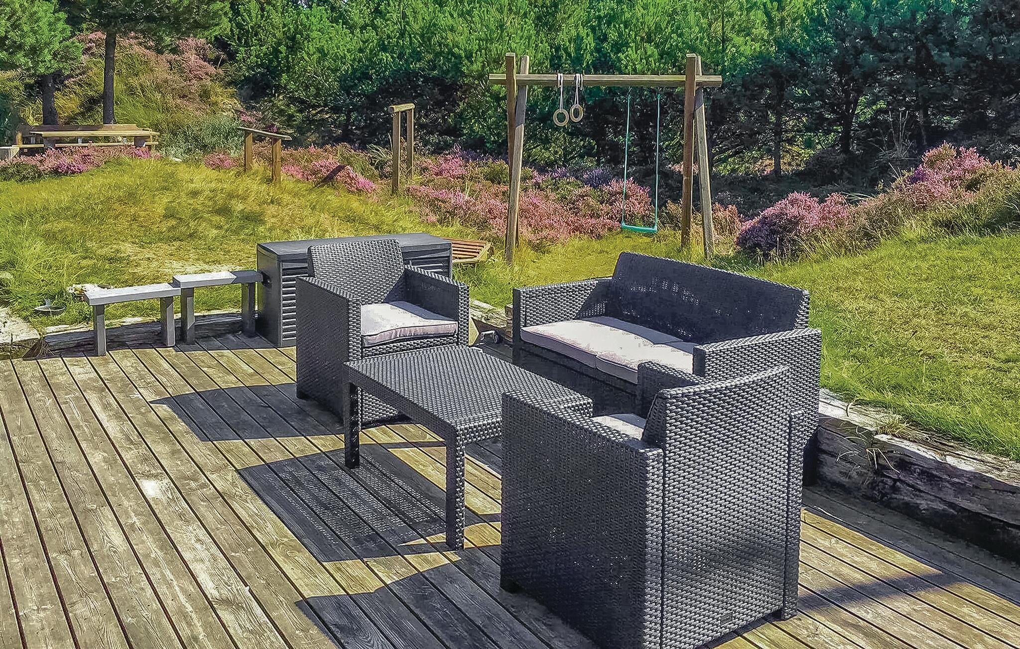 Dit vakantiehuis ligt aan het einde van een doodlopende weg, waar de natuur van Bolilmark op zijn mooist en heuvelachtigst is. Vanaf het hoogste punt van de woning is er uitzicht op het vakantiegebied van Bolilmark. Het huis heeft een gedeeltelijk overdekt terras, zodat tot op het laatste moment van de zomeravonden kan worden genoten, en open terrassen. Een daarvan heeft een douche en muurstangen. Het interieur en de kleurkeuze zorgen voor een warme en gezellige sfeer in het huis.