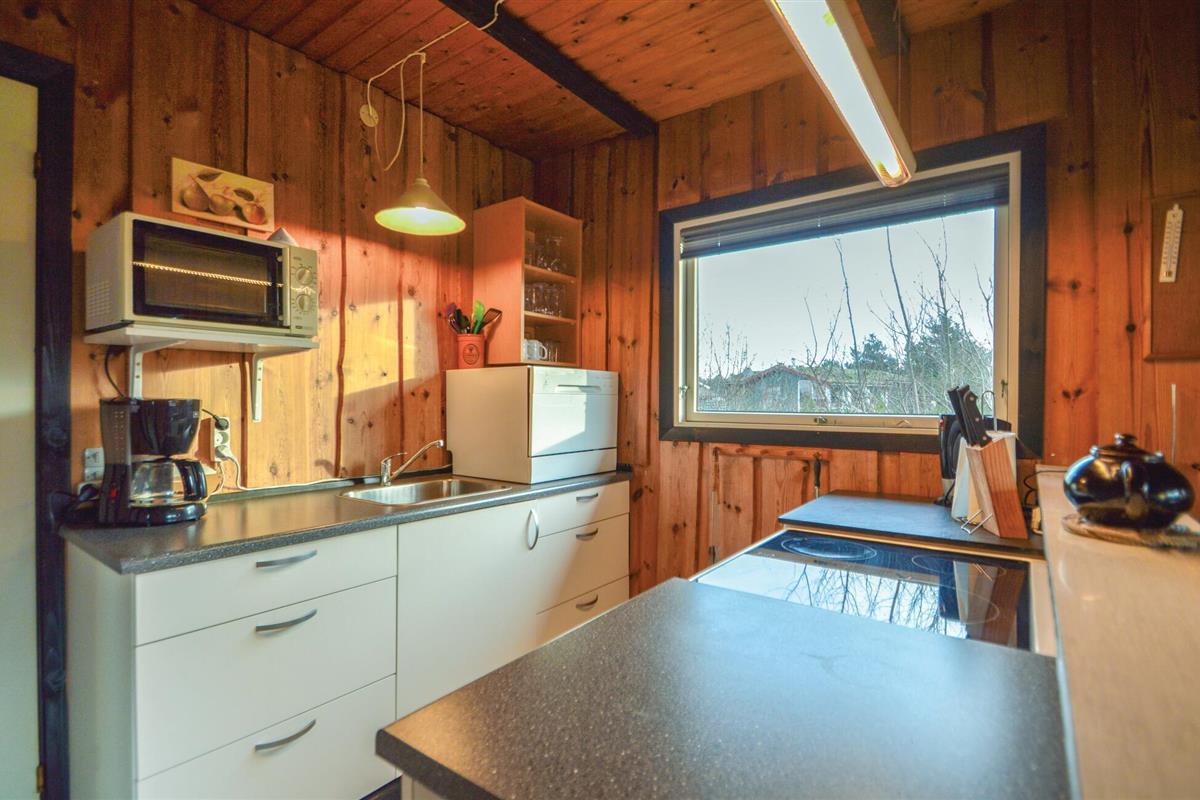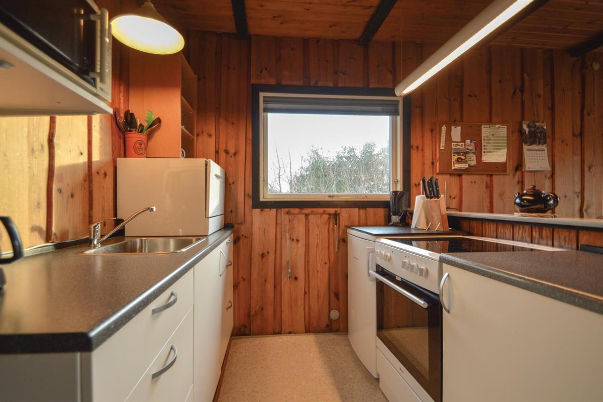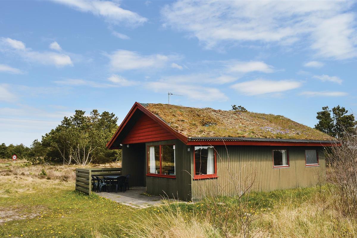 Je vakantiehuis bij Lakolk ligt midden in een heidelandschap en is ideaal ingebed in de omgeving met zijn traditionele grasdak. Hier kun je genieten van de rust van de natuur en er even helemaal tussenuit. Het huis biedt ruimte aan een klein gezin of een stel. Het woongedeelte is bekleed met houten lambrisering en creëert een warme sfeer. Comfortabele stoelen en een eettafel nodigen uit om gezellige uurtjes samen door te brengen. In de winter zorgt de houtkachel voor gezellige warmte. De keuken is functioneel uitgerust zodat je gemakkelijk maaltijden kunt bereiden.