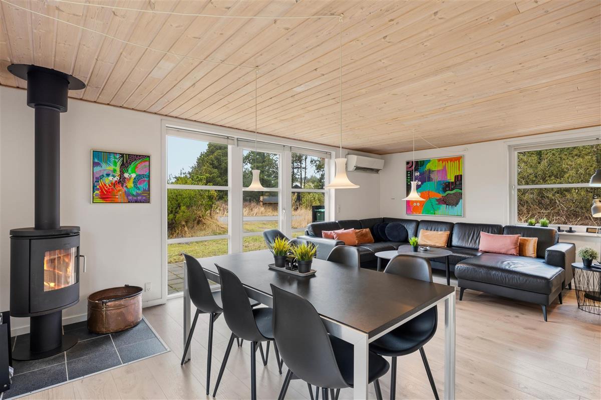 Das Ferienhaus in Bolilmark, Rømø ist perfekt für einen Aufenthalt mit bis zu 6 Personen. Die warmen Abende kannst du vor dem gemütlichen Kaminofen verbringen, während der großzügige Wohnbereich mit seinen 72m² ausreichend Platz für alle bietet. Insgesamt 3 Schlafzimmer stehen zur Verfügung: ein Raum mit einem Doppelbett und zwei mit je einem Einzelbett. Der offene Wohnbereich, ausgestattet mit moderner Technik wie einer Wärmepumpe und Fußbodenheizung im Bad, schafft eine wohltuende Atmosphäre. Für dein Wohlbefinden sorgen zudem wunderbare Annehmlichkeiten wie ein Whirlpool.