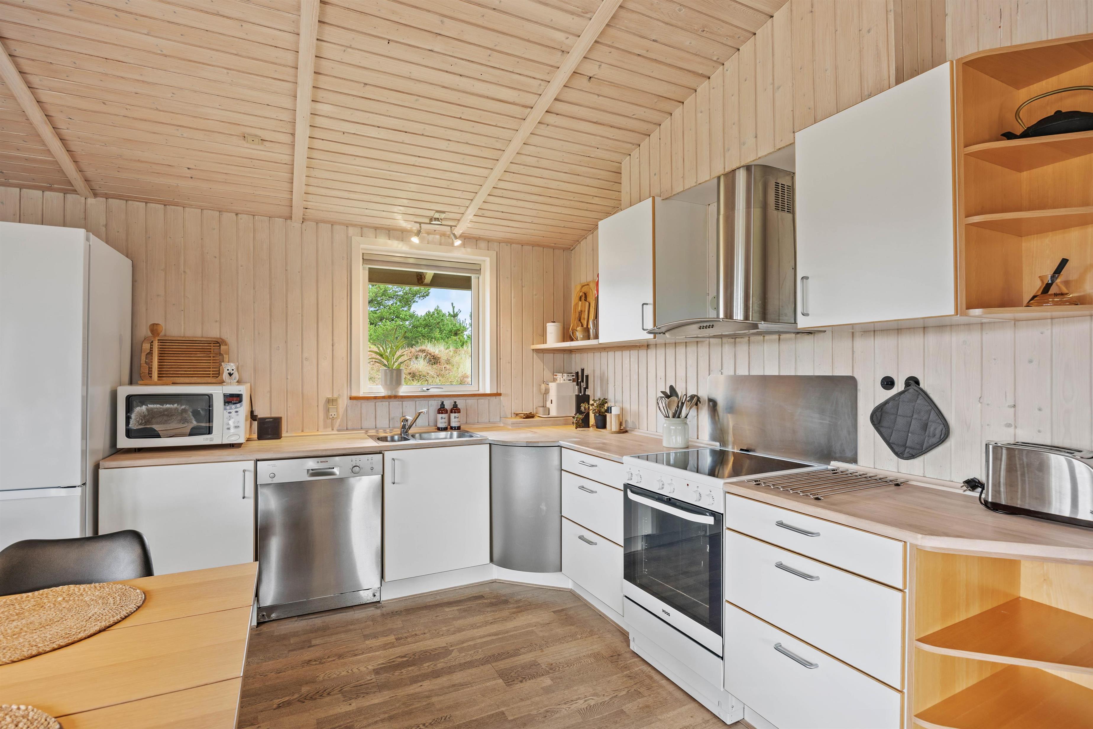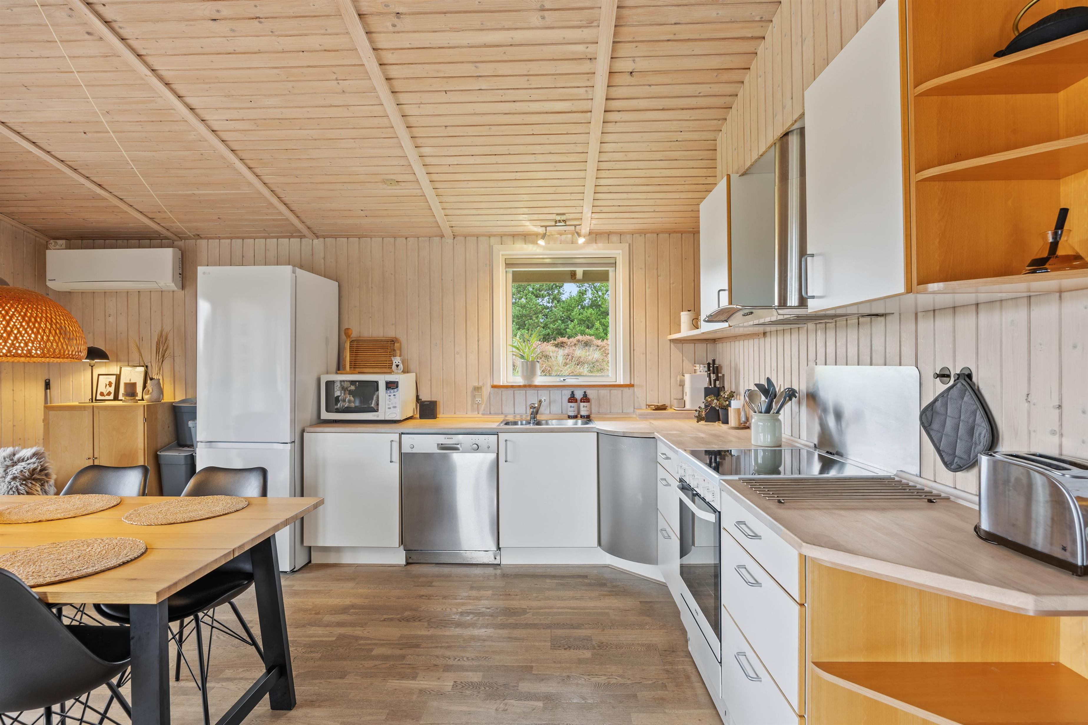 Beim Betreten des Ferienhauses in Bolilmark, Rømø, wirst du sofort von der einladenden Innenausstattung begeistert sein. Der offene Wohn- und Essbereich strahlt im traditionell dänischen Sommerhaus-Stil und bietet durch großzügige Fenster atemberaubende Ausblicke ins Grüne. Hier kannst du vom Alltag entschleunigen und die meditative Ruhe genießen. Der Kaminofen sorgt für gemütliche Abende, während du die Annehmlichkeiten der modernen Küche voll ausschöpfst. Mit Spülmaschine, Waschmaschine und einer Wärmepumpe ist für jeglichen Komfort gesorgt.