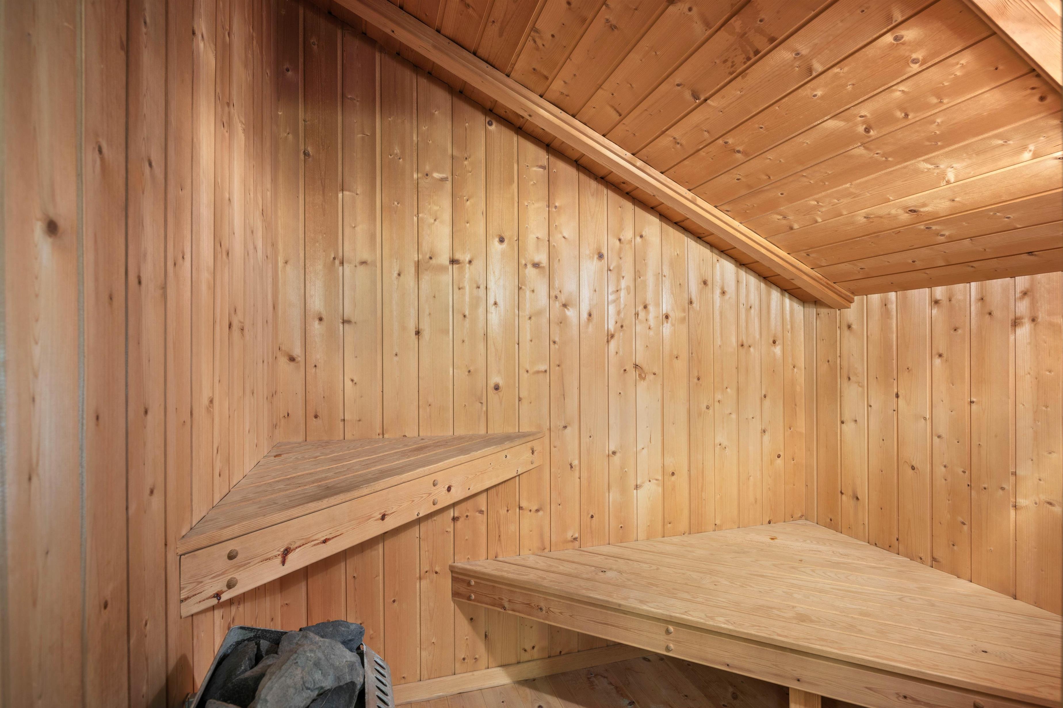 The open-plan kitchen is well-equipped with practical amenities including a dishwasher, microwave, and fridge-freezer. The immaculate bathroom features your own wellness suite with sauna and whirlpool. Here you can relax in the warm water or enjoy lengthy sauna sessions. The bathroom benefits from underfloor heating and includes a washing machine for added convenience.