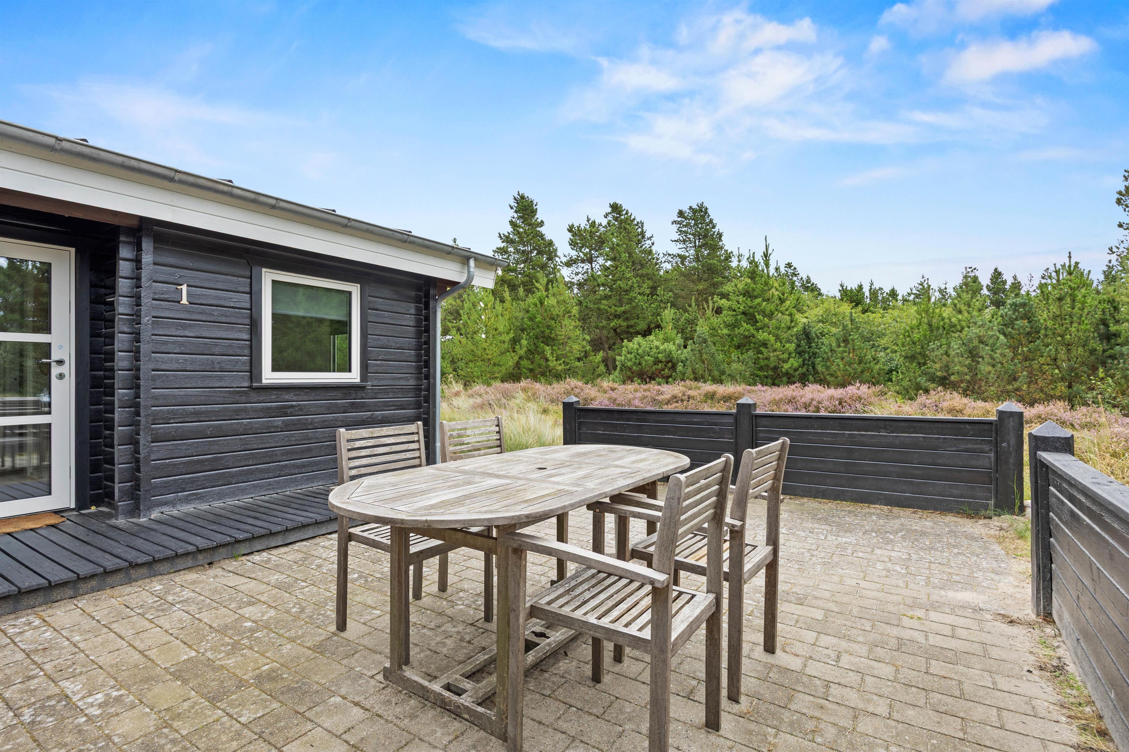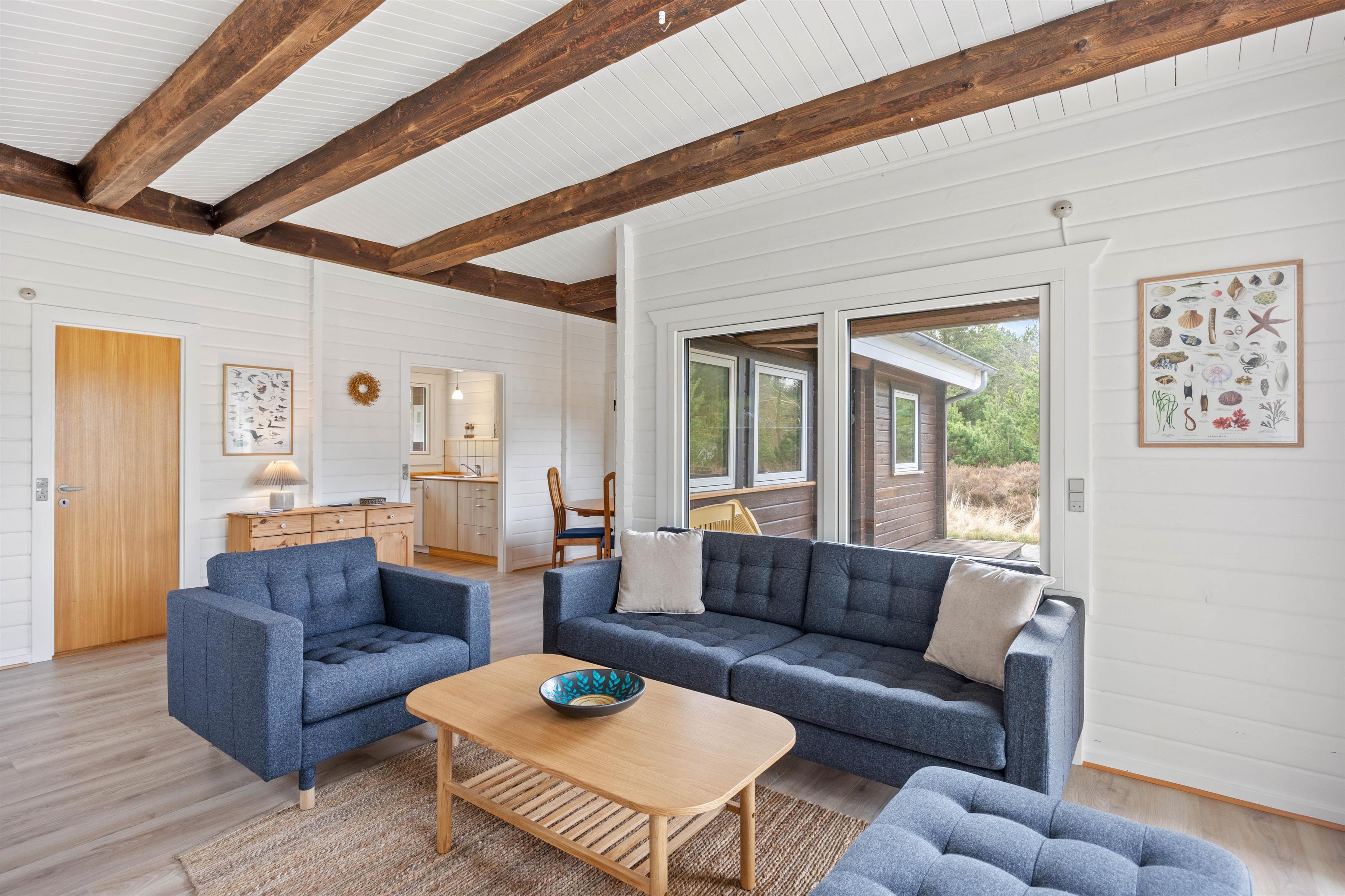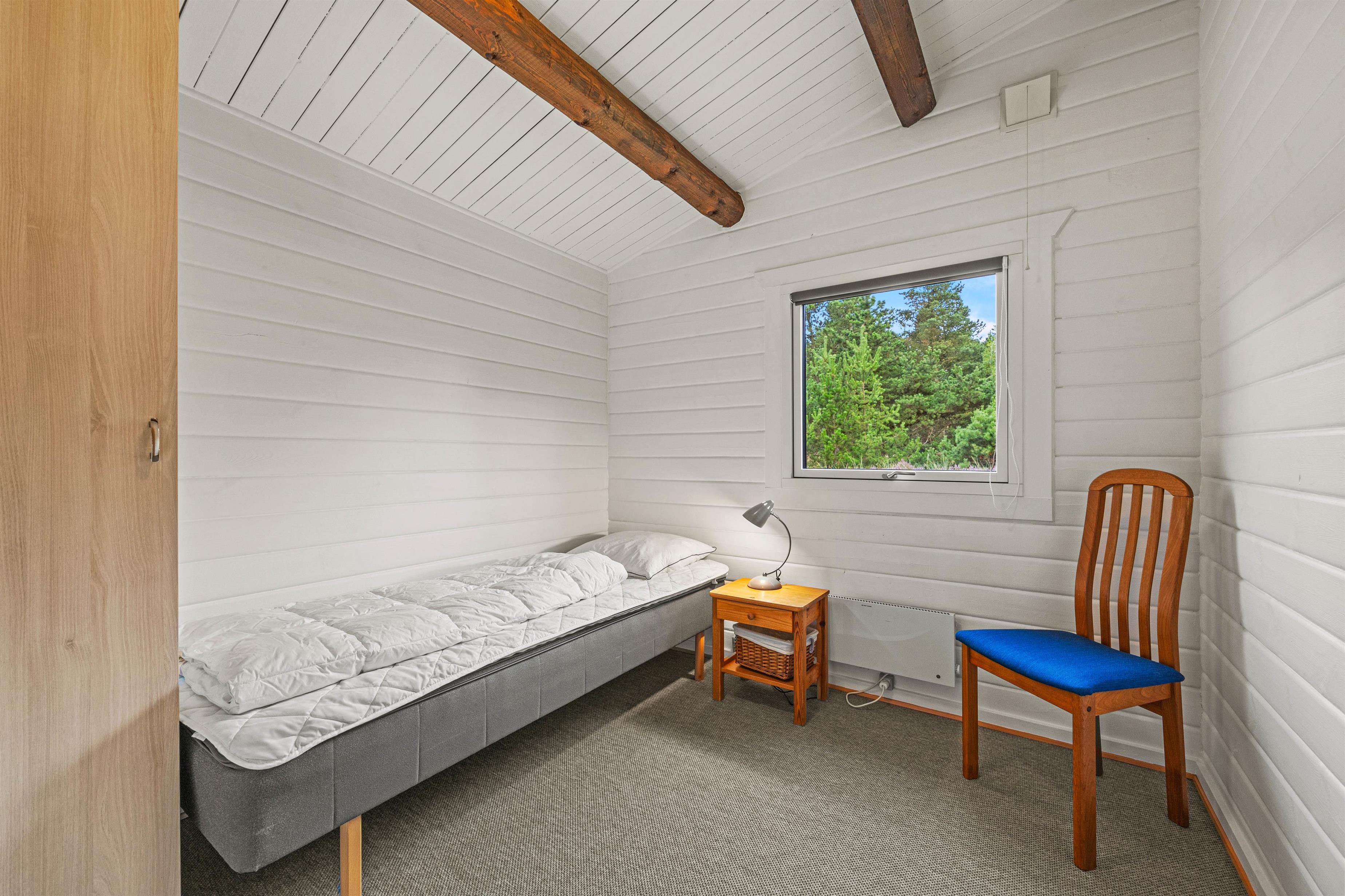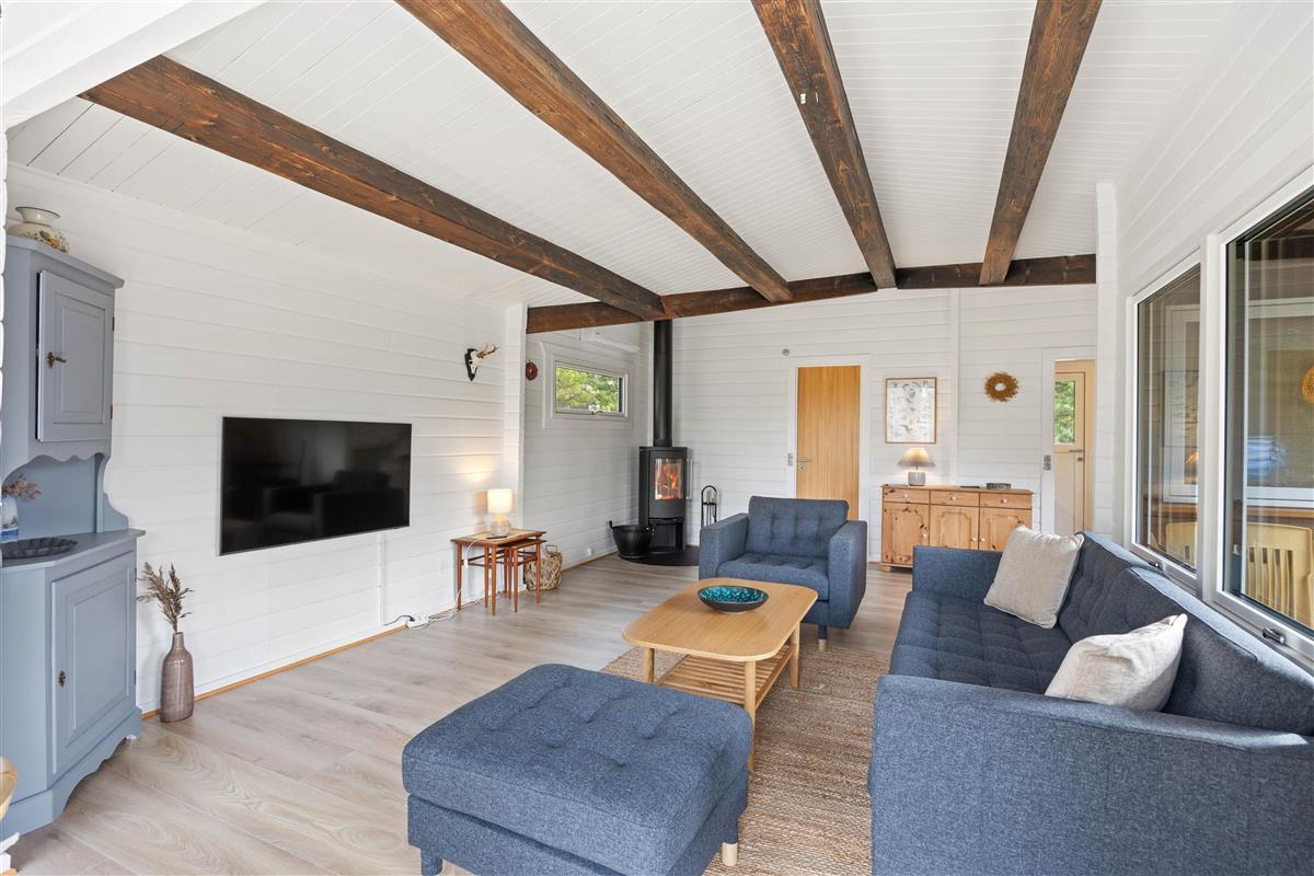 With a living space of 73 square metres, this holiday home accommodates up to 4 people. The layout includes 3 bedrooms with 4 single beds, ensuring restful nights for all guests. The welcoming wood-burning stove in the living room provides wonderful warmth and a cosy atmosphere, especially on cooler evenings or during changeable weather.