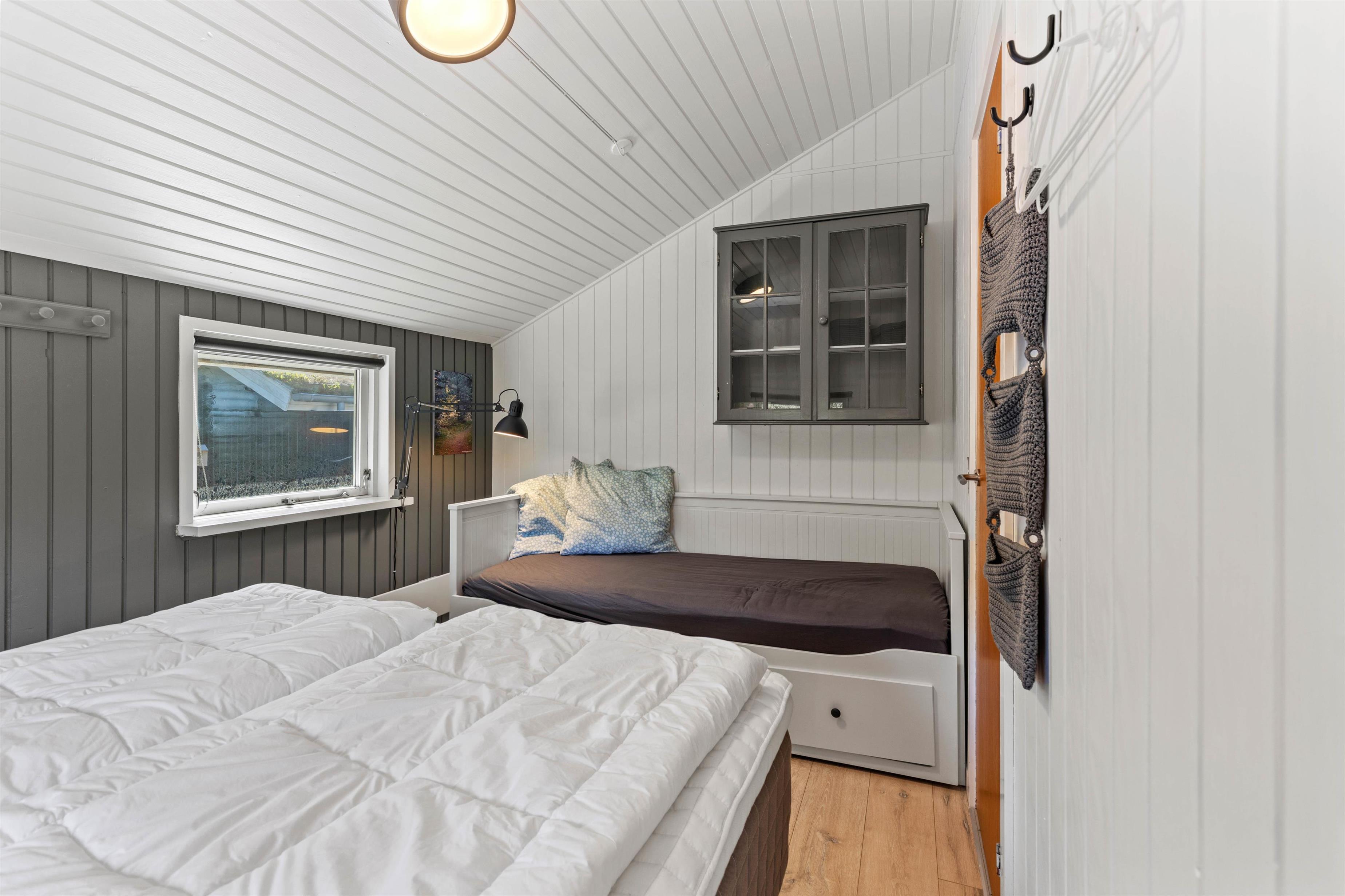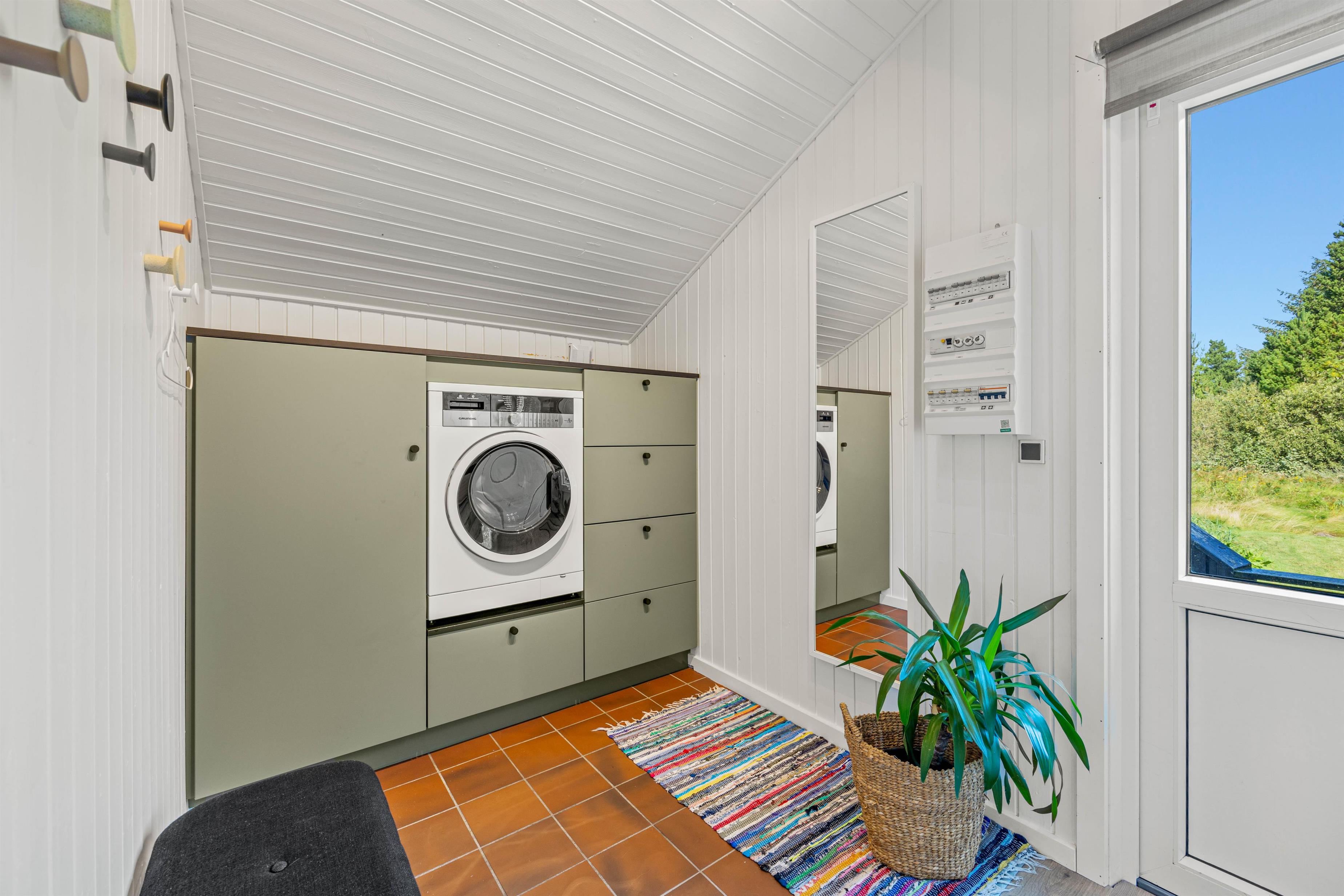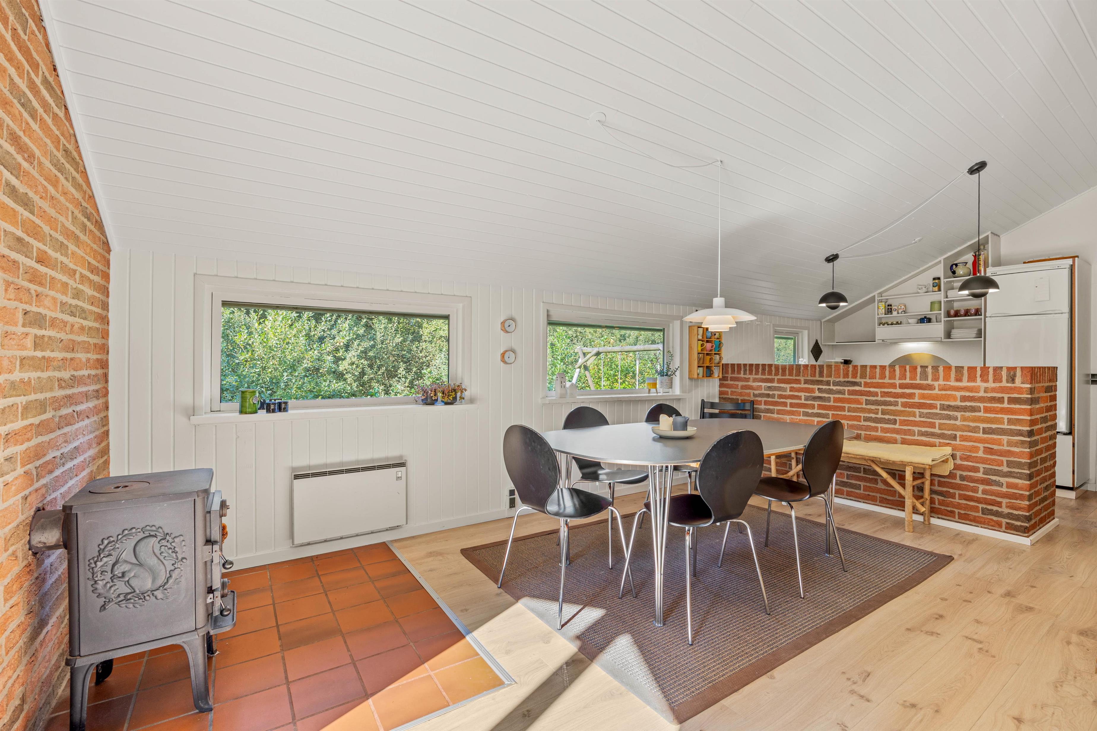 This wonderful holiday home sits in the heart of nature and impresses with its privacy and secluded position. At 66 square metres, it's a charming holiday home featuring typical Danish characteristics, with wood-panelled walls and Scandinavian furnishings.