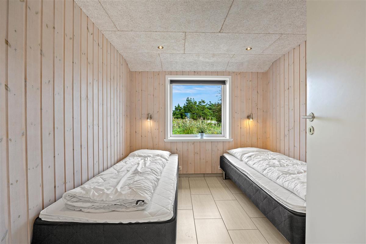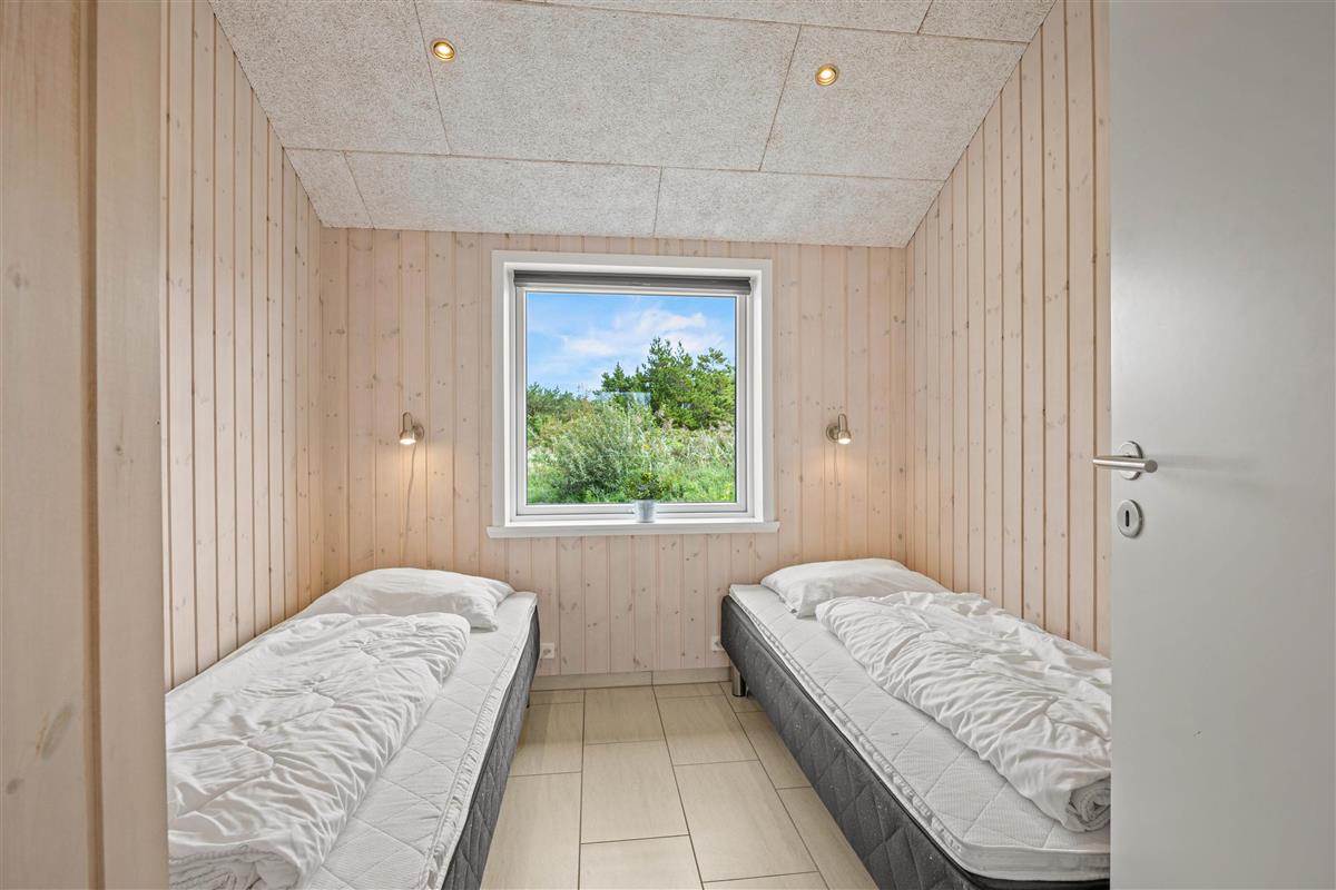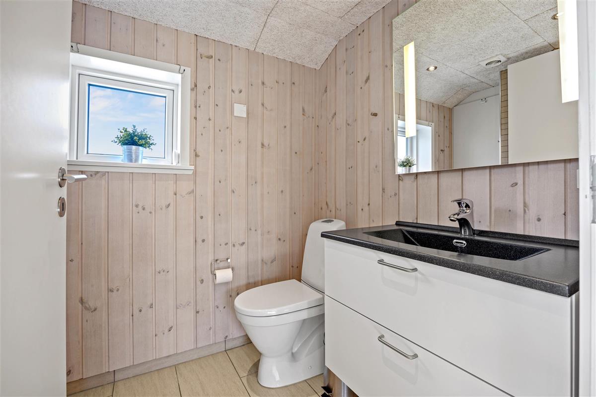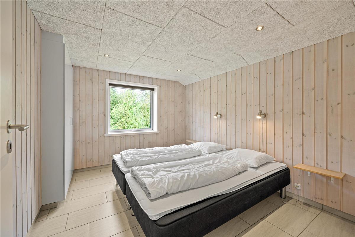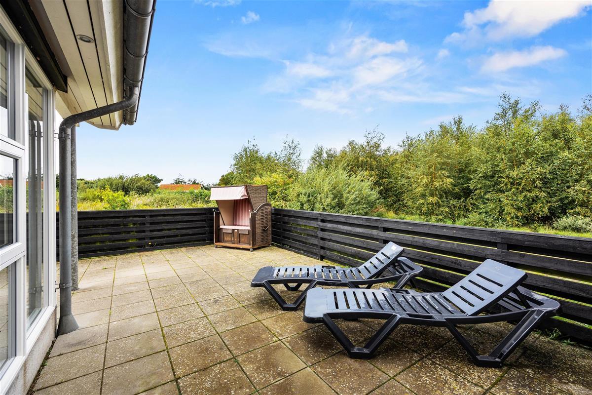 The spacious outdoor area features a hot tub on the terrace, along with plenty of seating, sun loungers and a traditional beach chair. The terrace is partially fenced, ideal for families with small children. You'll always find a sunny - or shady - spot while enjoying the peaceful views over Bolilmark's heathland. There are also swings, a slide and a football goal. The large driveway provides ample parking. An outdoor shower is available for use from April to November.