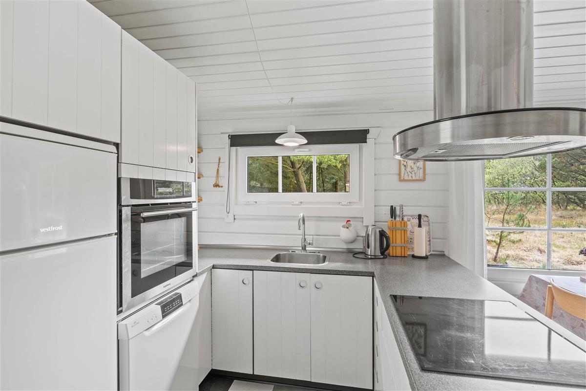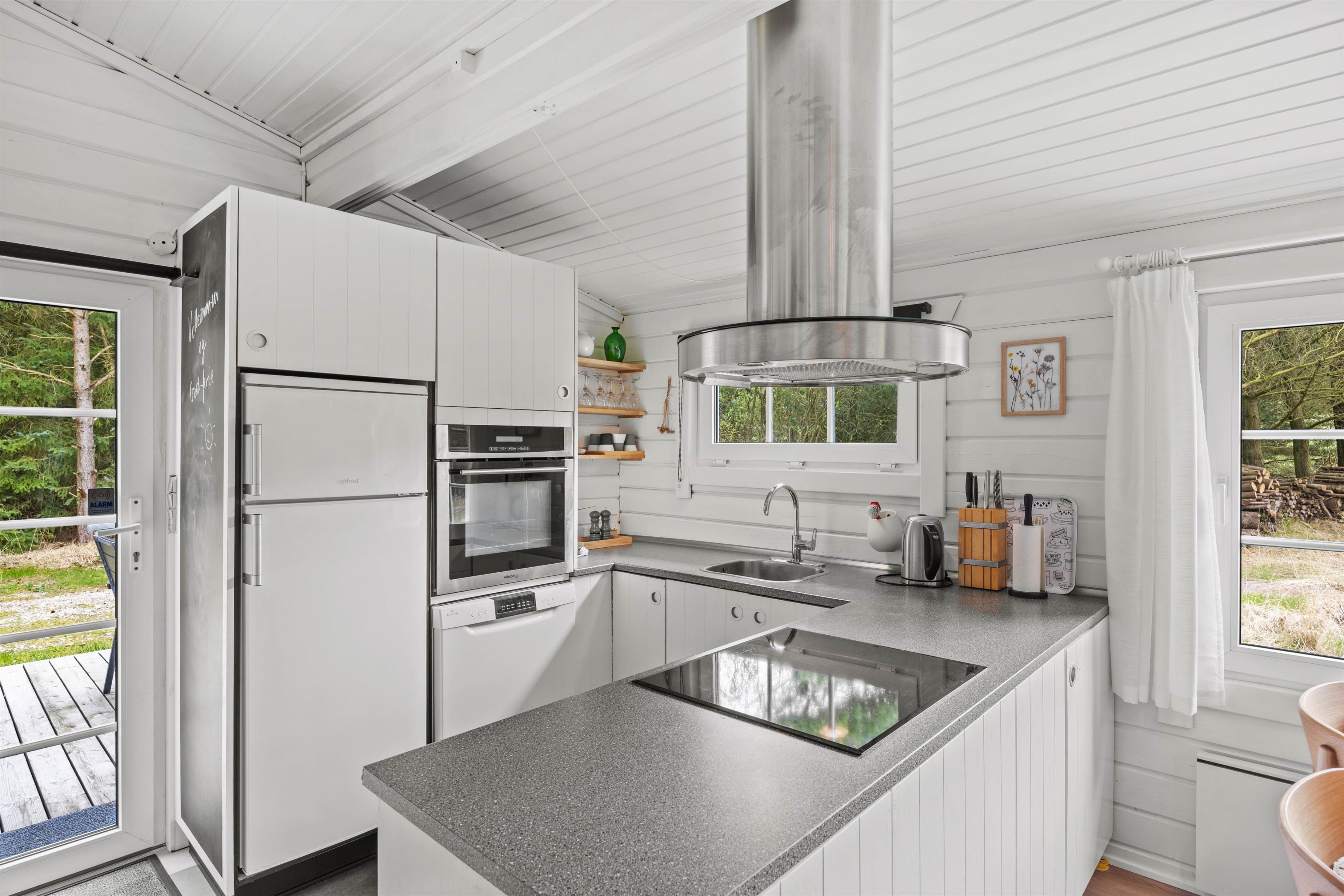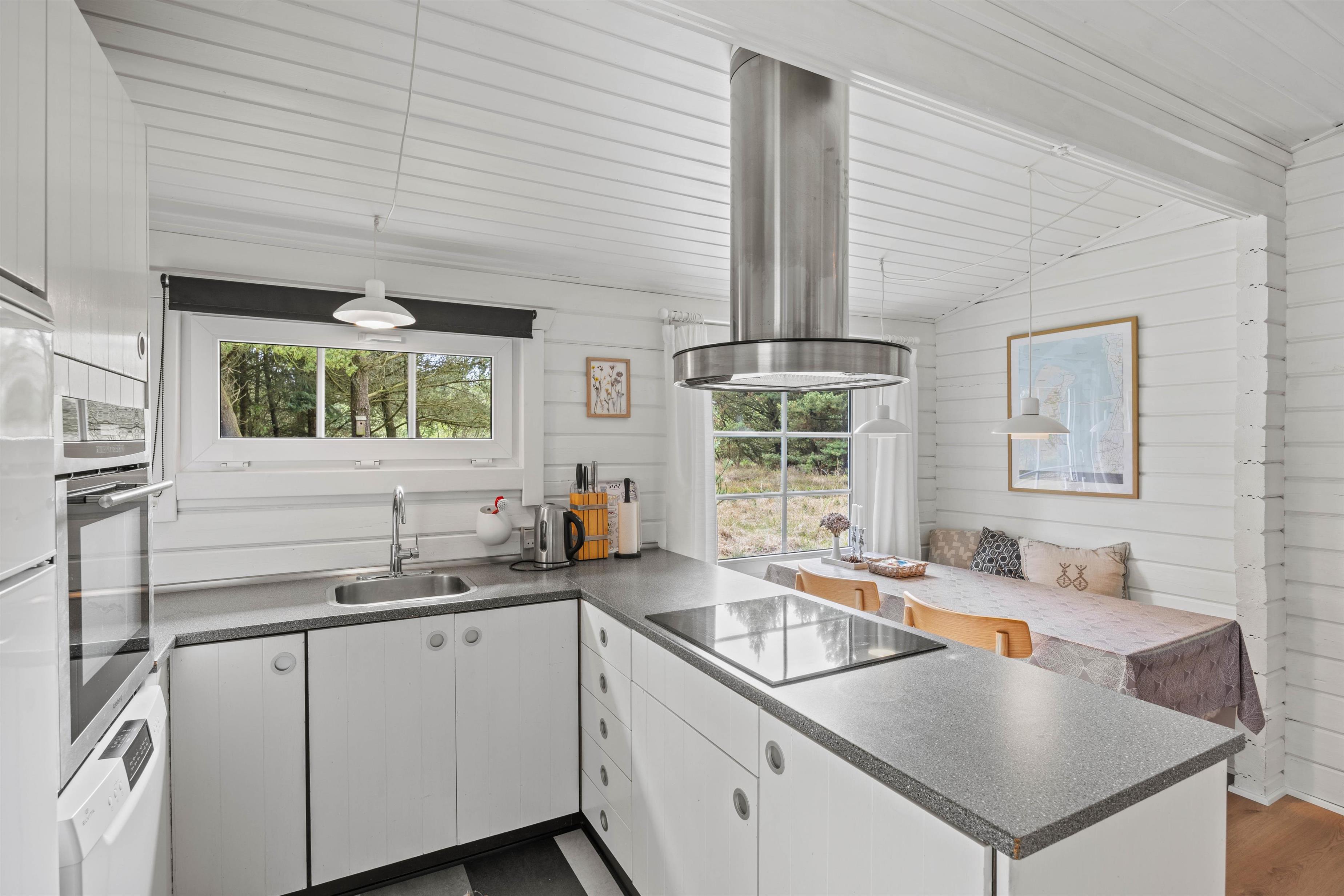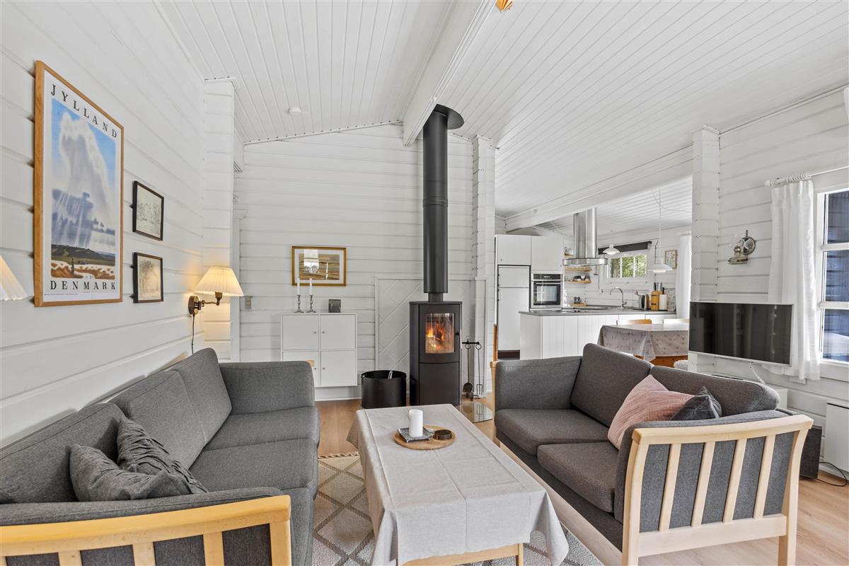 The beautiful atmosphere continues seamlessly from outside to inside. The bright décor creates a welcoming environment where you'll quickly feel at home. The heart of the holiday home is the open-plan living and kitchen area. Here you can enjoy game nights, film evenings thanks to Chromecast, and sociable cooking in peace. To enhance the ambiance, light up the crackling and soothing wood-burning stove.