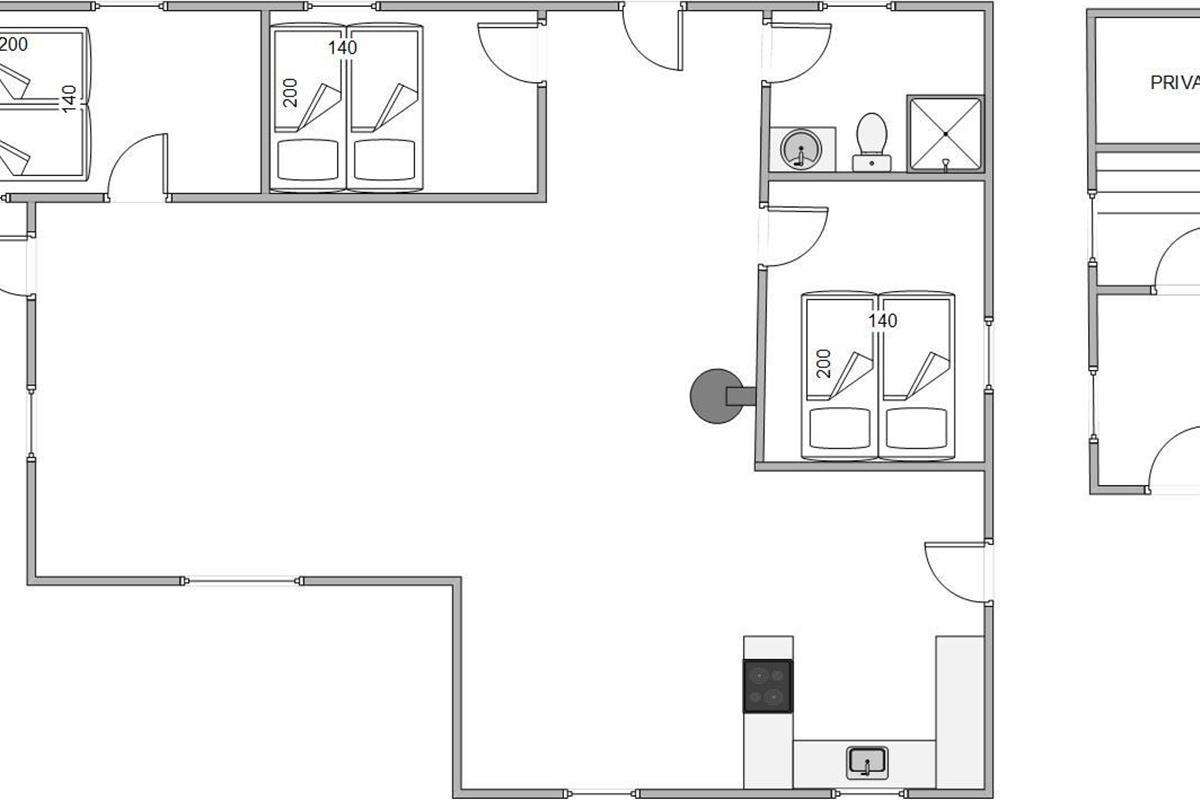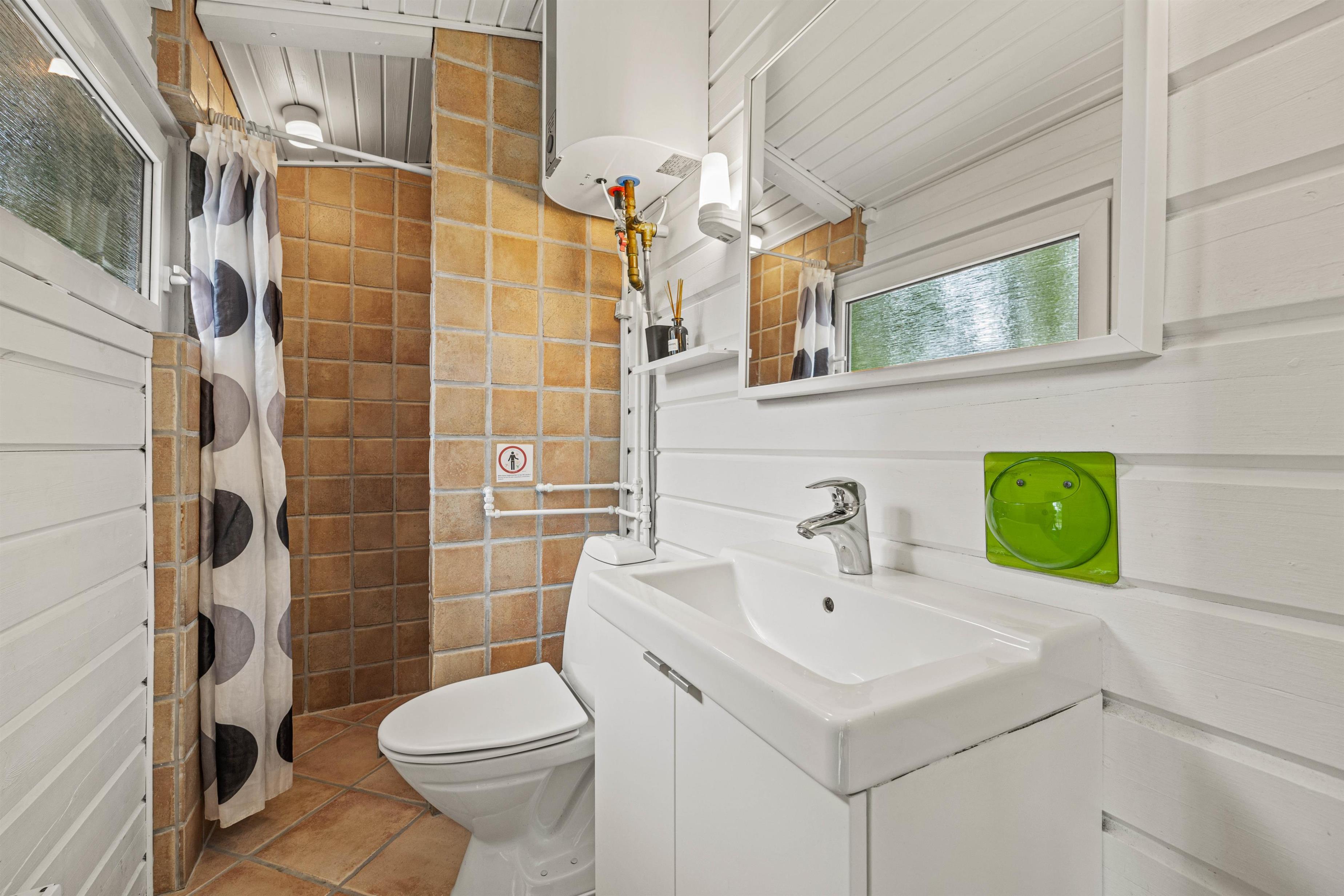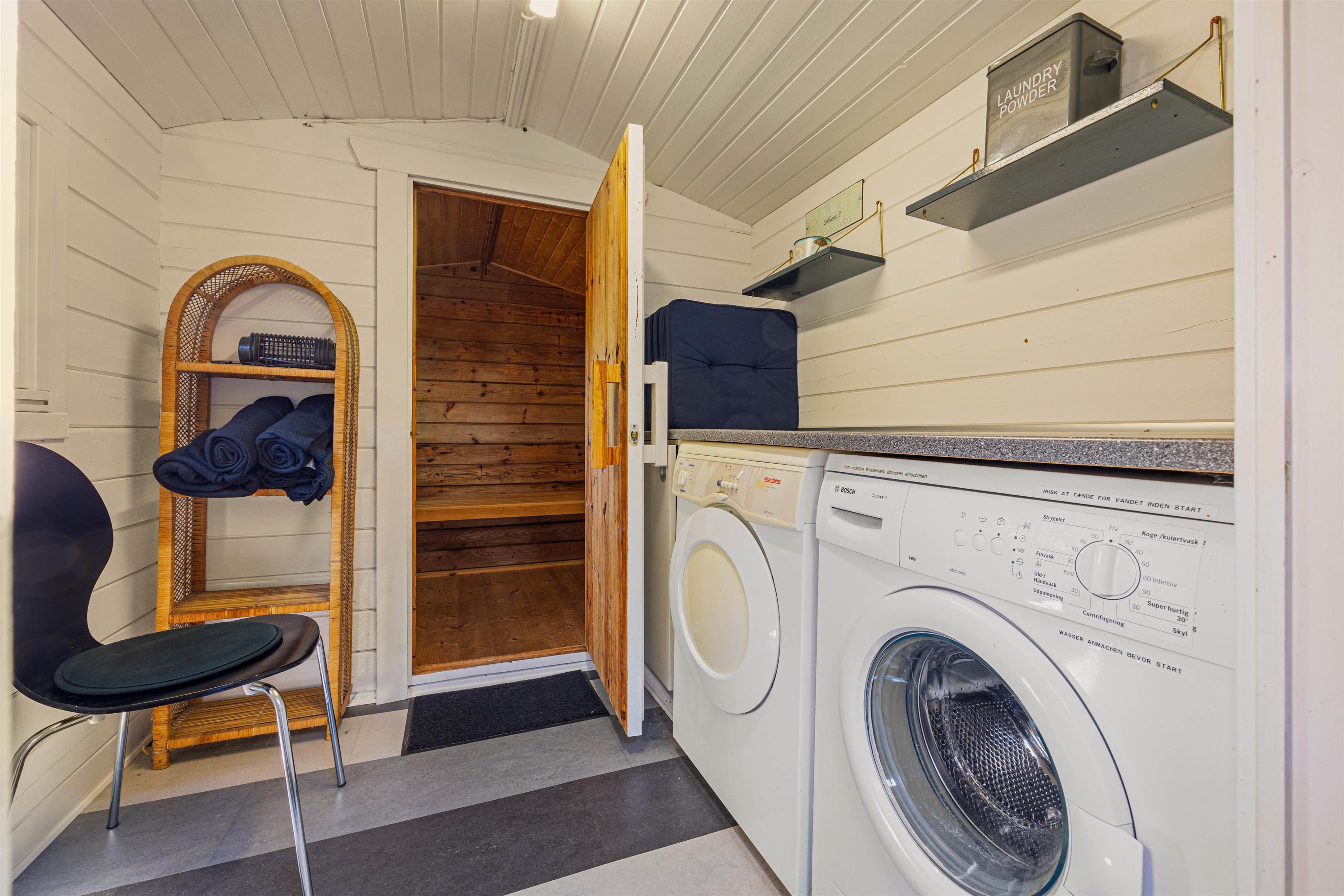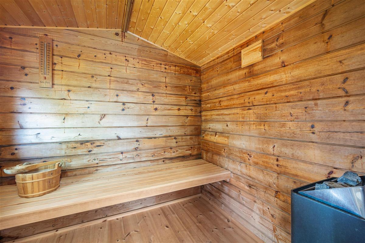 Outside, there's a small annexe housing a sauna and washing machine/tumble dryer. The holiday home features three beautiful bedrooms and a bathroom with underfloor heating.