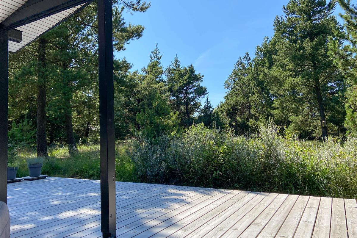 Upon parking your car, you're greeted by the large wooden terrace that wraps around most of the holiday home. The surroundings are peaceful and quiet. Thanks to the many trees surrounding the holiday home, you'll enjoy a genuine sense of seclusion, sheltered from neighbouring houses and prying eyes. It's an ideal house for families with children, groups of friends, or couples.