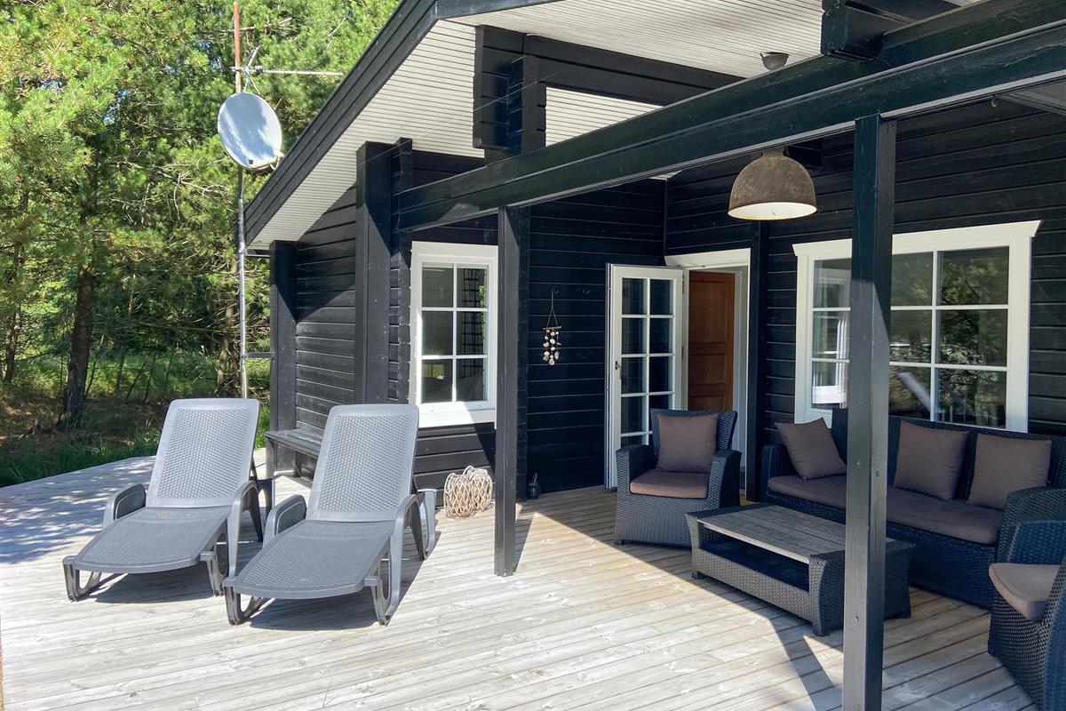 The spacious terrace offers numerous cosy spots for soaking up the sunshine. If you prefer shade, the covered section of the terrace is perfect. Here you can enjoy leisurely breakfasts and relaxed barbecue evenings - creating that authentic holiday atmosphere. The terrace features a lovely lounge area with comfortable seating, perfect for enjoying a glass of wine while watching the sunset.