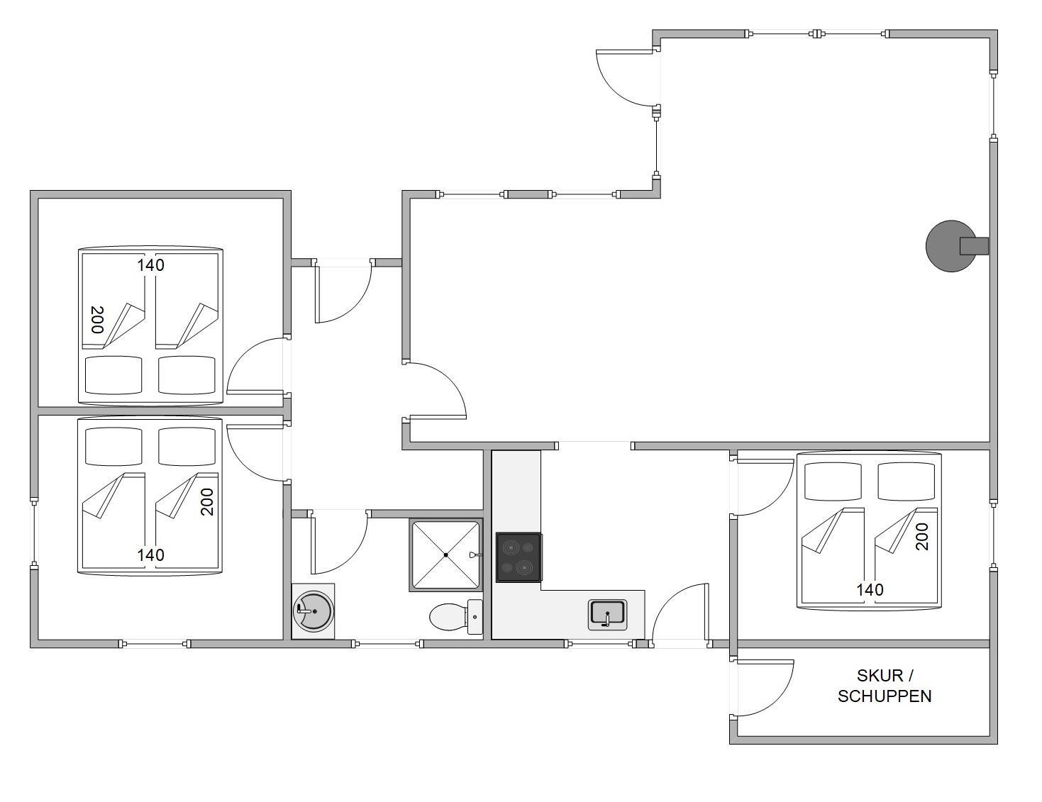The partially screened and covered terrace areas are positioned on several sides of the holiday home. You can settle down with a good book in the sunshine and enjoy a coffee while your children play in the garden or enjoy a game of Viking chess. Or perhaps start your day with a leisurely breakfast in the fresh air?