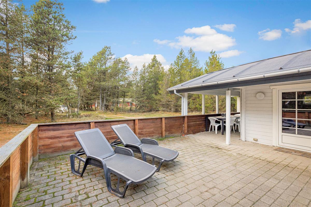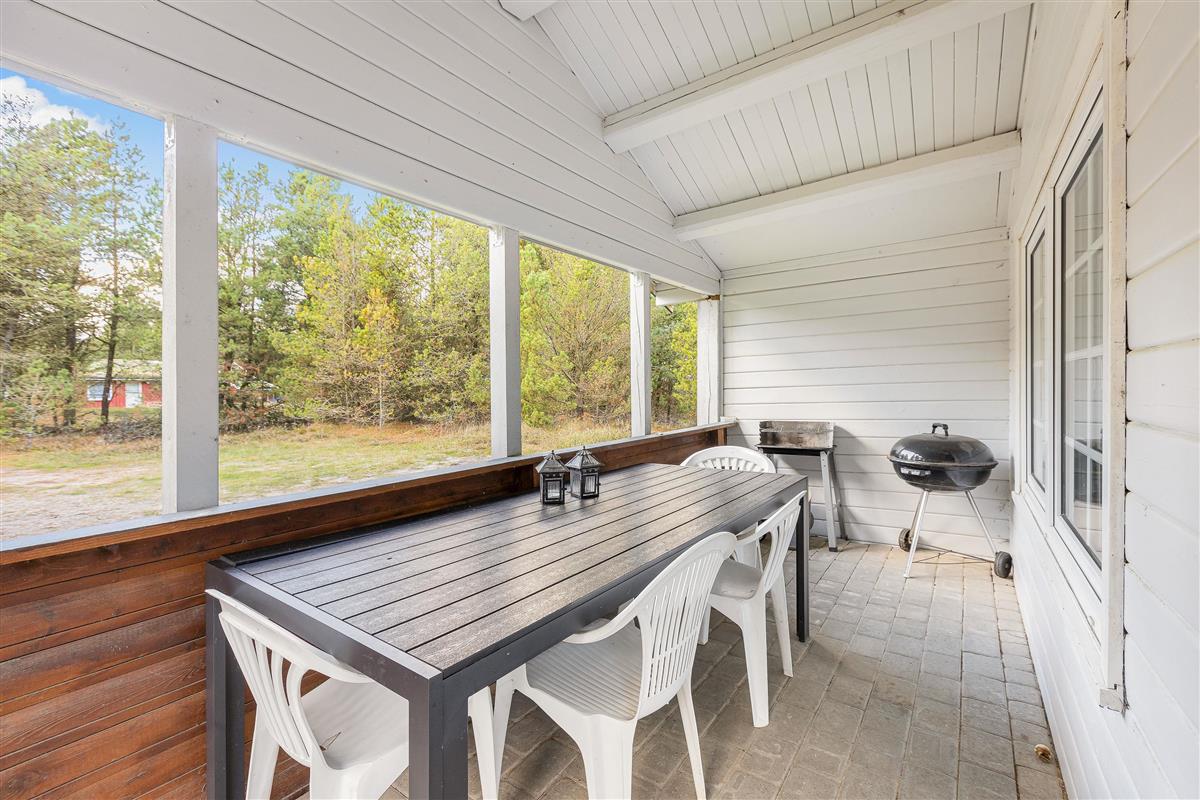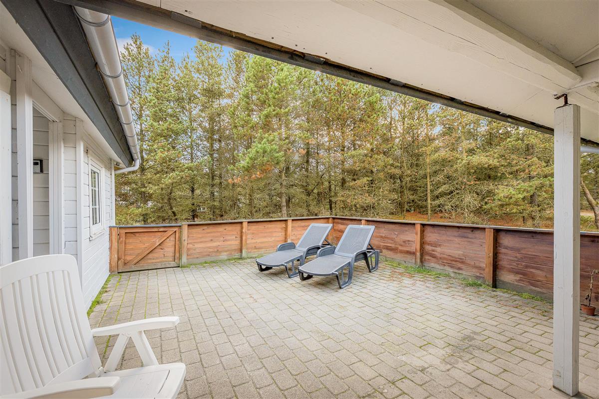 The house occupies one of the finest plots in Bolilmark, with the end of the holiday home covered in heather and surrounded by pine trees. The beautiful terraces allow you to enjoy the sunshine throughout the day.