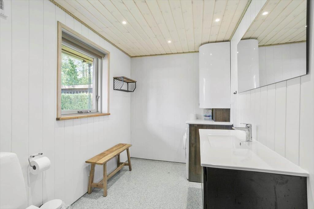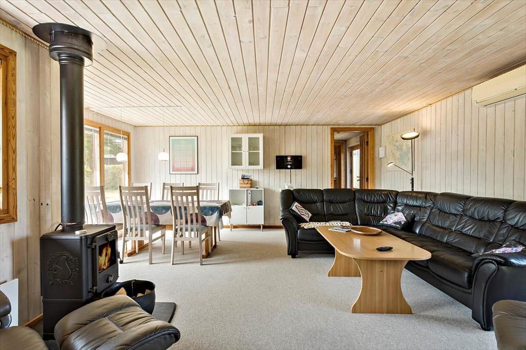 Wenn Sie das Ferienhaus betreten, werden Sie von einem einladenden Wohnzimmer empfangen, das viel Platz für Gemütlichkeit und Gemeinschaft bietet. Die offene Raumgestaltung schafft eine natürliche Verbindung zwischen Wohnbereich und Essplatz, perfekt für Mahlzeiten und Spieleabende für die ganze Familie. Der Holzofen und die Wärmepumpe sorgen dafür, dass Sie jederzeit die gewünschte Atmosphäre schaffen können, unabhängig vom Wetter draußen. Das Ferienhaus verfügt außerdem über zwei Badezimmer, wovon eines im Jahr 2021 vollständig renoviert wurde, was Ihrem Aufenthalt zusätzlichen Komfort verleiht.