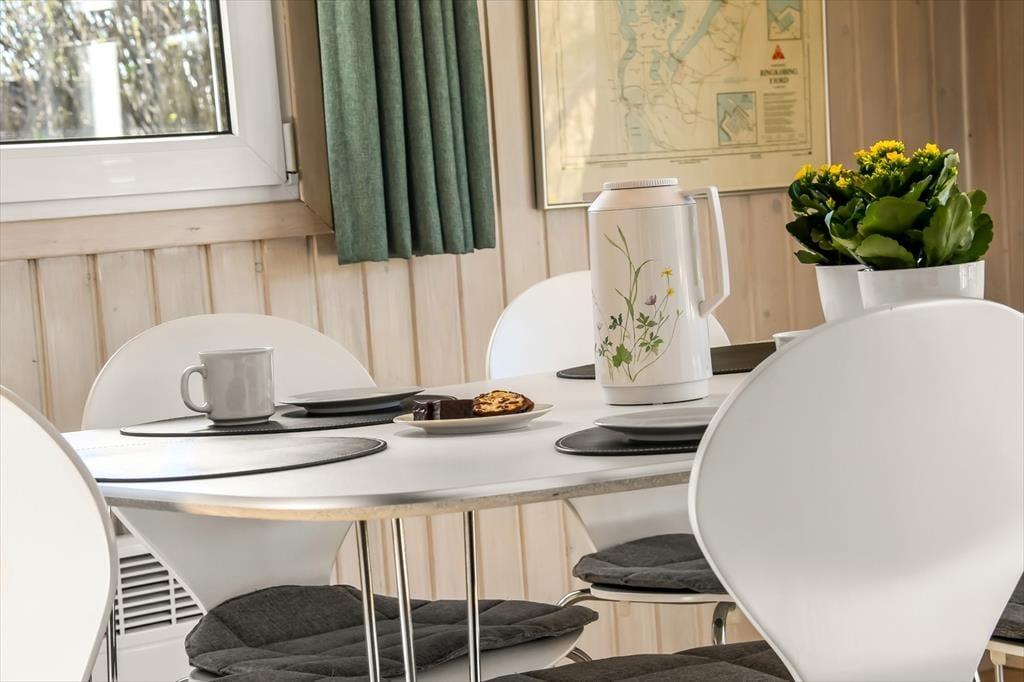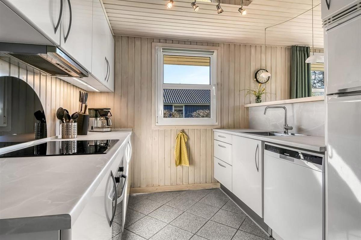 In diesem kleinen, geschlossenen Weg liegen alle Ferienhäuser rund um ein grünes Gemeinschaftsareal. Auch ein Spielplatz ist im Nu erreichbar. Die einzelnen Wege des Ferienhausgebietes sind durch kleine Pfade miteinander verbunden, sodass Sie gut zu Spaziergängen in die Umgebung aufbrechen können. Innerhalb weniger Minuten erreichen Sie den Ringkøbing Fjord und den beliebten Surfstrand Bork Havns. Dank des flachen Wassers und der guten Windbedingungen eignet sich dieser hervorragend für sowohl Surfanfänger als auch Geübte. Selbstverständlich kommen hier auch SUP-Boarder und Kajakfahrer auf ihre Kosten. Am Hafen können Sie bei einem Eis oder einem guten Essen die beschauliche Urlaubsatmosphäre genießen. Zudem gibt es einen kleinen, nahe gelegenen Badestrand, der sich sehr schön für kleine Kinder eignet. Naturliebhaber und Hobbyornithologen wird die herrliche Natur und die Weite der Landschaft in den Bann ziehen. Nicht entgehen lassen sollten Sie sich einen Besuch des artenreichen Vogelschutzgebietes Tipperne, bei dem es sich um das größte Vogelschutzgebiet Nordeuropas handelt.