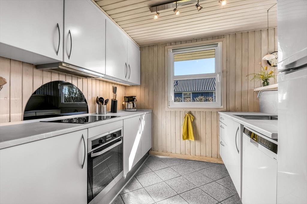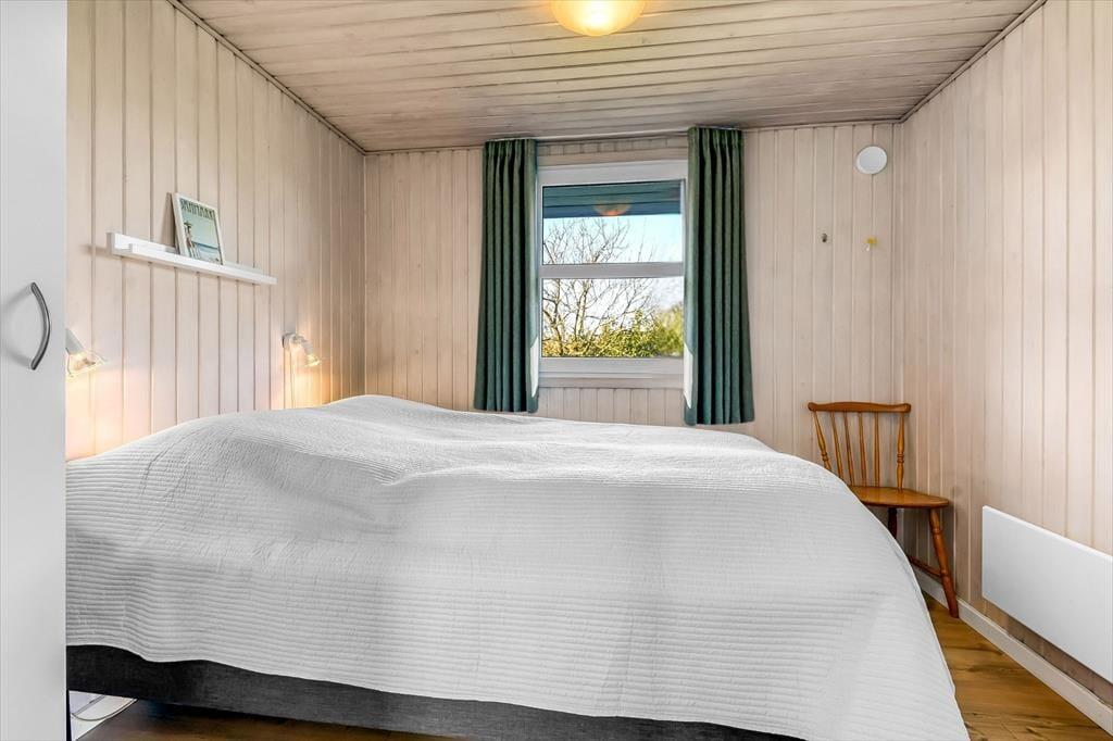 Bei diesem Ferienhaus ist nicht nur die ansprechende Lage hervorzuheben. In echter Ferienhausmanier begrüßt Sie das Mietobjekt mit hellen Holzverkleidungen an den Wänden. Durch die Fenster blicken Sie direkt hinaus in den grünen Garten, der dieses Urlaubsdomizil umgibt. Der Aufenthaltsbereich vereint in harmonischer Weise die offene Küche und das Wohnzimmer. Hier können Sie köstliche Mahlzeiten zubereiten sowie verzehren und es sich nahe dem Kaminofen in der komfortablen Sofaabteilung gemütlich machen. Gemütlich geht es auch in der Sauna des gut ausgestatteten Badezimmers zu. Nach einem langen und erlebnisreichen Urlaubstag oder nach sportlichen Stunden auf dem Surfbrett haucht die Sauna Ihren Muskeln neues Leben ein. Allabendlich locken drei Schlafräume, in denen Sie sich schön ausschlafen können.