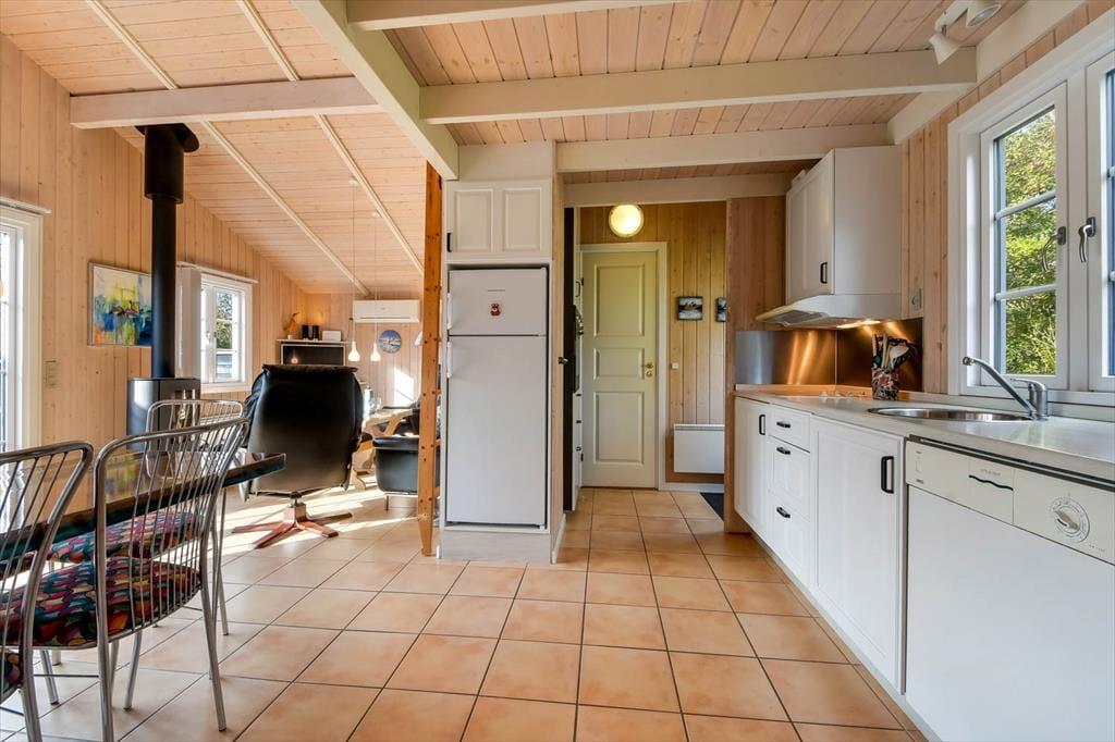 Im beschaulichen Bork Hytteby ist es nicht weit bis zum nächsten Spielplatz und zum nächsten grünen Gemeinschaftsareal. Auch der kleine Jollenhafen der Gegend liegt nur 500 Meter vom Ferienhaus entfernt. Hier können Sie Ihr eigenes Kanu oder Kajak direkt im Fluss Fahl Å zu Wasser lassen und den Ringkøbing Fjord von der Wasserseite aus erforschen. Nah am Haus, auf der Landseite, locken darüber hinaus das Freilichtmuseum Bork Vikingehavn und der schöne Landgasthof Fahl Kro. Nach ungefähr einem Kilometer erreichen Sie den beliebten Surfstrand Bork Havns, den Hafen und die schöne Minigolfanlage von Bork Havn. Zu den sehr schönen Ausflugszielen zählen das bekannte Vogelschutzgebiet Tipperne und das Naturgebiet Værnengene. Hier werden sicherlich nicht nur Hobbyornithologen von der Artenvielfalt und der weitläufigen Landschaft in den Bann gezogen. Nicht entgehen lassen sollten Sie sich zudem einen Besuch an den Stränden der rauschenden, zu jeder Jahreszeit faszinierenden Nordsee. Schnell und gut erreichbar ist beispielsweise der schöne