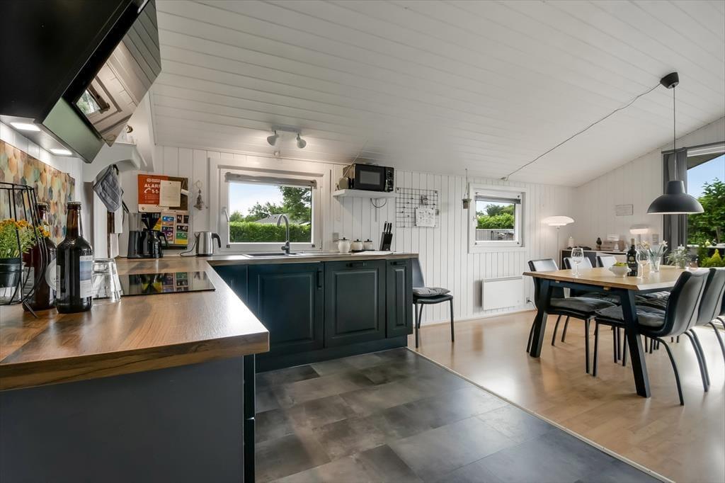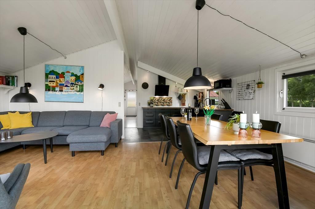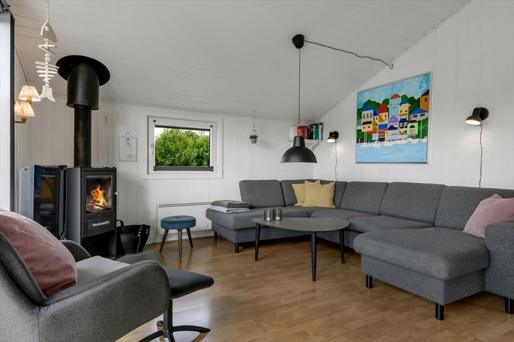 Die ganze Familie kann sich auf schöne Tage in diesem Ferienhaus freuen, das 1998 erbaut und 2019 renoviert wurde. Die Raumaufteilung umfasst drei gemütliche Schlafzimmer mit Doppelbetten – ideal für bis zu sechs Personen. Der zentrale Treffpunkt ist das einladende Wohnzimmer mit Sofaecke, Esstisch und einer gut ausgestatteten Küche. Wenn es draußen kühler ist, sorgen Wärmepumpe und Kaminofen für behagliche Wärme – und wer sich nach tiefer Entspannung sehnt, genießt die Sauna im Badezimmer des Ferienhauses.