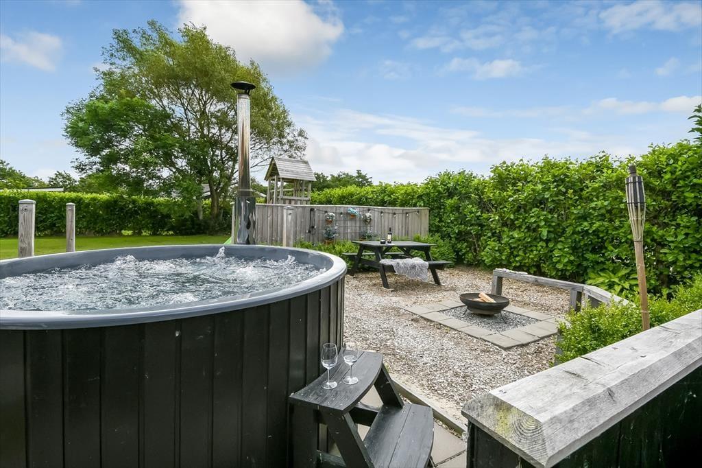 Eine Sauna, ein Kaminofen und ein sonniger Garten voller Spielmöglichkeiten, gemütlicher Ecken und sogar ein Wildnisbad. Das sind nur einige der wunderbaren Details, die deinen Aufenthalt in diesem Ferienhaus in Bork Havn – ruhig gelegen in einer Sackgasse – besonders gemütlich und erholsam machen