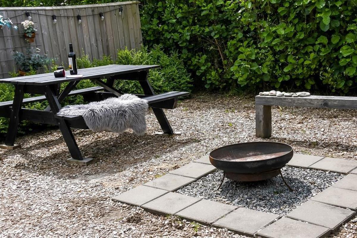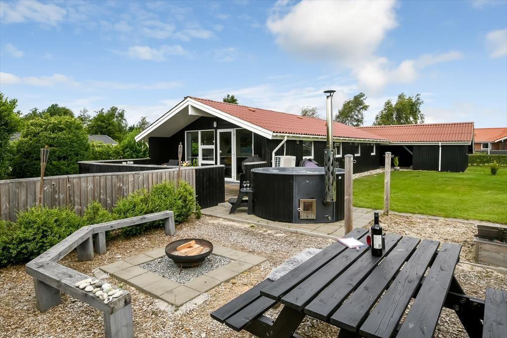 Auf der Südseite des Hauses lädt eine geschlossene Terrasse zum Verweilen ein. Mit Grill, Gartenmöbeln, Sonnenliegen und Sonnenschirm ist alles da, was du für das perfekte Urlaubsleben draußen brauchst – von der ersten Tasse Kaffee am Morgen bis zum Abendessen im Sonnenuntergang. Tagsüber können die Kinder im Sandkasten spielen, schaukeln oder sich auf der großen Rasenfläche austoben. Sogar eine Feuerstelle wartet darauf, dass ihr es euch gemeinsam dort gemütlich macht. Und wenn am Abend die Sterne am Himmel erscheinen, ist das Wildnisbad der perfekte Ort, um den Tag unter freiem Himmel in aller Ruhe ausklingen zu lassen.