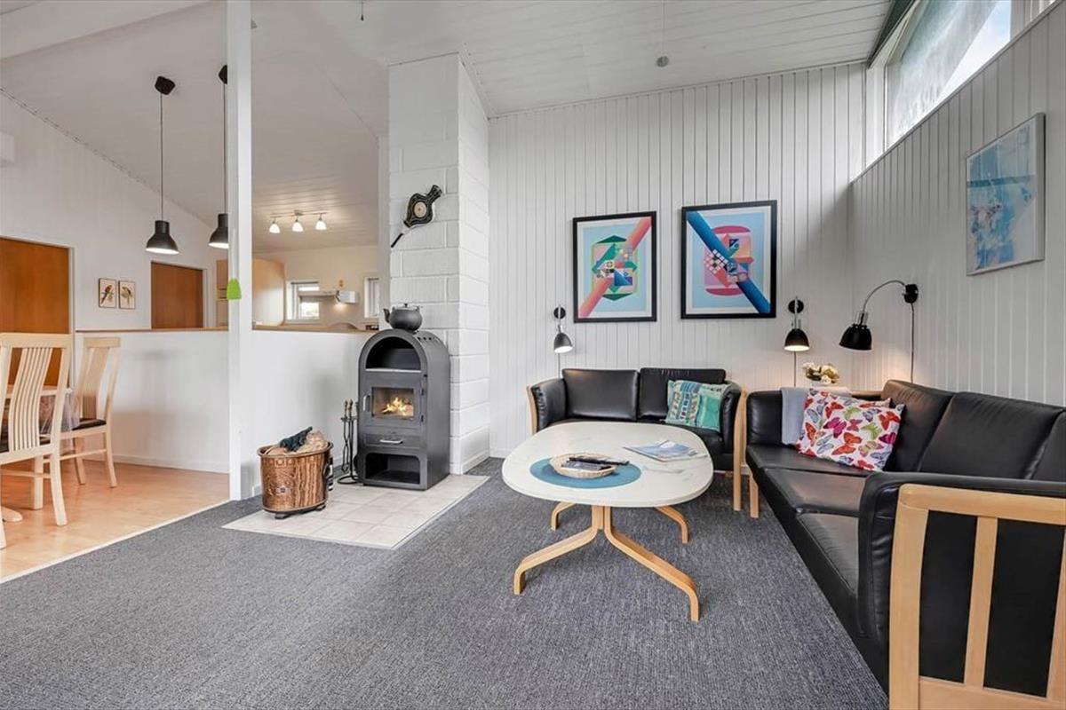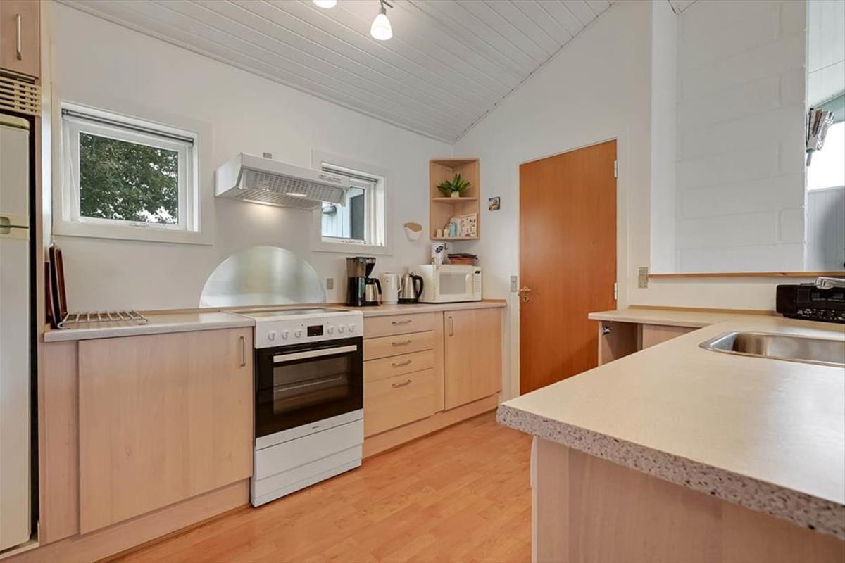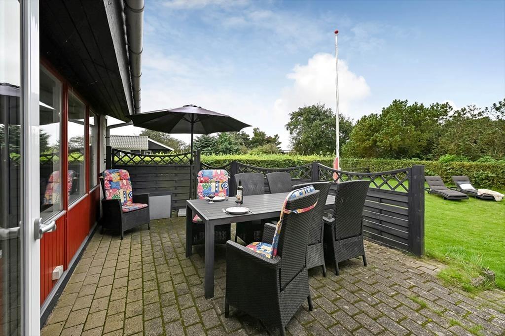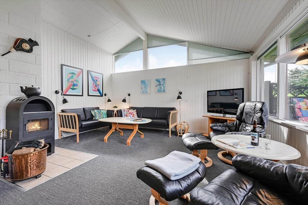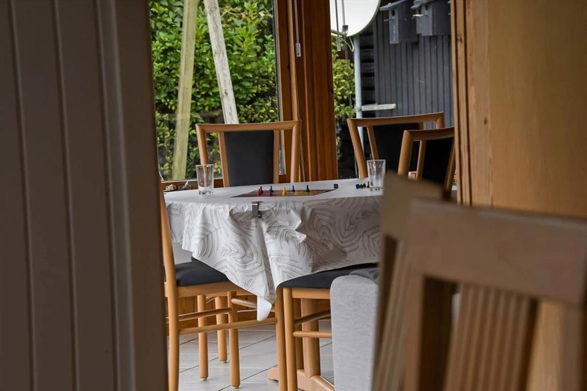 Ein Whirlpool, ein Kaminofen und ein Wintergarten - dies sind nur einige der schönen Details, die in diesem Haus die Urlaubstage versüßen. Der Kaminofen befindet sich im Aufenthaltsbereich, der sich aus dem attraktiven Wohnzimmer und dem Küchen- und Essbereich zusammensetzt. Der Wintergarten bildet eine Verlängerung des Wohnraumes und ermöglicht es daher, Kaffee oder Mahlzeiten in diesem schönen Hausteil zu verzehren, während man das Wetter und den Ausblick auf den grünen Garten genießen kann. Zur Wohnfläche zählen darüber hinaus ein Eingangsbereich mit einer Waschmaschine, ein schönes Bad in dem sich der Whirlpool befindet und drei Schlafzimmer mit insgesamt sechs Schlafplätzen.